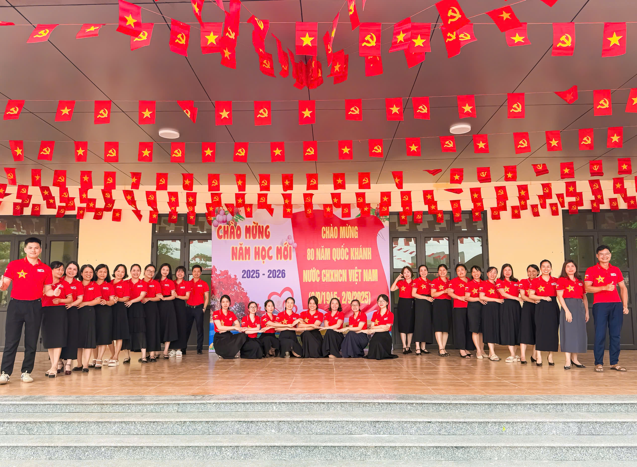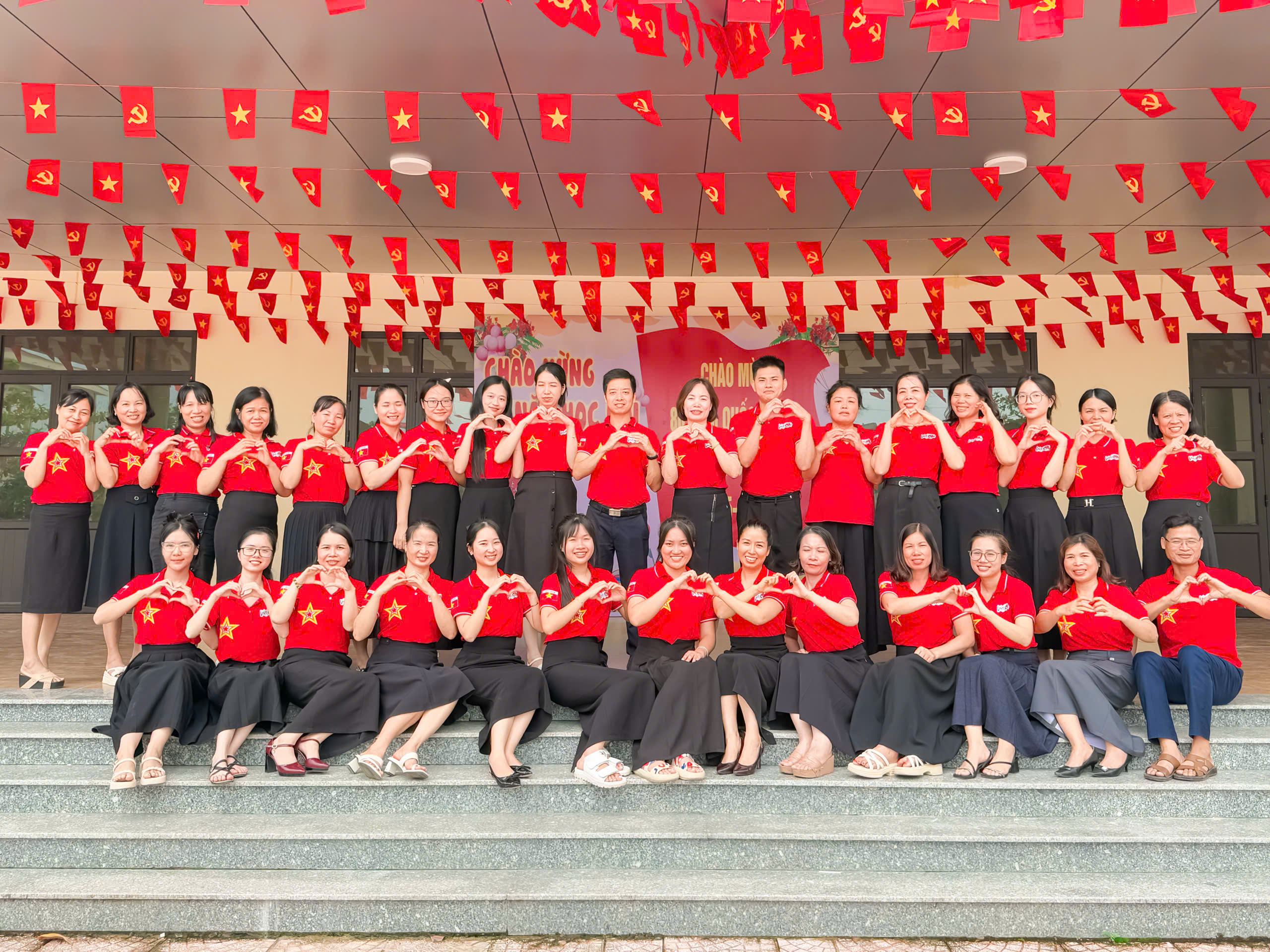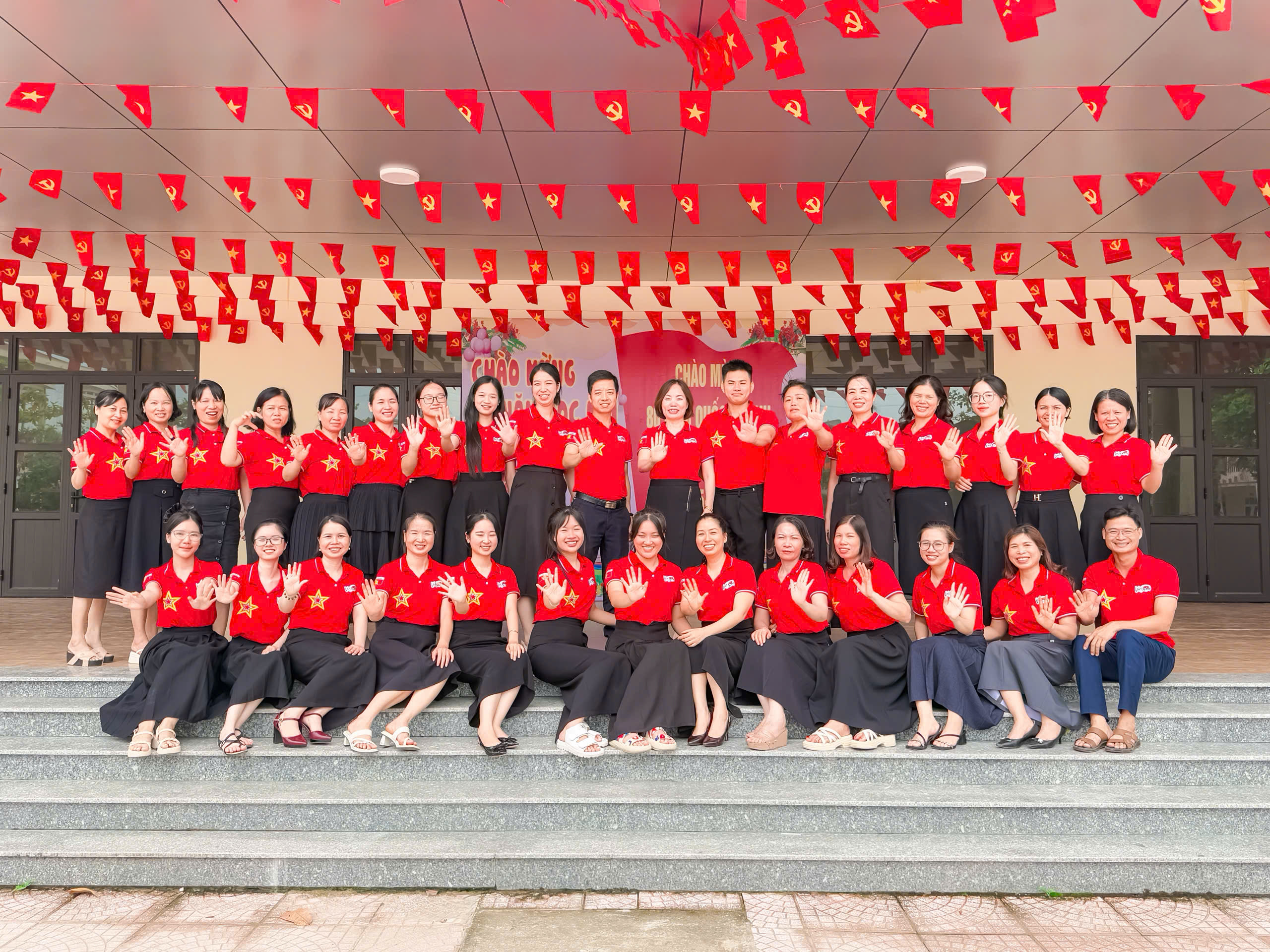 🌺🌺 Ngay từ cổng trường, sân trường đến các lớp học, khung cảnh trở nên bừng sáng với cờ Tổ quốc, băng rôn, khẩu hiệu trang hoàng rực rỡ. Màu đỏ thắm của quốc kỳ tung bay, hòa cùng sắc áo cờ đỏ sao vàng của thầy cô và những lá cờ nhỏ trên tay học sinh, tạo nên bức tranh đoàn kết, trang nghiêm và tràn đầy tự hào. Các lớp học thêm sinh động với bảng trang trí, khẩu hiệu “Mừng Quốc khánh 2/9” và hình ảnh lịch sử, vừa tôn vinh ngày lễ trọng đại vừa giúp học sinh hiểu sâu ý nghĩa thiêng liêng của Tổ quốc.