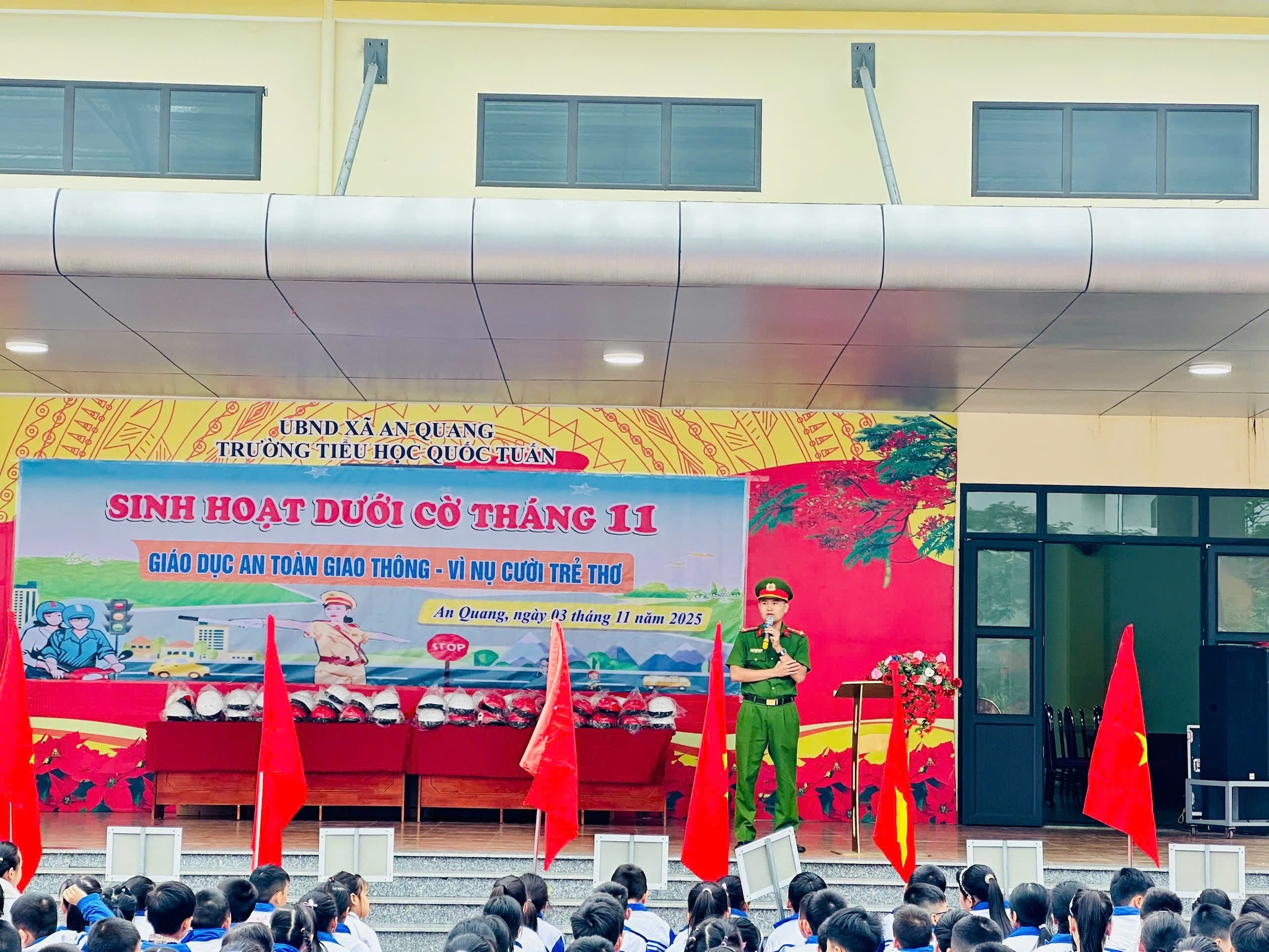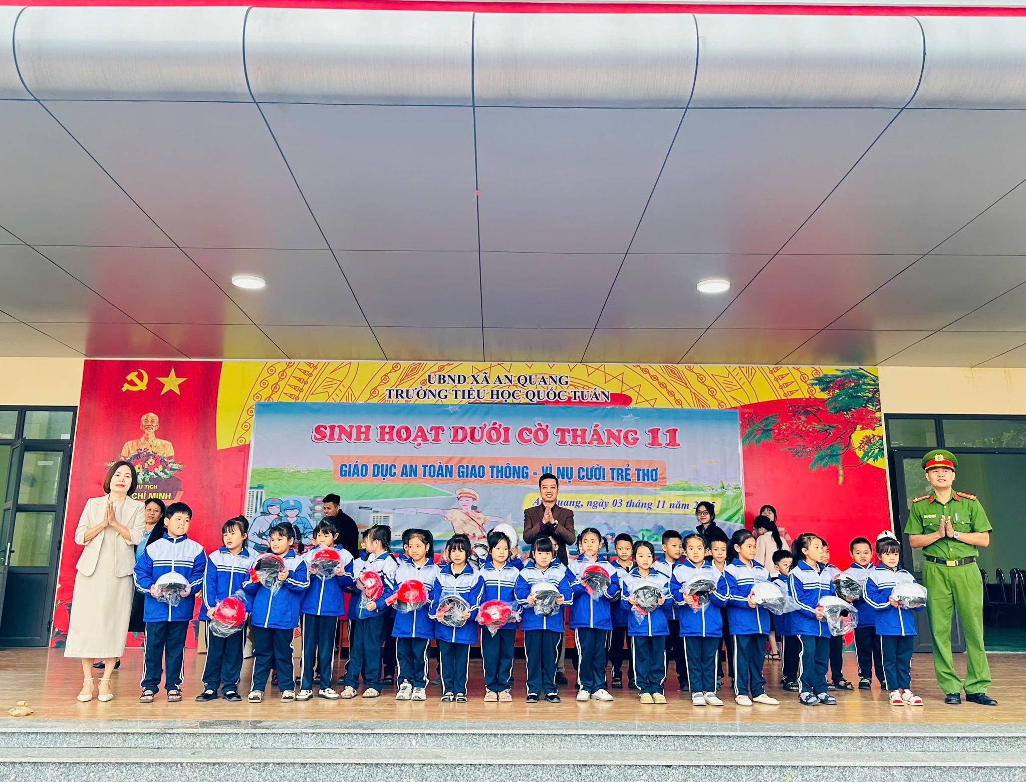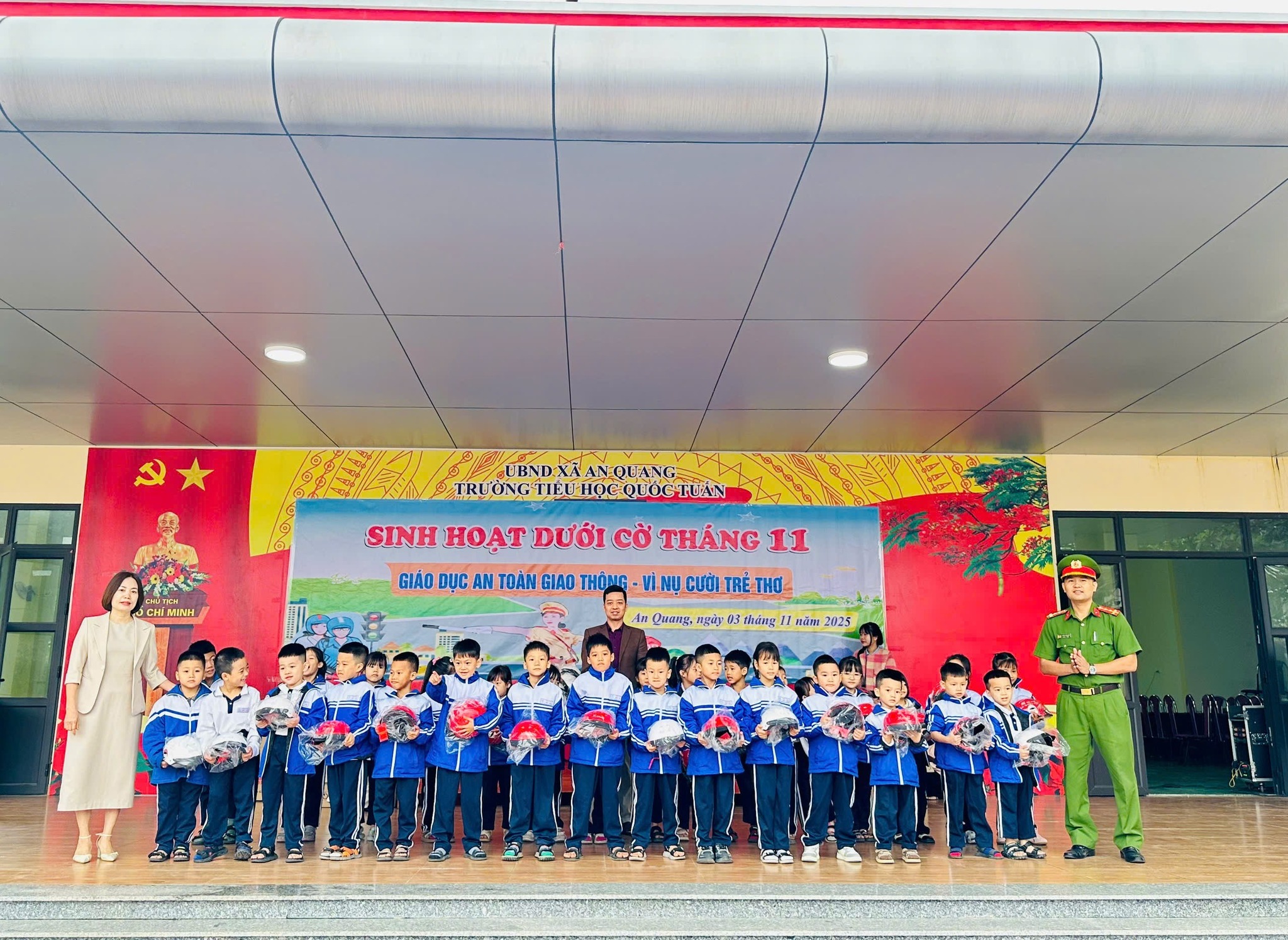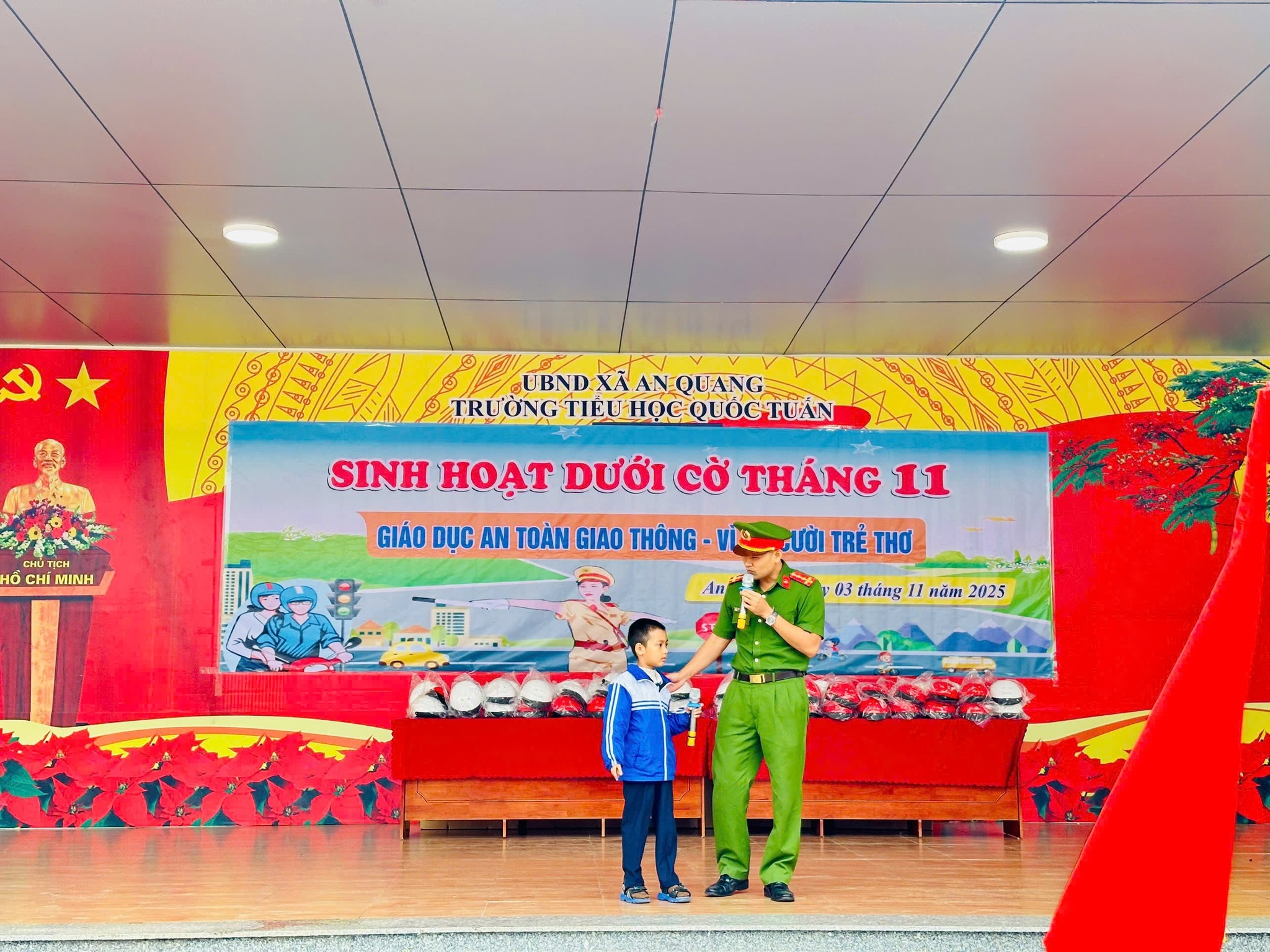 TRƯỜNG TIỂU HỌC QUỐC TUẤN TỔ CHỨC TUYÊN TRUYỀN AN TOÀN GIAO THÔNG VÀ TẶNG MŨ BẢO HIỂM CHO HỌC SINH LỚP 1 NĂM HỌC 2025–2026