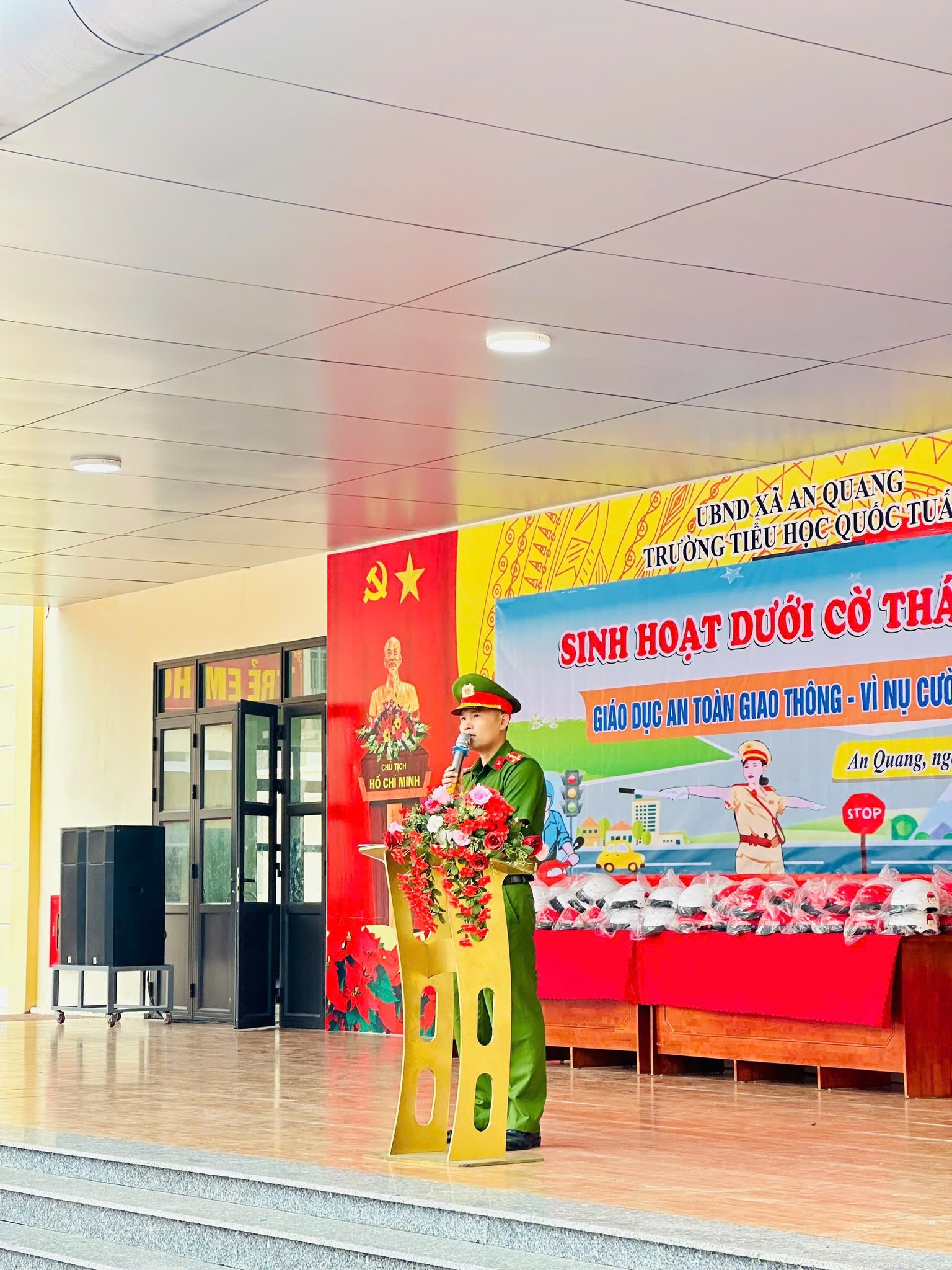 Trường Tiểu học Quốc Tuấn xin trân trọng cảm ơn Đại úy Lương Xuân Đức, Đội Cảnh sát trật tự – Công an xã An Quang và Công ty Honda Việt Nam đã đồng hành cùng nhà trường trong công tác giáo dục an toàn giao thông cho học sinh.