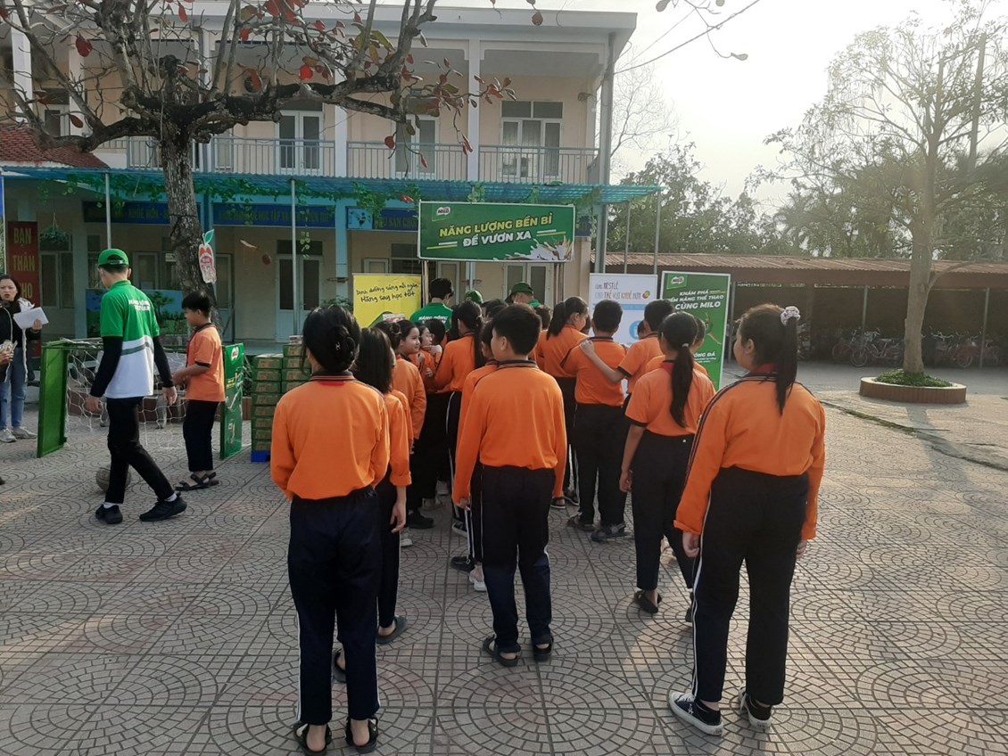 Sáng ngày 22/2/2023 công ty Nesle Việt Nam đã đến và trao sản phẩm sữa Nestle cho học sinh toàn trường. Các em học sinh từ khối 1 đến khối 5, mỗi em được nhận 1 hộp sữa, bánh và dụng cụ học tập. Đây là một món quà năng lượng đặc biệt nhằm nâng cao tầm vóc, thể lực cho các em.