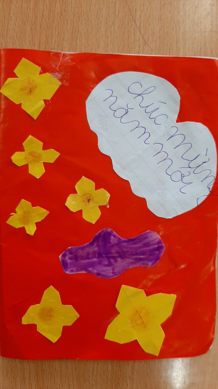 Dịp Tết Nguyên đán Nhâm Dần năm nay cũng vậy, ngay từ những ngày trước đó, các bạn nhỏ đã bàn bạc, trao đổi với nhau về nội dung tấm thiệp mình sẽ làm. Có bạn còn đọc sách báo, lên mạng để học hỏi, tham khảo cách làm. Trong buổi học cuối cùng của năm Nhâm Dần vào ngày 28/, học sinh từ lớp 1 đến lớp 5 đã thỏa sức sáng tạo để tự tay làm ra được vô vàn tấm bưu thiếp độc đáo có ghi các lời chúc ý nghĩa nhất dành tặng những người thân yêu. Học sinh lớp 4B của thầy phạm Hoàng Nam có bức tranh hoa mùa xuân nở rộ, đèn lồng đỏ treo cao cạnh chữ Tết đỏ thắm. . Học sinh lớp 4A của cô Phạm Thị Duyên thật hồn nhiên khi viết lời chúc " Con chúc mẹ sang năm có thật nhiều sức khỏe và kiếm thật nhiều tiền". Bưu thiếp học sinh lớp 4D của cô Nguyễn Thị Hải Hà mang đậm hương sắc vùng miền khi vẽ vàng tươi hoa mai và hồng rực hoa đào cùng khoe sắc. Nếu với học sinh lớp 2C của cô Nguyễn Thị Huyền, đơn giản Tết là nhận được lì xì nên trung tâm bưu thiếp được vẽ bao lì xì xinh xắn thì học sinh lớp 5E của cô Vũ Thị Hương Giang đã người lớn hơn rất nhiều khi bày tỏ sự ngưỡng mộ với tình yêu của bố mẹ mình và chúc bố mẹ luôn hạnh phúc bên nhau. Học sinh lớp 3A của cô Đỗ Thúy Quỳnh dễ thương khi chúc ông bà vừa sống lâu trăm tuổi vừa dồi dào sức khỏe. Học sinh lớp 2E của cô Phùng Thị Thu Hiền lại thể hiện được năng khiếu hội họa khi trang trí bưu thiếp bằng những bông hoa thật đẹp. Học sinh lớp 4C của cô Nguyễn Thị Lan thì viết hẳn ở mặt trong bưu thiếp một lá thư dài nói về lòng biết ơn đối với bố mẹ. Học sinh lớp 4G của cô Trần Khánh Linh phải yêu quý cô giáo của mình lắm nên mới chúc cô giáo " trẻ trung, xinh đẹp và hạnh phúc bên gia đình". Học sinh của cô Nguyễn Thị Thanh Huyền tuy mới chỉ học lớp 2 thôi mà đã biết chúc cả ông bà, bố mẹ " làm ăn phát tài, phát lộc". Bưu thiếp học sinh lớp 5A của cô Nguyễn Thị Thúy vẽ thực sự là một tác phẩm nghệ thuật chứa đựng những thông điệp tốt đẹp. Với học sinh lớp 2B của cô Tạ Thị Thắm, Tết là " an khang thịnh vượng" và có thật nhiều nén vàng vẽ trên bưu thiếp. Xuân trong bưu thiếp học sinh lớp 4E của cô Phạm Thị Thúy vẽ rạng rỡ nụ cười của bố và mẹ. Với học sinh lớp 1D của cô Nguyễn Thị Thúy Hằng, tuy bưu thiếp chỉ là viết nắn nót bài thơ chúc tết song ai cũng hiểu nó chứa đựng biết bao tình cảm mến yêu. Còn thật nhiều những tấm bưu thiếp của các bạn nhỏ ở các lớp khác nữa song dung lượng của bài viết nhỏ này không thể đề cập hết. Chỉ có thể nói rằng tấm bưu thiếp nào cũng đẹp, cũng chứa đựng ý nghĩa lớn lao.
