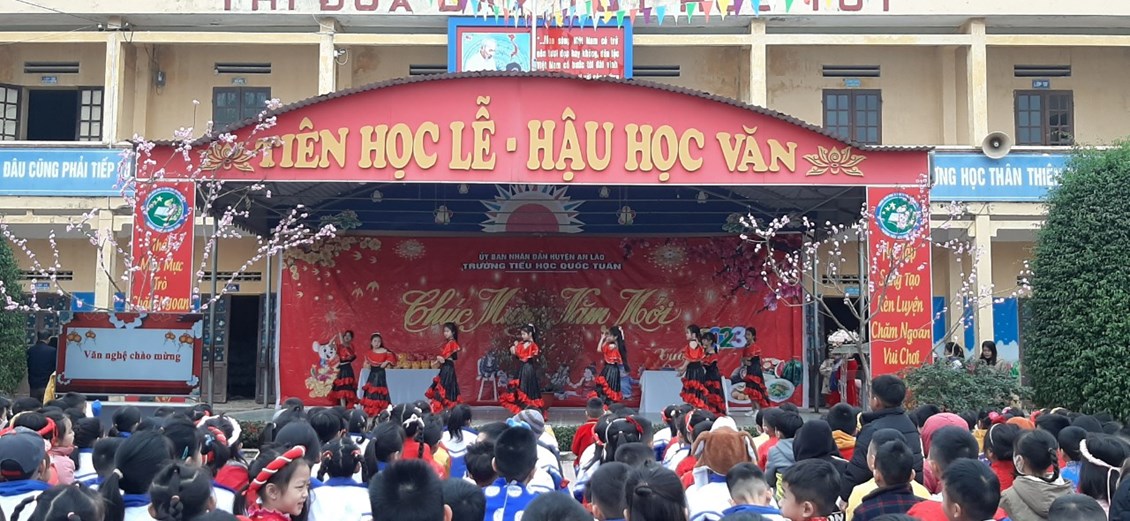 Chương trình Vui đón xuân của Trường Tiểu học Quốc Tuấn diễn ra trong không khí đầm ấm, vui tươi, tạo cho các em có tinh thần phấn khởi khi về nghỉ Tết bên gia đình. Qua đó cũng thể hiện sự quan tâm của cấp ủy Đảng chính quyền địa phương,của các bậc phụ huynh trong nhà trường./