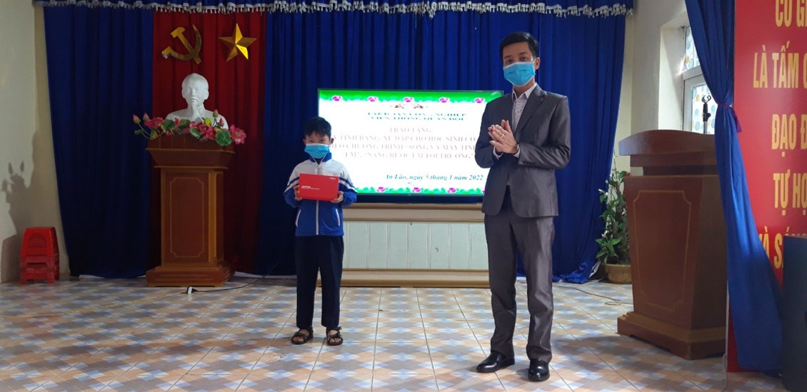 Đây là hoạt động thuộc chương trình “ Sóng và máy tính cho em” và “ Nâng bước em tới trường” do Tập đoàn công nghiệp viễn thông quân đội phối hợp với Bộ Giáo dục- Đào tạo tổ chức. Chương trình có ý nghĩa nhân văn sâu sắc trong bối cảnh dịch Covid- 19 đang diễn biến phức tạp, rất nhiều học sinh ở các tỉnh thành phố phải ngừng đến trường, chuyển sang học trực tuyến. Mọi nguồn lực trong xã hội đã được huy động để các em học sinh nghèo có máy tính học trực tuyến. 10 học sinh được nhận máy tính và 2 học sinh được nhận xe đạp đều là các em thuộc hộ nghèo, cận nghèo; không có phương tiện để tham gia học trực tuyến. Chương trình đã giúp các em không gián đoạn việc học, viết tiếp giấc mơ theo đuổi con chữ.