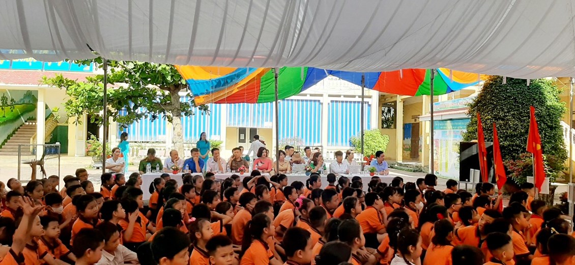 Mở đầu là các tiết mục văn nghệ đặc sắc do các em học sinh trong trường biểu diễn, đặc biệt là sự khắc họa hình tượng các anh hùng nhỏ tuổi: Võ Thị Sáu, Lê Văn Tám, Kim Đồng… Tiếp theo là buổi lễ tổng kết ngắn gọn nhưng đã nêu bật được thành tích của cô trò nhà trường đạt được trong năm học 2022- 2023, tuyên dương các học sinh đạt danh hiệu Cháu ngoan Bác Hồ và hoàn thành xuất sắc và hoàn thành tốt các nhiệm vụ của học sinh. 2 em Vũ Thảo Nguyên và Vũ Phương Anh vinh dự bước lên sân khấu nhận phần thưởng học sinh giỏi các cấp. Các cô giáo tiêu biểu như cô Vũ Thị Thơm, Đặng Thị Thu Hà, Phùng Thị Thu Hiền, Nguyễn Thị Thanh Huyền, Nguyễn Thị Thúy, Vũ Việt Phương, Vũ Thị Hương Giang, Nguyễn Thị Yến, Lương Thị Vân Anh, Phạm Thị Duyên, Tạ Thị Thắm…đã được tuyên dương trong lễ tổng kết vì các thành tích xuất sắc trong năm học vừa qua. Sau đó là lễ bế giảng dành cho các học sinh lớp 5. Từng lớp từ 5A đến 5G, 204 học sinh bước lên sân khấu xúc động đón nhận tấm giấy chứng nhận hoàn thành chương trình tiểu học. Từ ngày mai, các em sẽ rời xa mái trường tiểu học thân yêu để lên một cấp học mới nhưng có lẽ kí ức về nơi này sẽ còn vẹn nguyên trong tâm hồn mỗi em. Ngay sau lễ bế giảng, anh Phạm Quang Quỳnh thay mặt cho xã đoàn lên nhận bàn giao danh sách học sinh về sinh hoạt hè tại địa phương. Thế là một mùa hè vui tươi, sôi động sắp được bắt đầu.