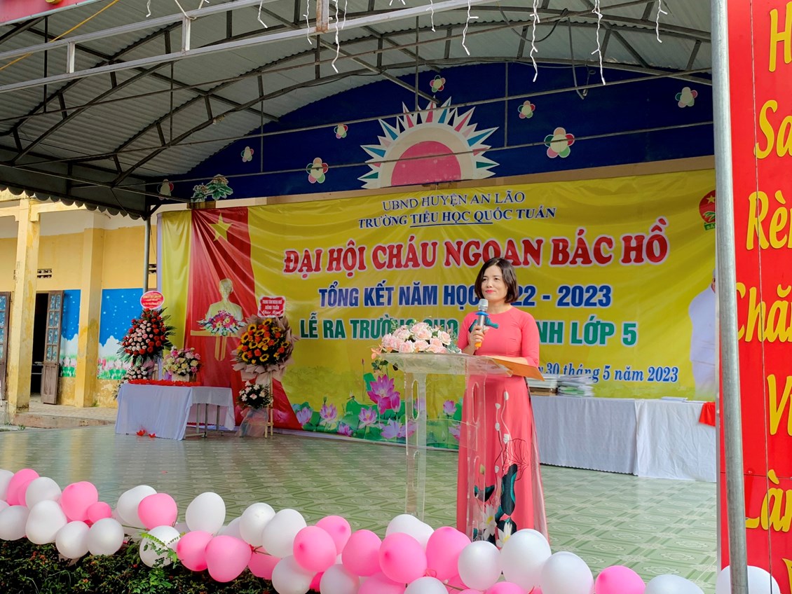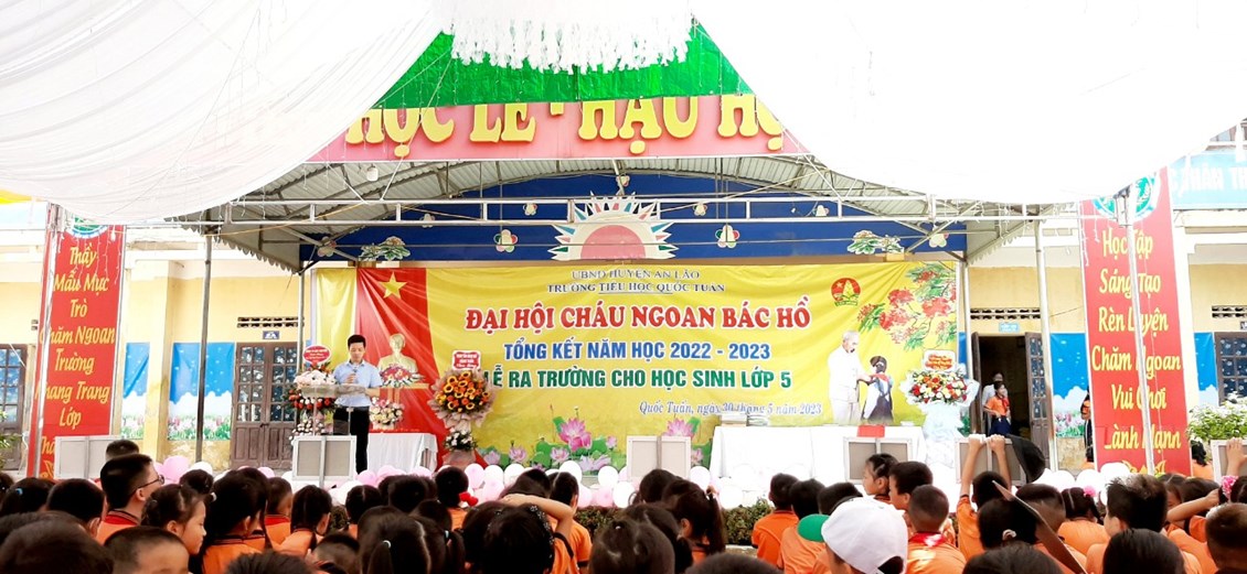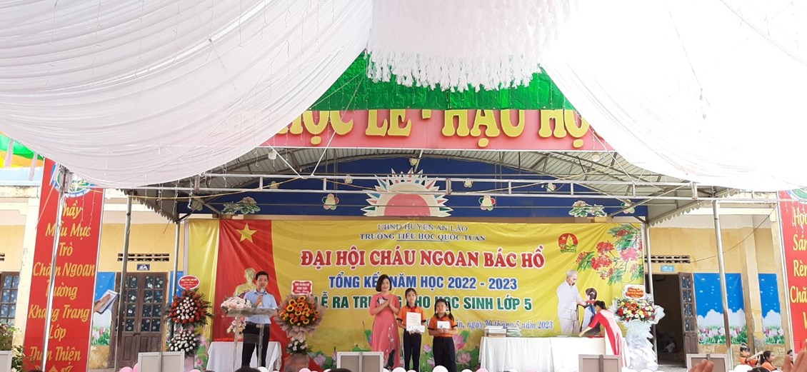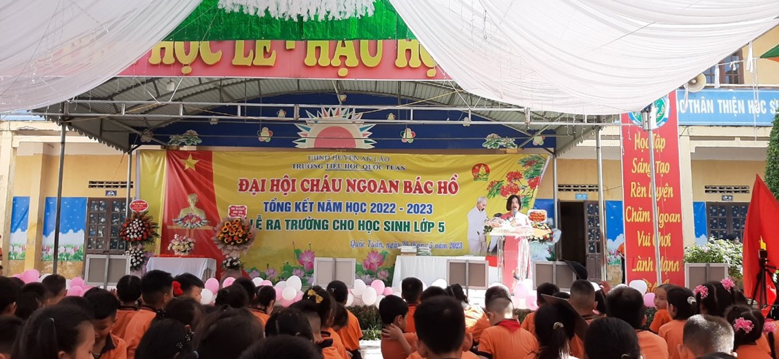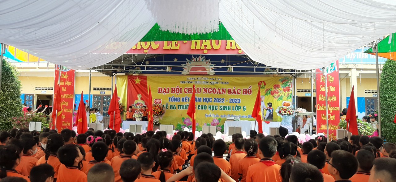 Sáng ngày 30/ 5/ 2023, trường tiểu học Quốc Tuấn tổ chức buổi lễ tổng kết năm học 2022- 2023, Đại hội Cháu ngoan Bác Hồ và chia tay học sinh lớp 5 cũng như bàn giao học sinh về sinh hoạt hè tại địa phương. Chỉ diễn ra trong thời gian trong hơn một giờ đồng hồ song các nội dung đó đã được thể hiện trọn vẹn và để lại ấn tượng sâu đậm trong tâm trí các em học sinh cũng như toàn thể các vị đại biểu tham dự buổi lễ.