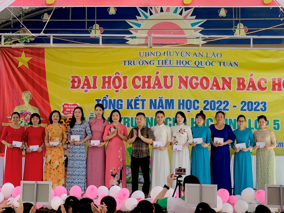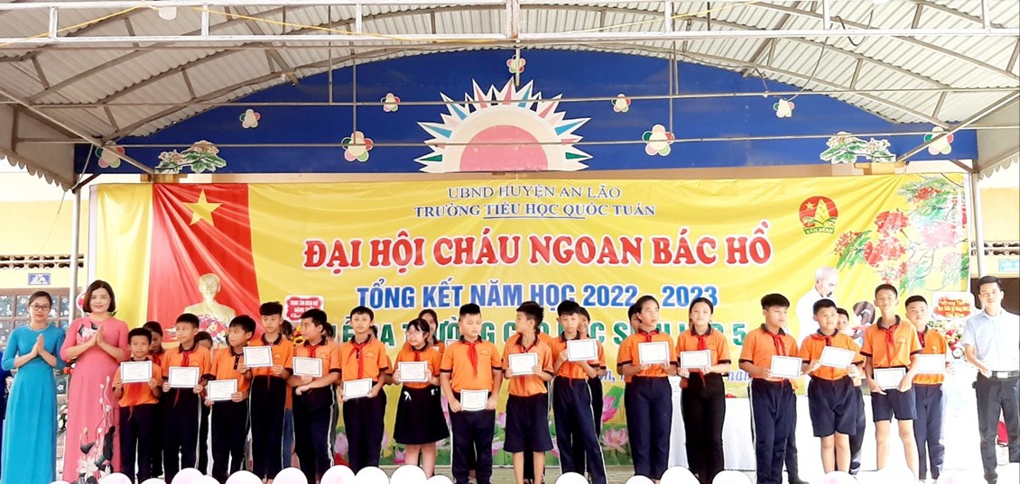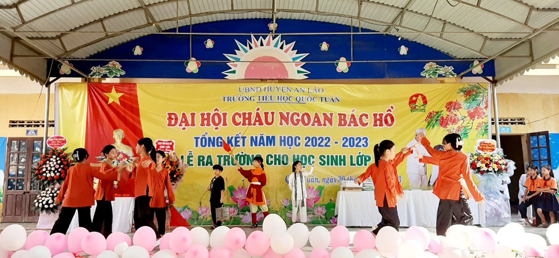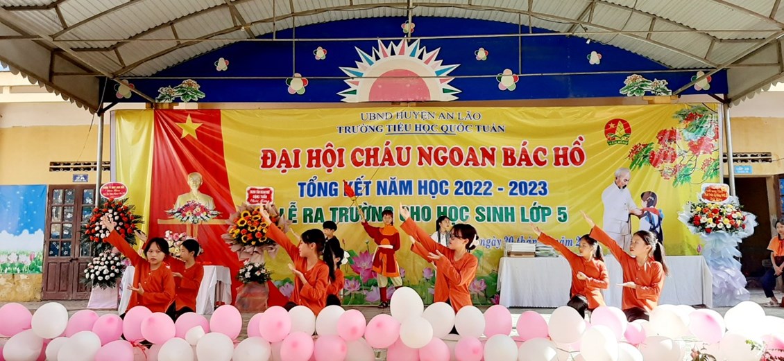 Sáng ngày 30/ 5/ 2023, trường tiểu học Quốc Tuấn tổ chức buổi lễ tổng kết năm học 2022- 2023, Đại hội Cháu ngoan Bác Hồ và chia tay học sinh lớp 5 cũng như bàn giao học sinh về sinh hoạt hè tại địa phương. Chỉ diễn ra trong thời gian trong hơn một giờ đồng hồ song các nội dung đó đã được thể hiện trọn vẹn và để lại ấn tượng sâu đậm trong tâm trí các em học sinh cũng như toàn thể các vị đại biểu tham dự buổi lễ.
