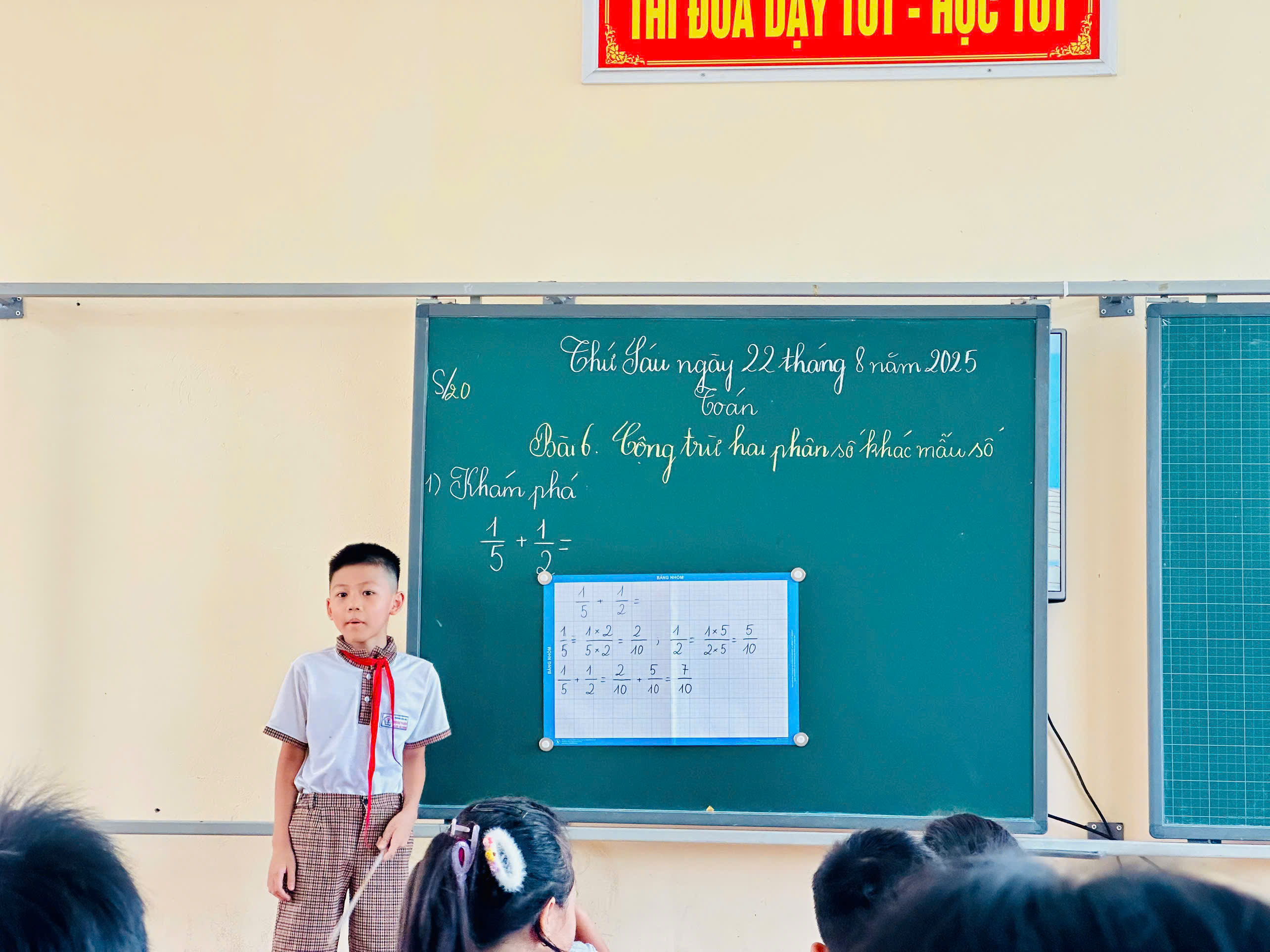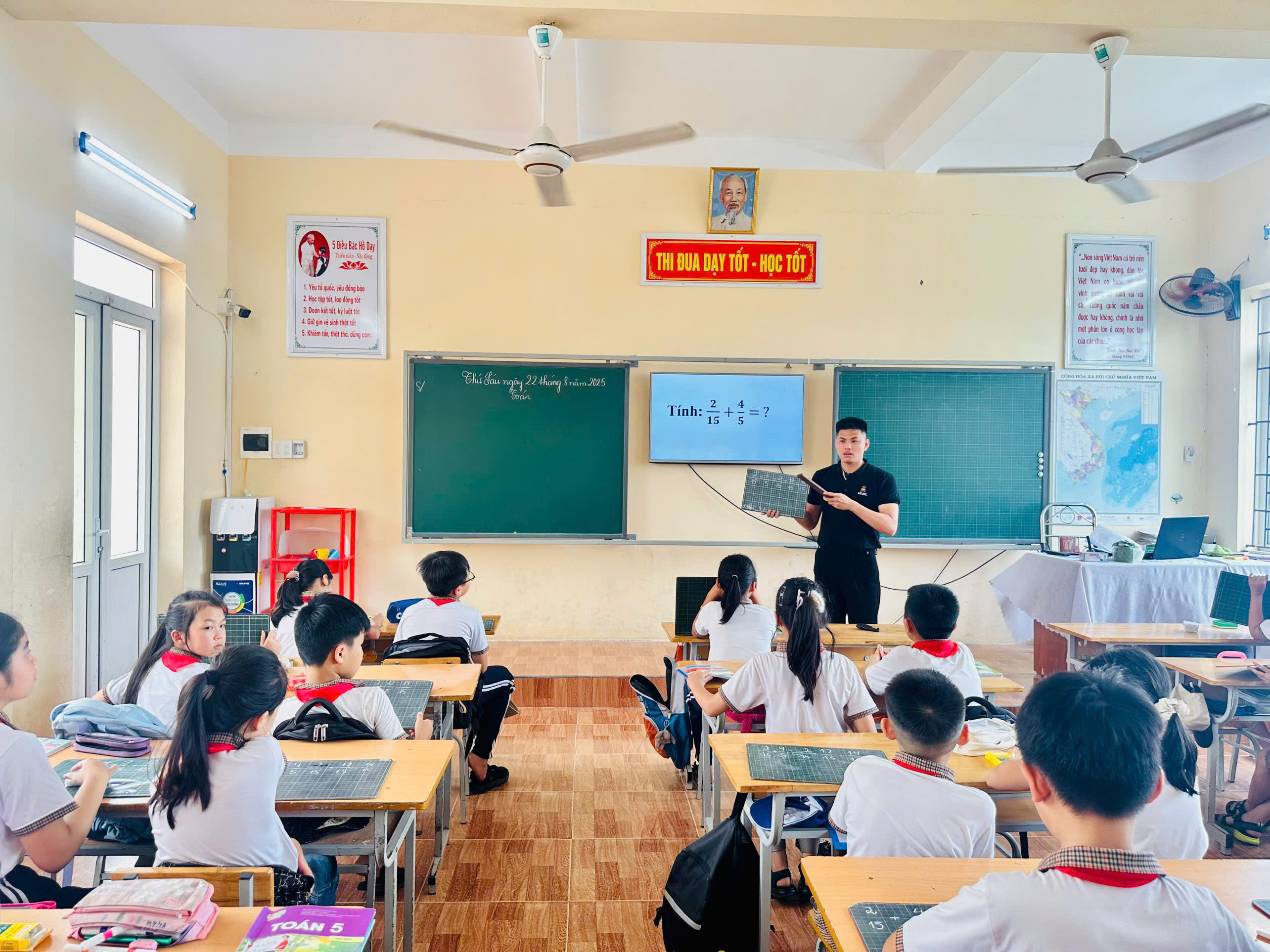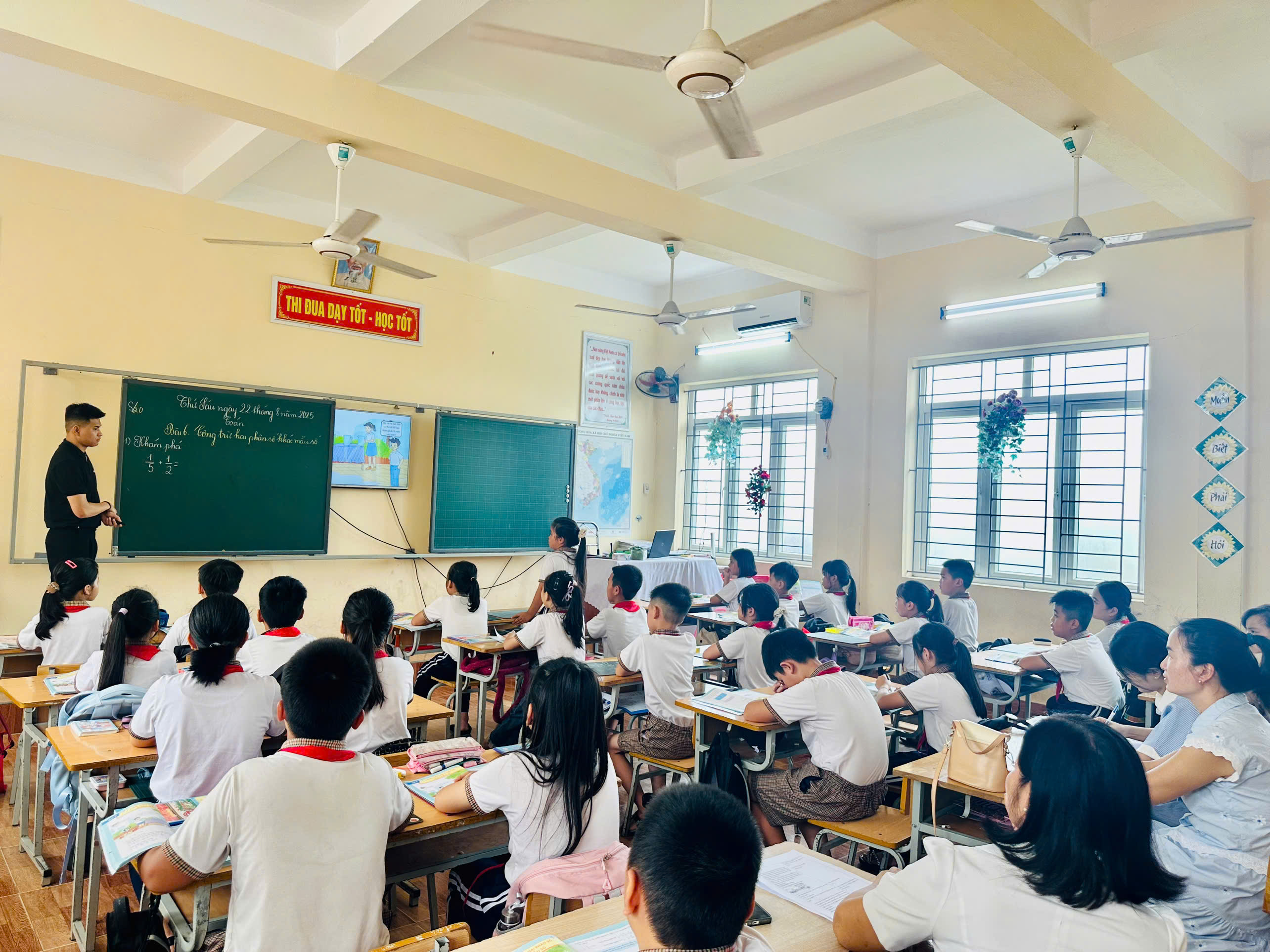 ☘️Nhằm nâng cao chất lượng dạy học, đáp ứng chuyển đổi số và bồi dưỡng đội ngũ giáo viên khối 5. Chiều 25/8, tổ 5 Trường Tiểu học Quốc Tuấn tổ chức chuyên đề môn Toán với bài “Cộng, trừ hai phân số khác mẫu số”. Tiết dạy do thầy Phạm Hoàng Nam thực hiện, ứng dụng công nghệ AI để hỗ trợ học sinh tiếp thu kiến thức, rèn kỹ năng và phát triển tư duy. Hoạt động mang đến trải nghiệm học tập mới mẻ, hứng thú cho học sinh.