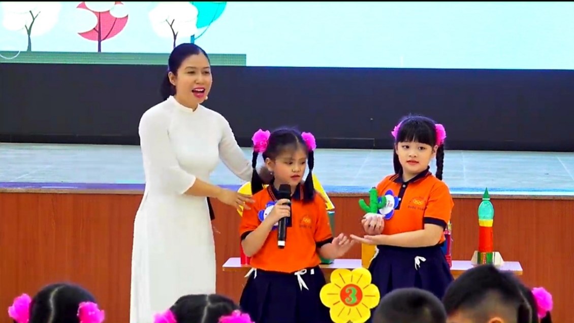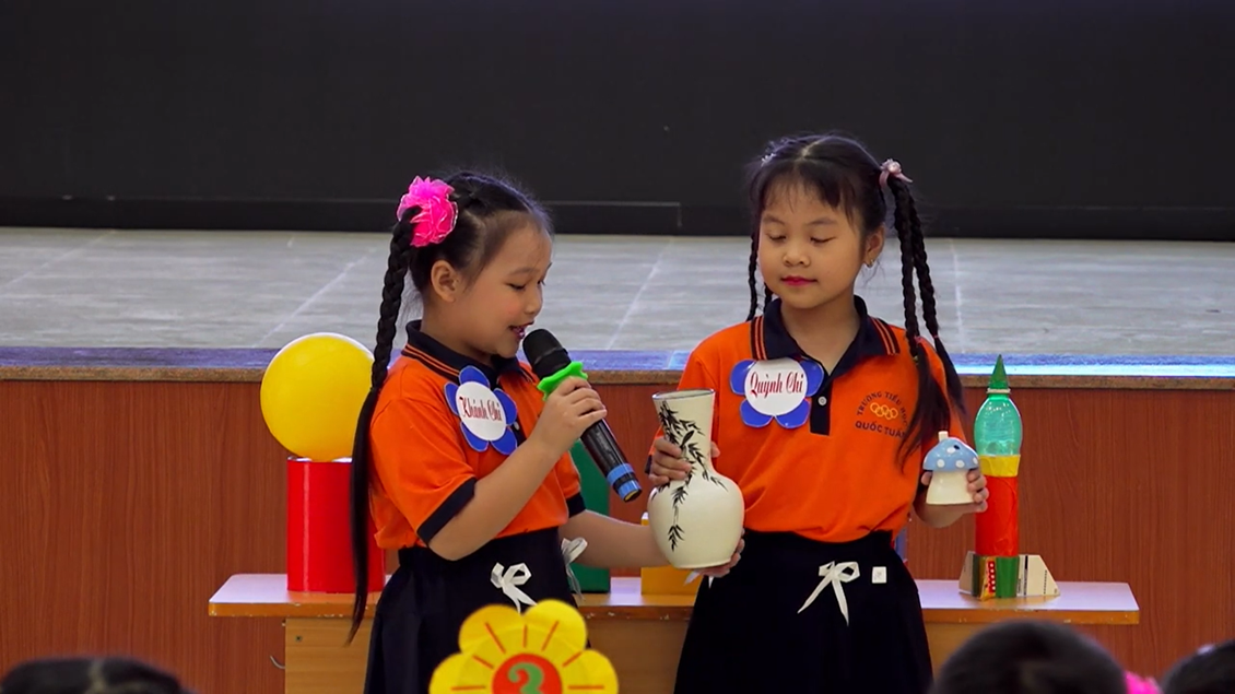 Học sinh có sự tự tin khi trình bày, nhận xét ý kiến của bạn. Sự tuyên dương, khen thưởng, gợi ý và nhận xét của cô giáo khiến tiết dạy môn Mỹ Thuật hấp dẫn, sôi nổi.Trong phần thực hành, sản phẩm đa dạng, khác nhau từ kiểu dáng, đến vật liệu thực hiện như: bệnh viện, xe tăng, đoàn tàu, máy bay, chậu cây xương rồng,... Và điều lí thú là học sinh gắn kết được sản phẩm mĩ thuật đã thực hiện với mục đích sử dụng như: món quà tặng mẹ, đồ chơi cho em, vật trưng bày làm đẹp,... Điều này thể hiện rõ thông điệp "Kết nối tri thức với cuộc sống".