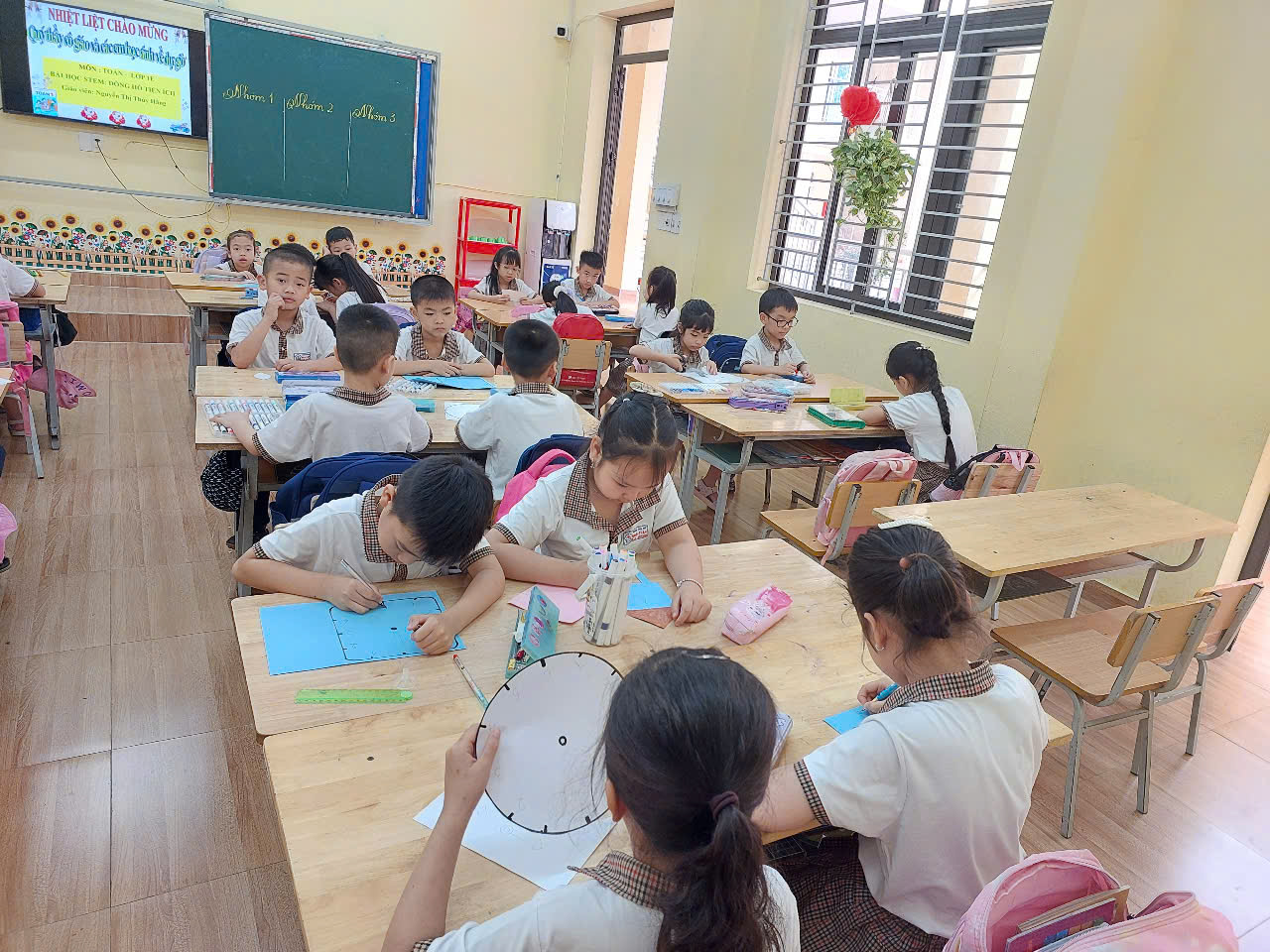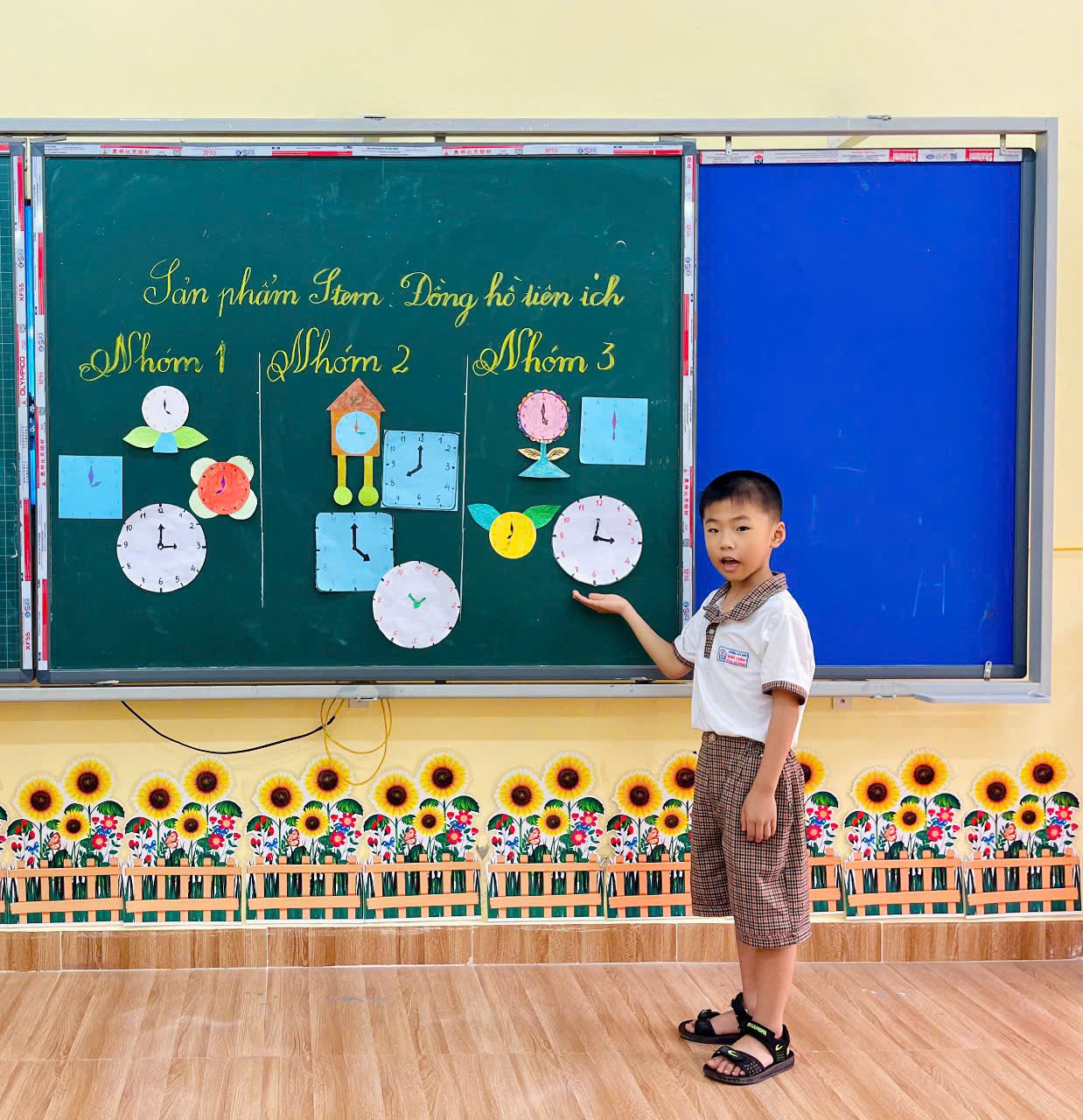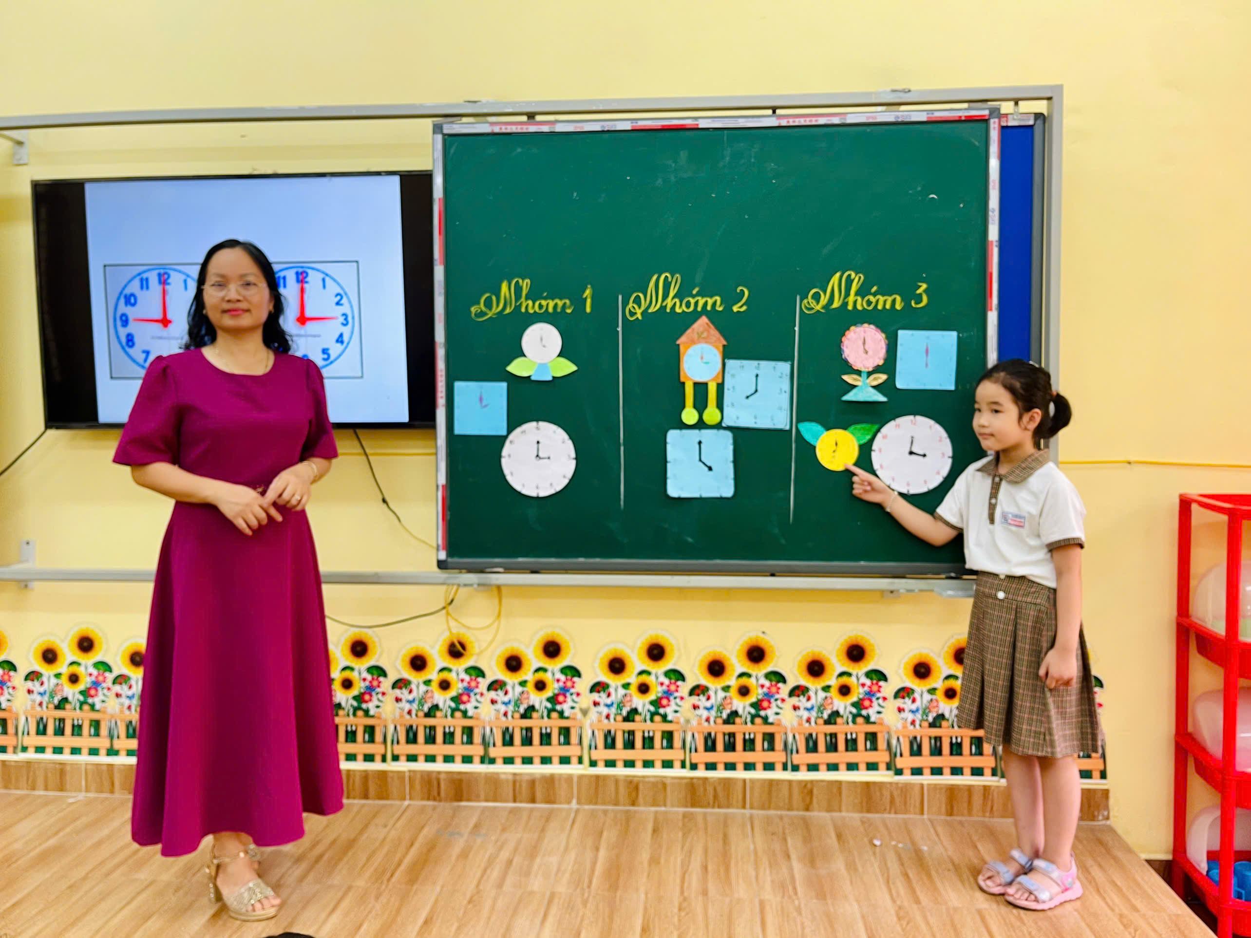 🌺 Trong tiết học, giáo viên đã áp dụng các phương pháp dạy học tích cực như: học qua dự án nhỏ, hoạt động nhóm, trò chơi học tập. Học sinh đã tự tay thiết kế, lắp ráp mô hình “đồng hồ tiện ích” từ các vật liệu đơn giản. Qua đó, các em được củng cố kiến thức về xem giờ, phân biệt thời gian trong ngày, đồng thời phát triển kỹ năng thủ công, làm việc nhóm và tư duy logic.