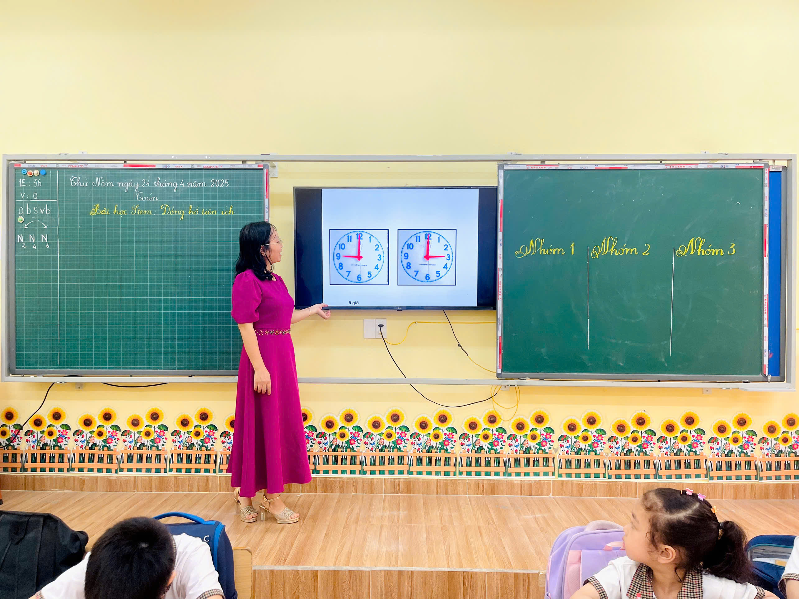 🌺 Giáo dục STEM giúp học sinh hình thành nền tảng kiến thức liên môn, rèn luyện tư duy, sáng tạo và kỹ năng giải quyết vấn đề.Thực hiện kế hoạch chuyên môn năm học về giáo dục STEM nhằm phát triển năng lực học sinh, sáng ngày 24 /4 tổ 1 đã tổ chức chuyên đề môn Toán với bài học “Đồng hồ tiện ích”. Tiết dạy được cô giáo Nguyễn Thị Thúy Hằng thực hiện tại lớp 1E, mang lại nhiều trải nghiệm học tập sinh động và hiệu quả cho học sinh.