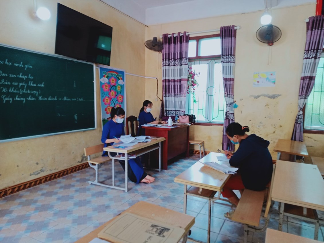 Đồng thời bố trí mỗi phòng tiếp nhận khoảng 5 - 7phụ huynh ngồi giãn cách nhằm hạn chế việc tập trung đông người trong cùng một thời điểm.