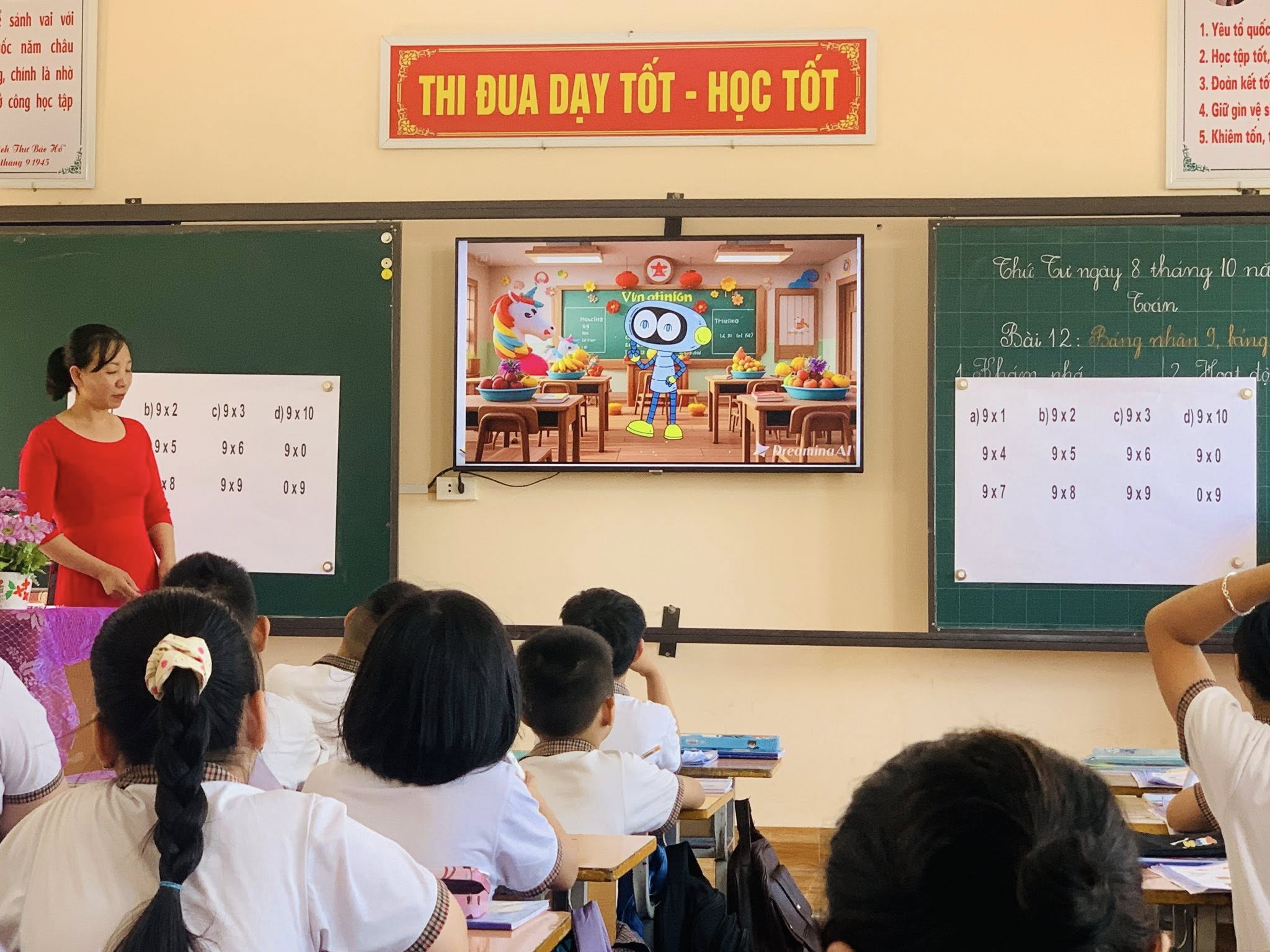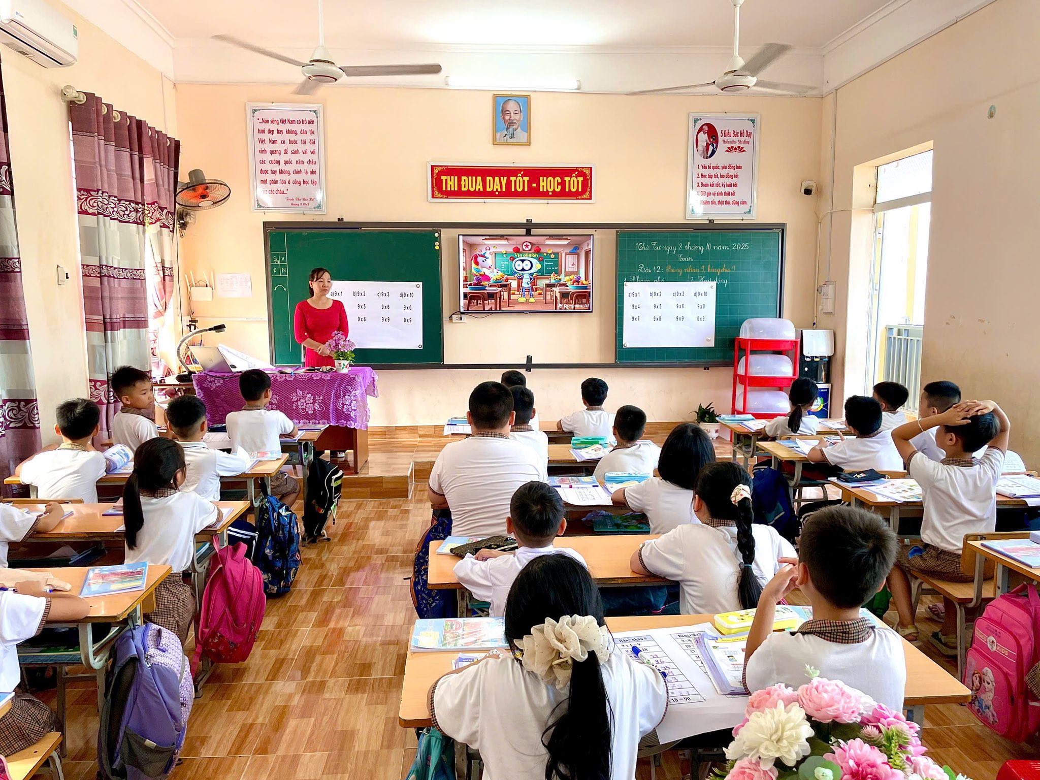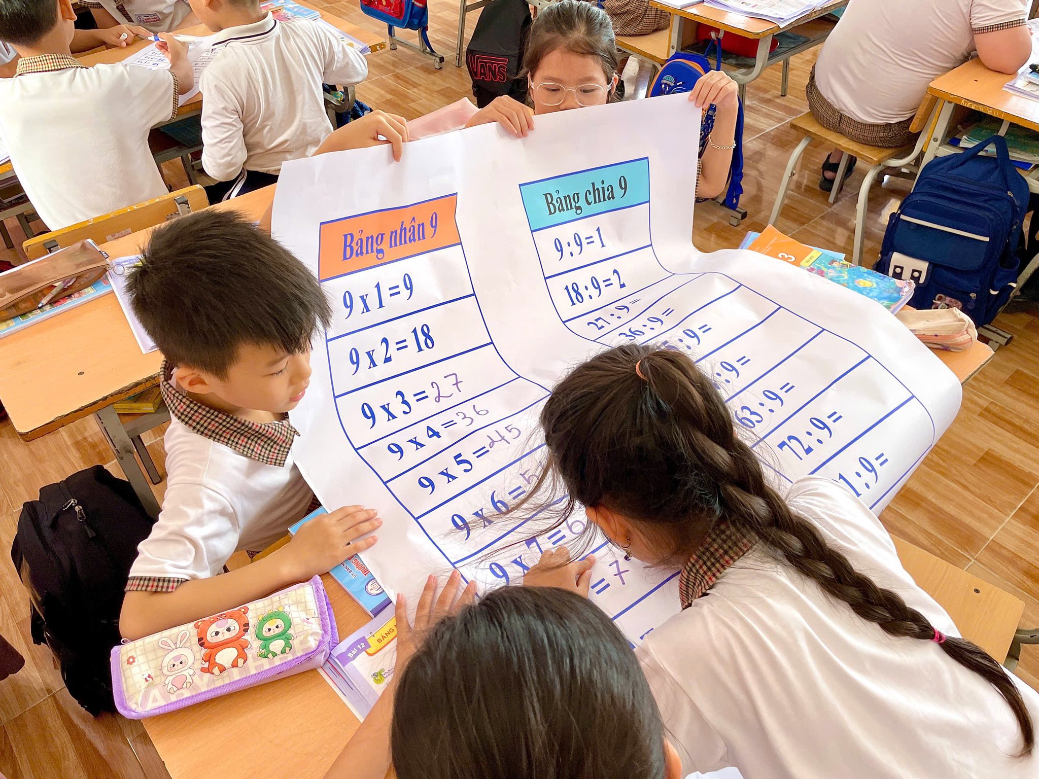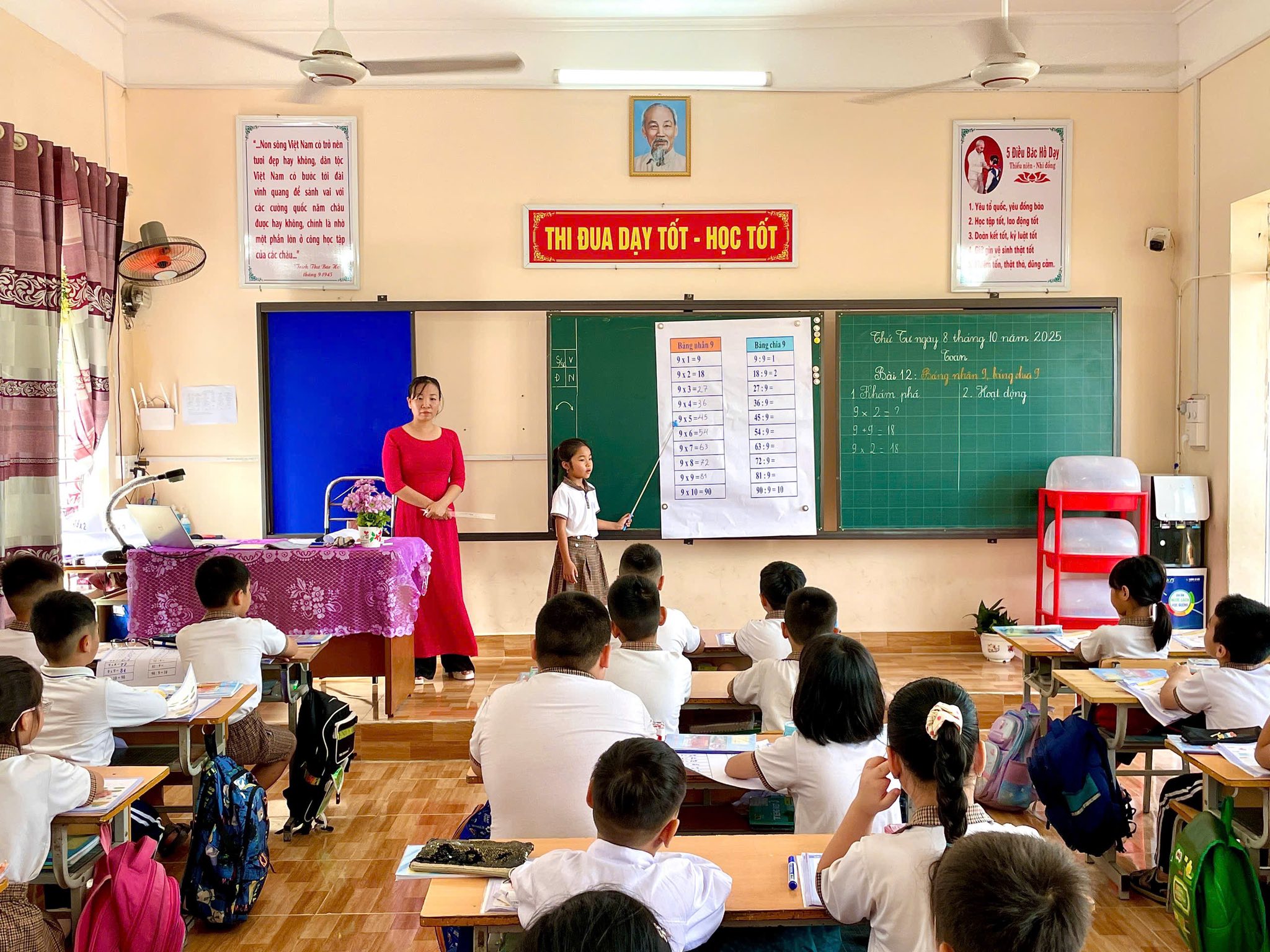 👩🏫 Tiết dạy: Bảng nhân 9, bảng chia 9 (Tiết 1) do cô Nguyễn Thị Huyền thực hiện thực sự khiến các con háo hức ngay từ đầu. Cô vận dụng phương pháp dạy học tích cực, để học sinh trở thành nhân vật chính: được tìm tòi, trao đổi, thảo luận và tự tin trình bày ý kiến trước lớp.