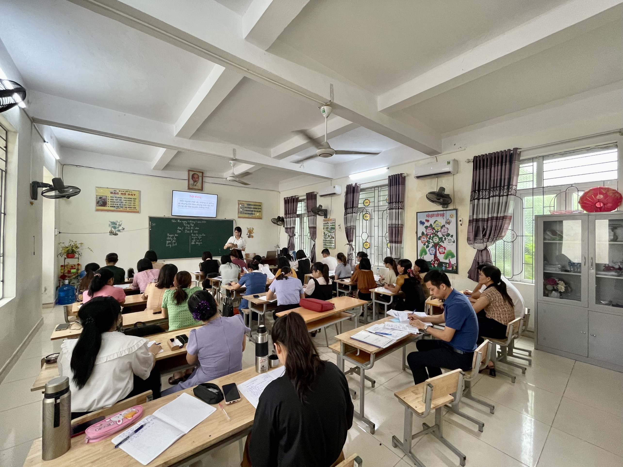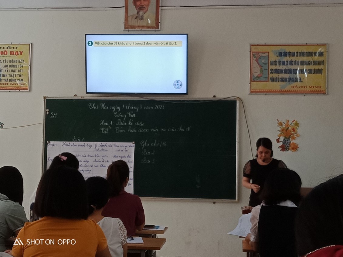 Việc lên kế hoạch cho chuyên đề trường đã được Ban giám hiệu, đặc biệt là đồng chí Hiệu phó phụ trách chuyên môn Đỗ Văn Trọng đưa ra ngay từ cuộc họp hội đồng vào cuối tháng 7 để chuẩn bị cho việc tháng 8 các cán bộ giáo viên quay lại trường sau thời gian nghỉ hè. Với đặc thù đây là khoảng thời gian dành để cho các cán bộ giáo viên học tập, bồi dưỡng chuyên môn; lên chuyên đề nhằm nâng cao nghiệp vụ sư phạm nên kế hoạch trong khoảng thời gian này đã được Ban giám hiệu sắp xếp hết sức khoa học. Việc tập huấn chương trình GDPT mới 2018 đã được phổ biến tới tất cả các thầy cô giáo trong Hội đồng sư phạm nhà trường. Dù đang nghỉ hè nhưng tất cả đều tham gia học tập nghiêm túc từ ngày 24/7 đến hết ngày 28/7. Sau đó là thời gian sinh hoạt chuyên môn, bàn bài và lên chuyên đề trường của khối 4. Với mục đích minh họa tiết dạy nhằm giúp người dự học tập, lĩnh hội được những ưu việt của chương trình GDPT mới 2018 và bộ sách “ Kết nối tri thức với cuộc sống”, 5 cô giáo Thu Hiền (Tiết Đọc " Điều kì diệu"), Hải Hà ( Tiết Luyện từ và câu" Danh từ"), Phạm Thúy ( Tiết Viết" Tìm hiểu đoạn văn và câu chủ đề"), Thanh Huyền( Tiết Nói và nghe" Tôi và bạn") và Hồng Hà ( Tiết Toán" Biểu thức chứa chữ") đã hoàn thành xuất sắc nhiệm vụ của mình. Tuy đều là các cô giáo trẻ song với tác phong sư phạm chững chạc, bản lĩnh vững vàng; các cô đều đã có tiết dạy hết sức thành công.