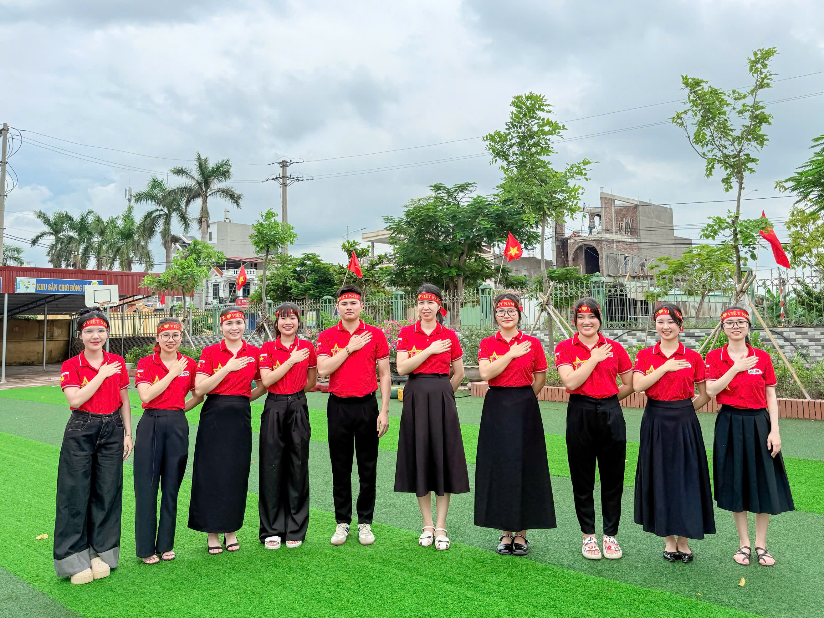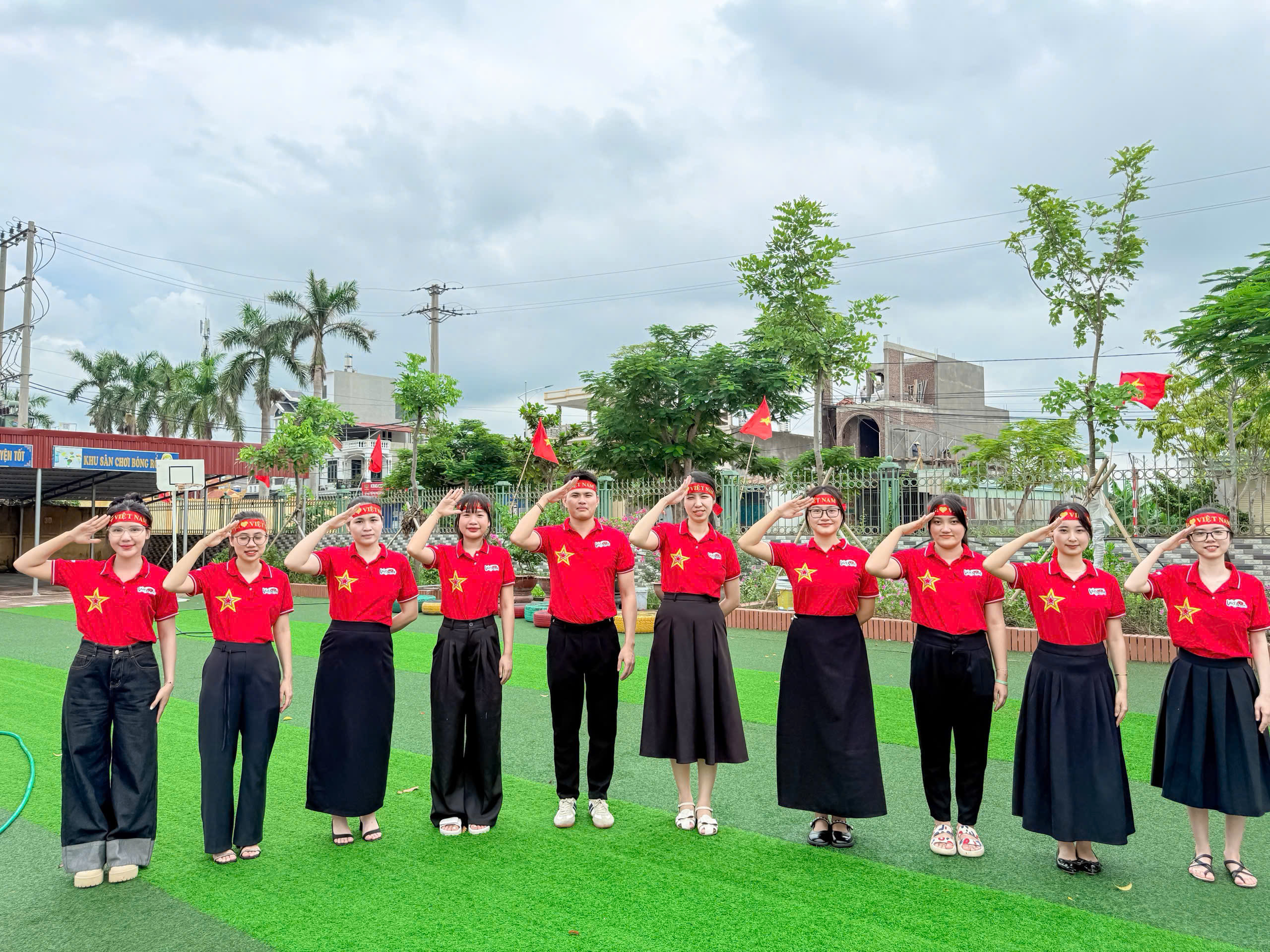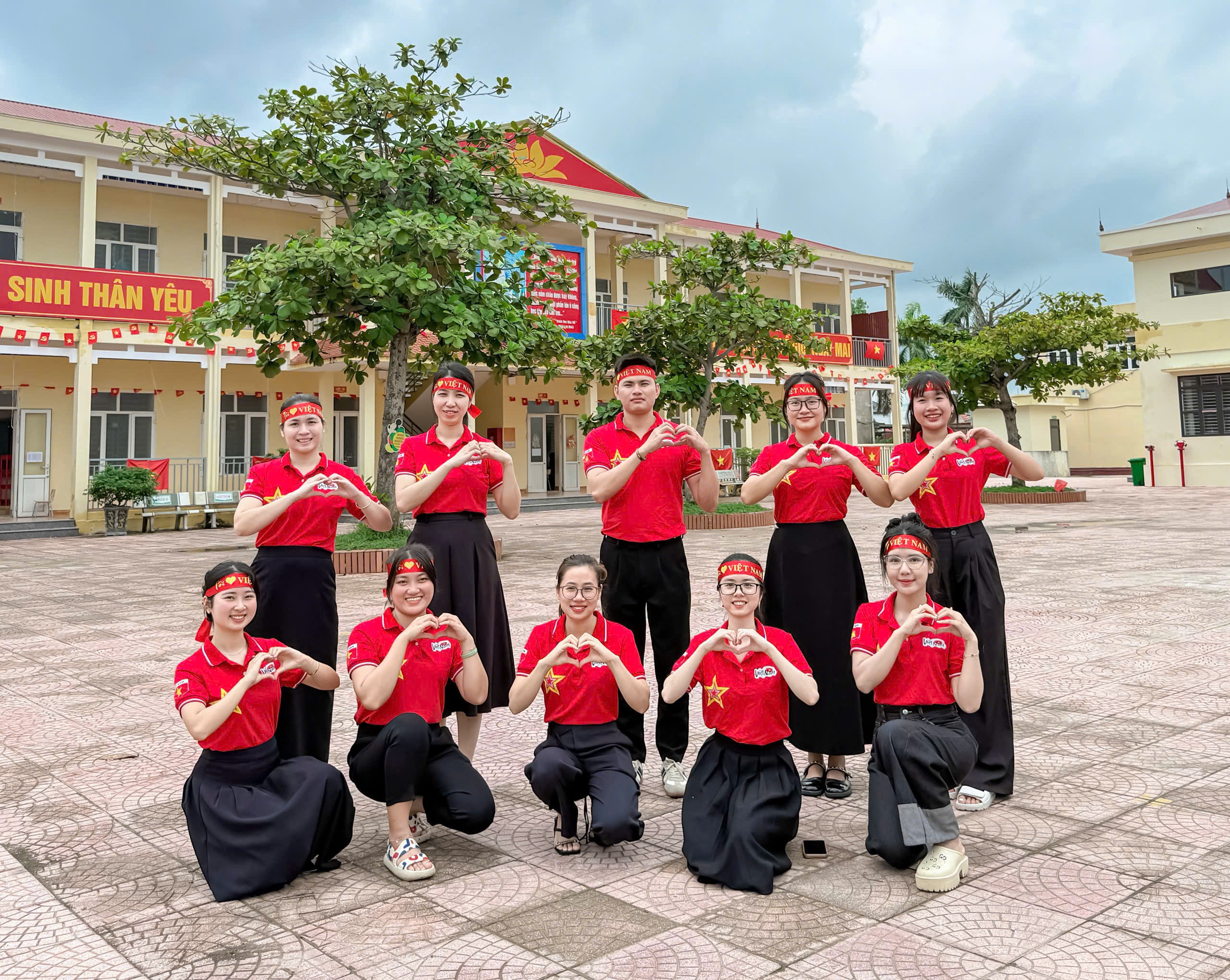 ✨ Với sắc đỏ tươi của màu áo cờ Tổ quốc, các đoàn viên thanh niên giáo viên nhà trường và học sinh cùng nhau xếp đội hình, giương cao lá cờ đỏ sao vàng, tái hiện hình ảnh kiêu hãnh của dân tộc qua từng nụ cười, ánh mắt rạng rỡ niềm vui. Những khoảnh khắc rực rỡ thể hiện niềm tự hào dân tộc, tri ân các thế hệ cha anh đã hy sinh vì độc lập – tự do của Tổ Quốc Việt Nam.