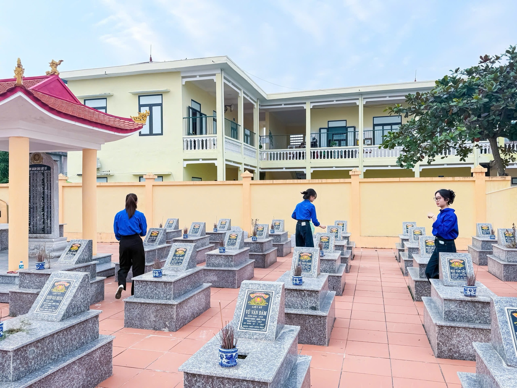 Dưới cái nắng hanh hao của những ngày cuối năm, những nụ cười vẫn rạng rỡ trên môi các thầy cô giáo trẻ. Màu áo xanh hòa cùng màu gạch đỏ của nghĩa trang liệt sỹ tạo nên một hình ảnh đẹp về sự nối tiếp truyền thống và khát vọng cống hiến của thế hệ trẻ trường Tiểu học Quốc Tuấn.