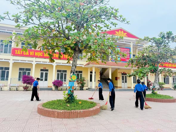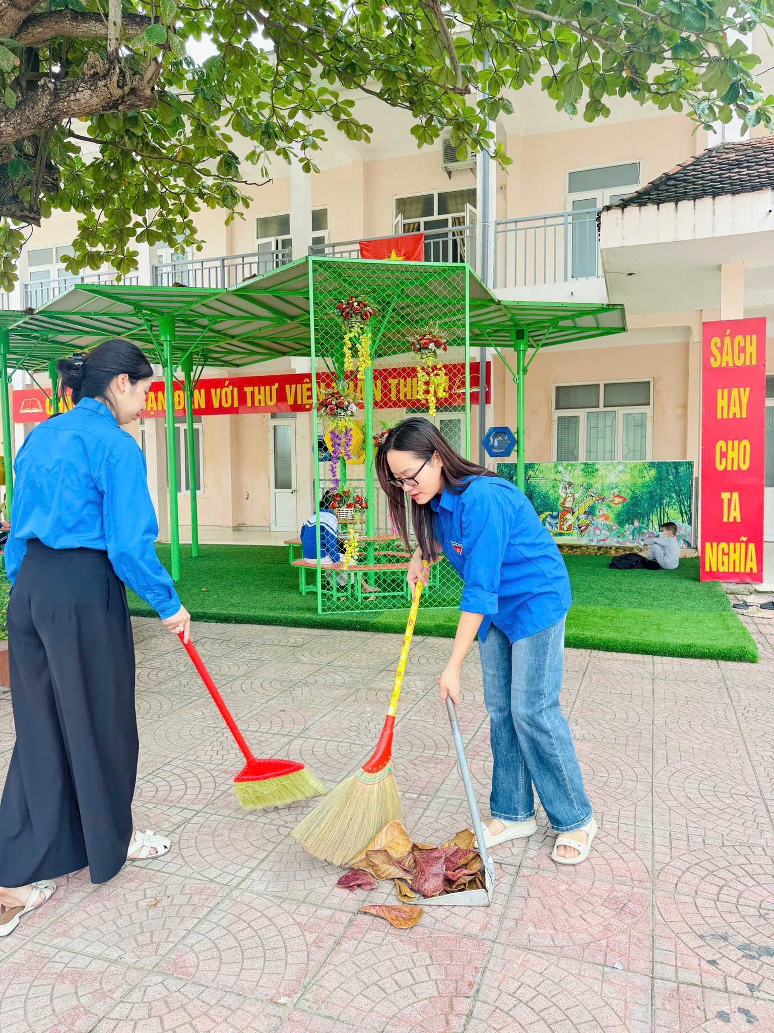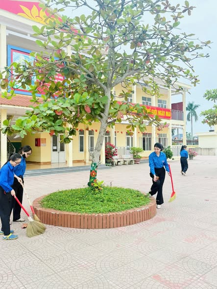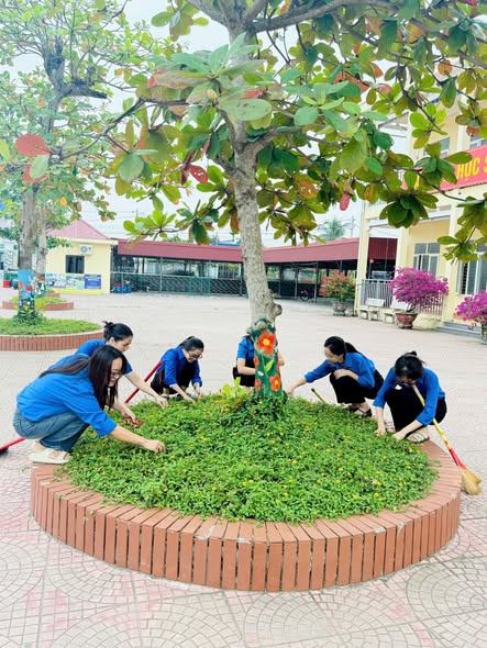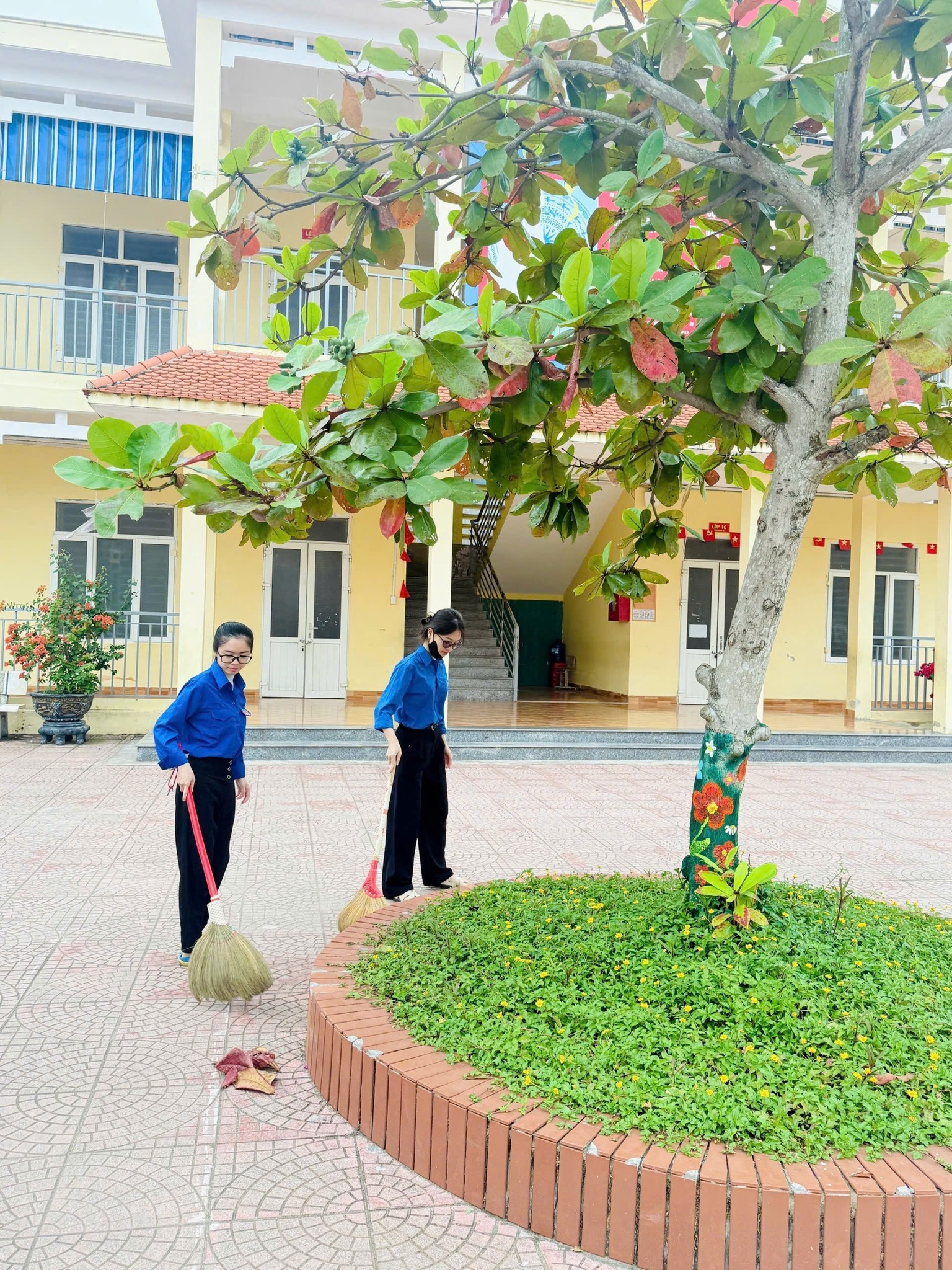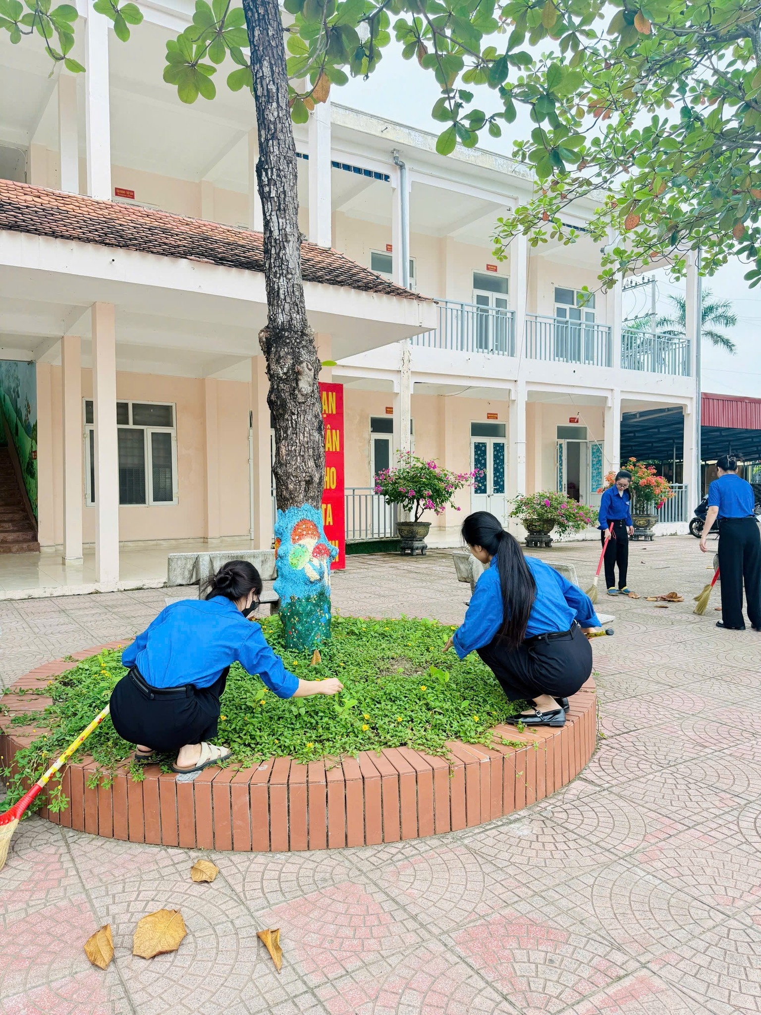 Với khí thế xung kích của tuổi trẻ, toàn thể đoàn viên đã tích cực quét dọn, thu gom rác thải, làm sạch khu vực cổng trường, sân trường và các khu vực xung quanh đơn vị. Song song đó, các đoàn viên còn chăm sóc bồn h