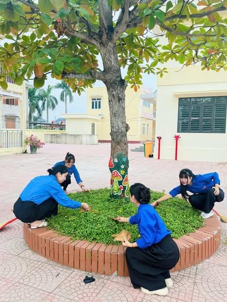 oa, cắt tỉa cây cảnh và trồng bổ sung cây xanh, góp phần tạo nên không gian học đường xanh mát, trong lành.