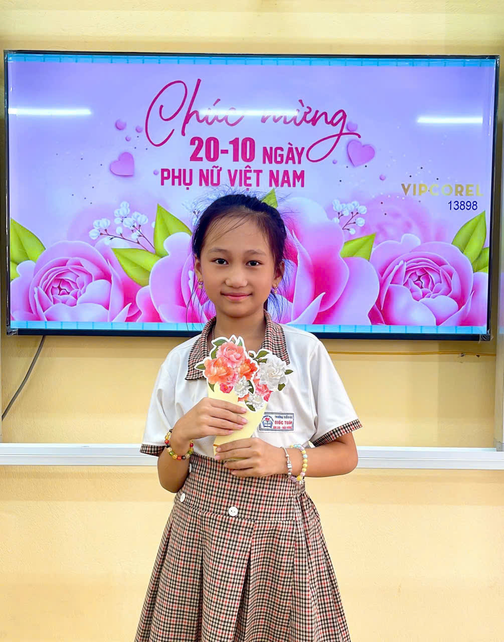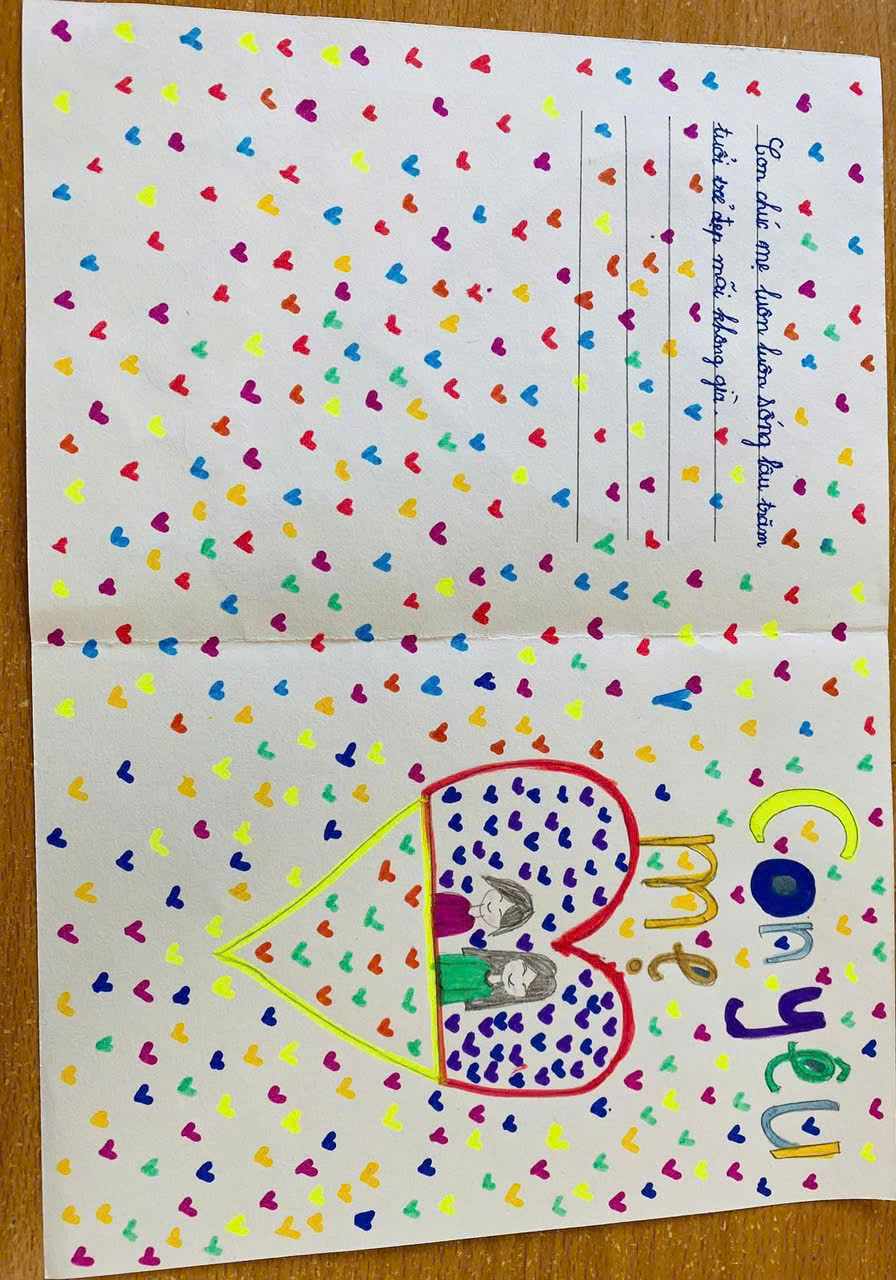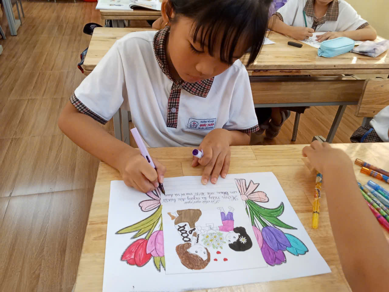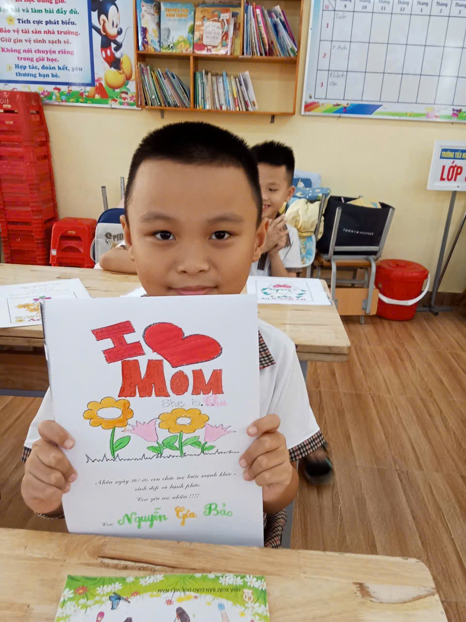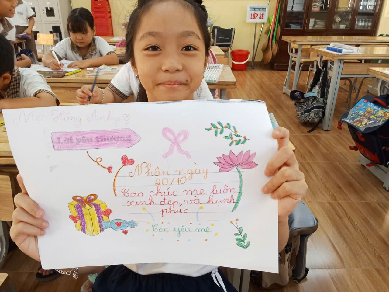 Ở mỗi lớp học, các bạn còn tự tay làm những tấm thiệp xinh xắn, sáng tạo để gửi tặng bà, mẹ, cô giáo - những người luôn quan tâm, dạy dỗ và yêu thương chúng ta mỗi ngày.