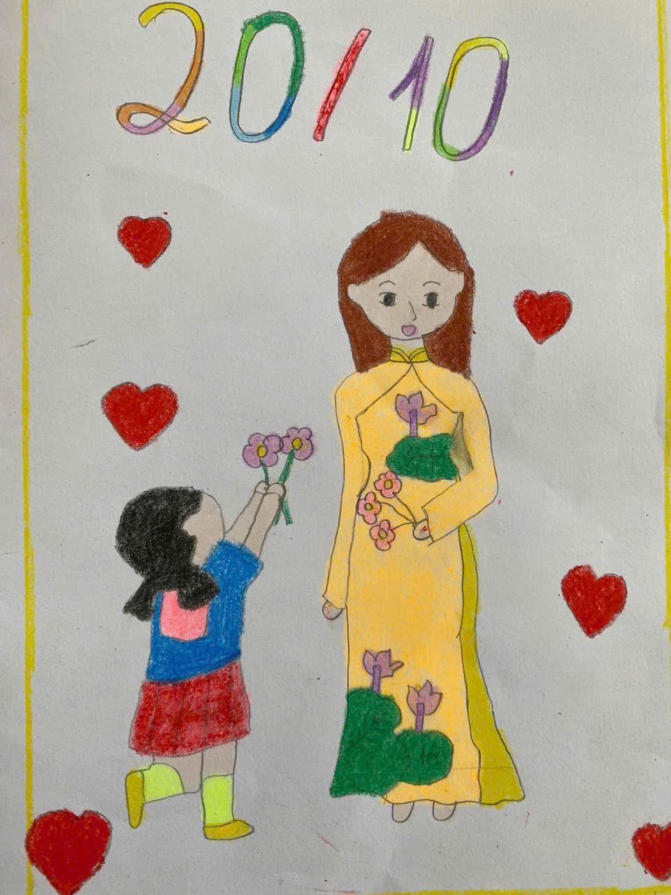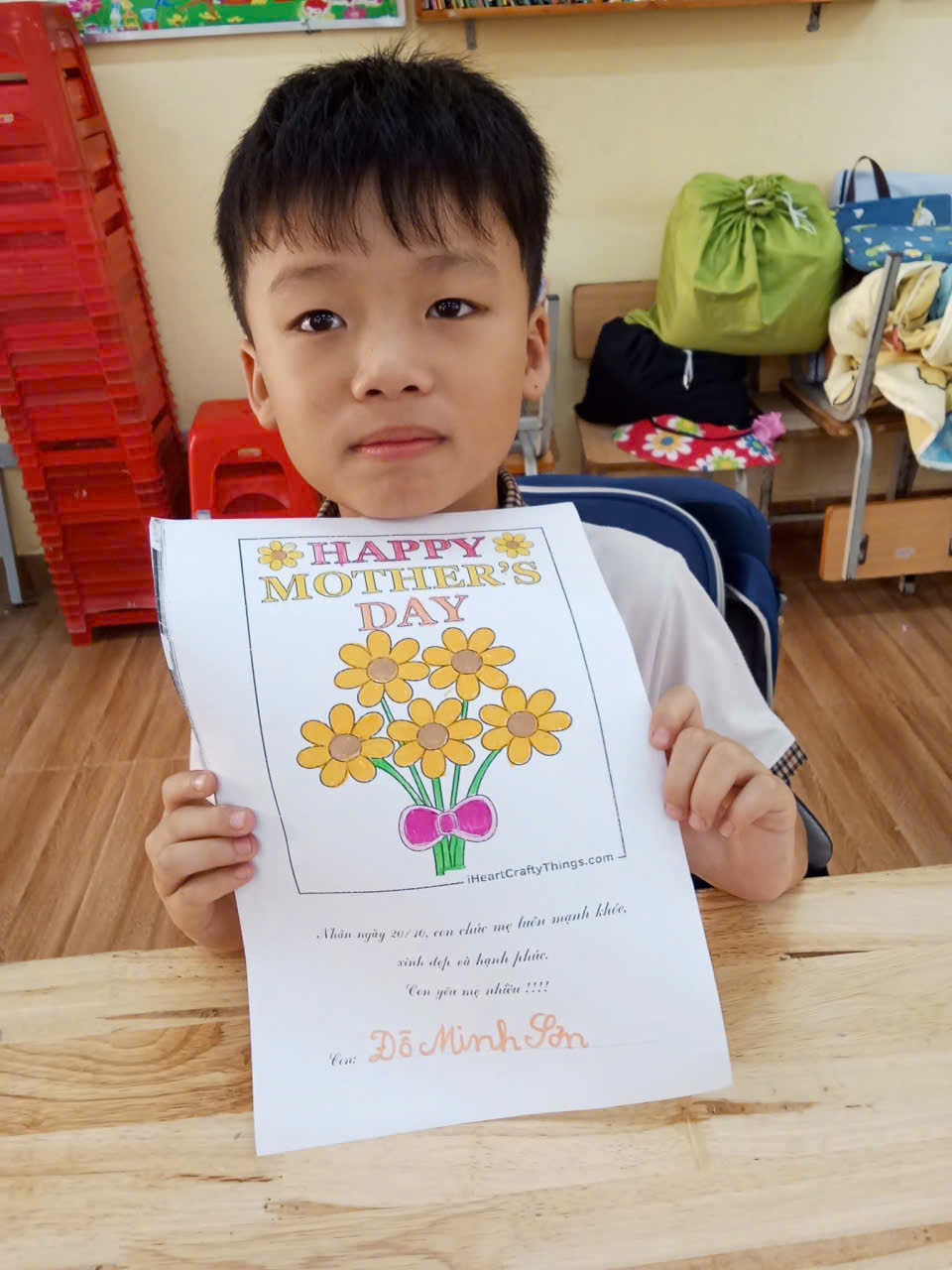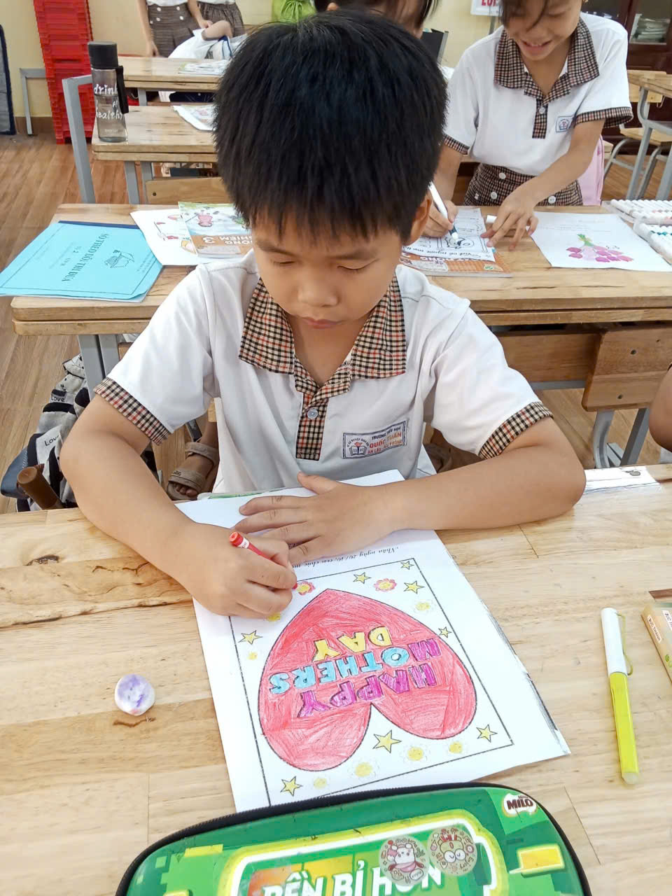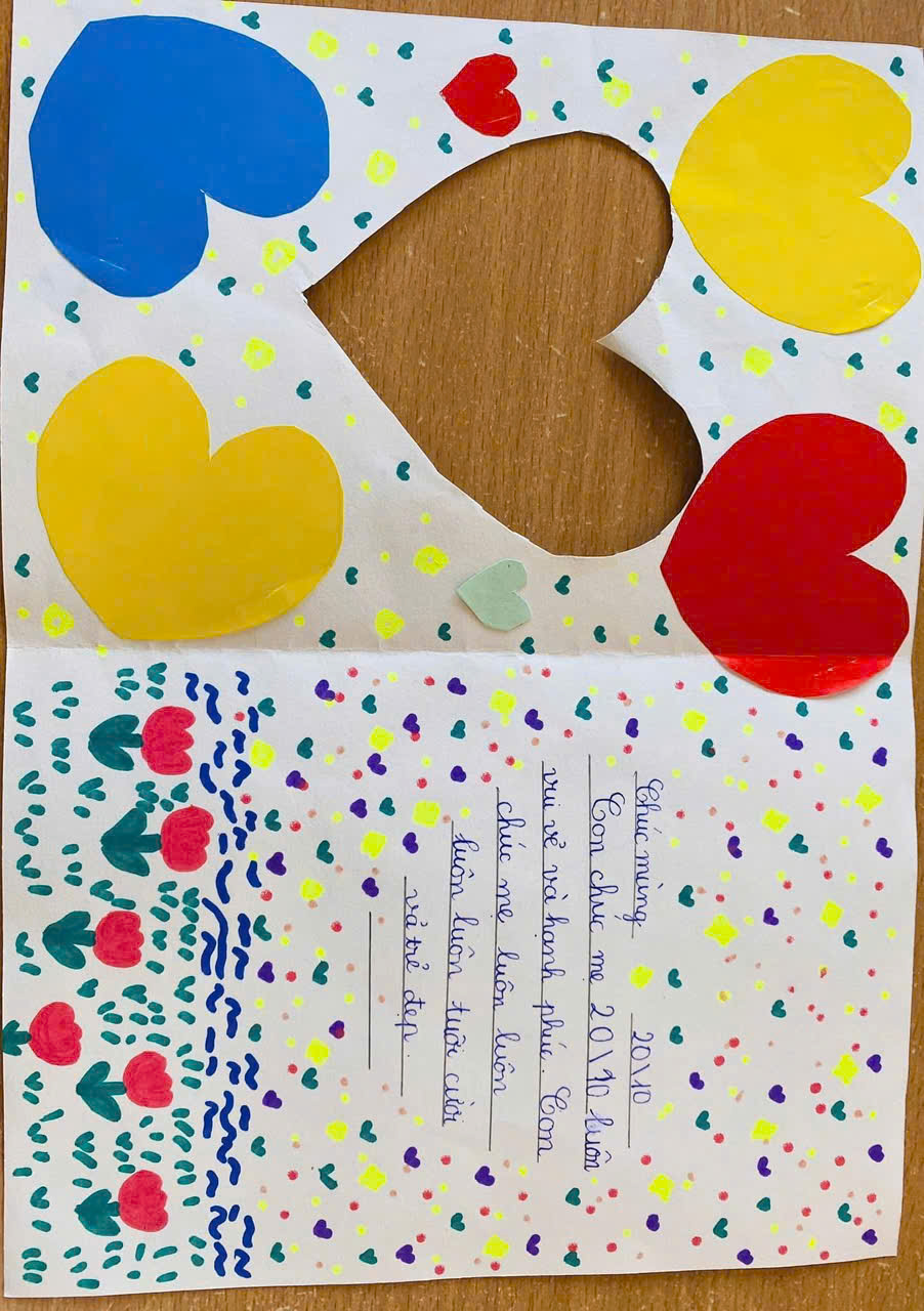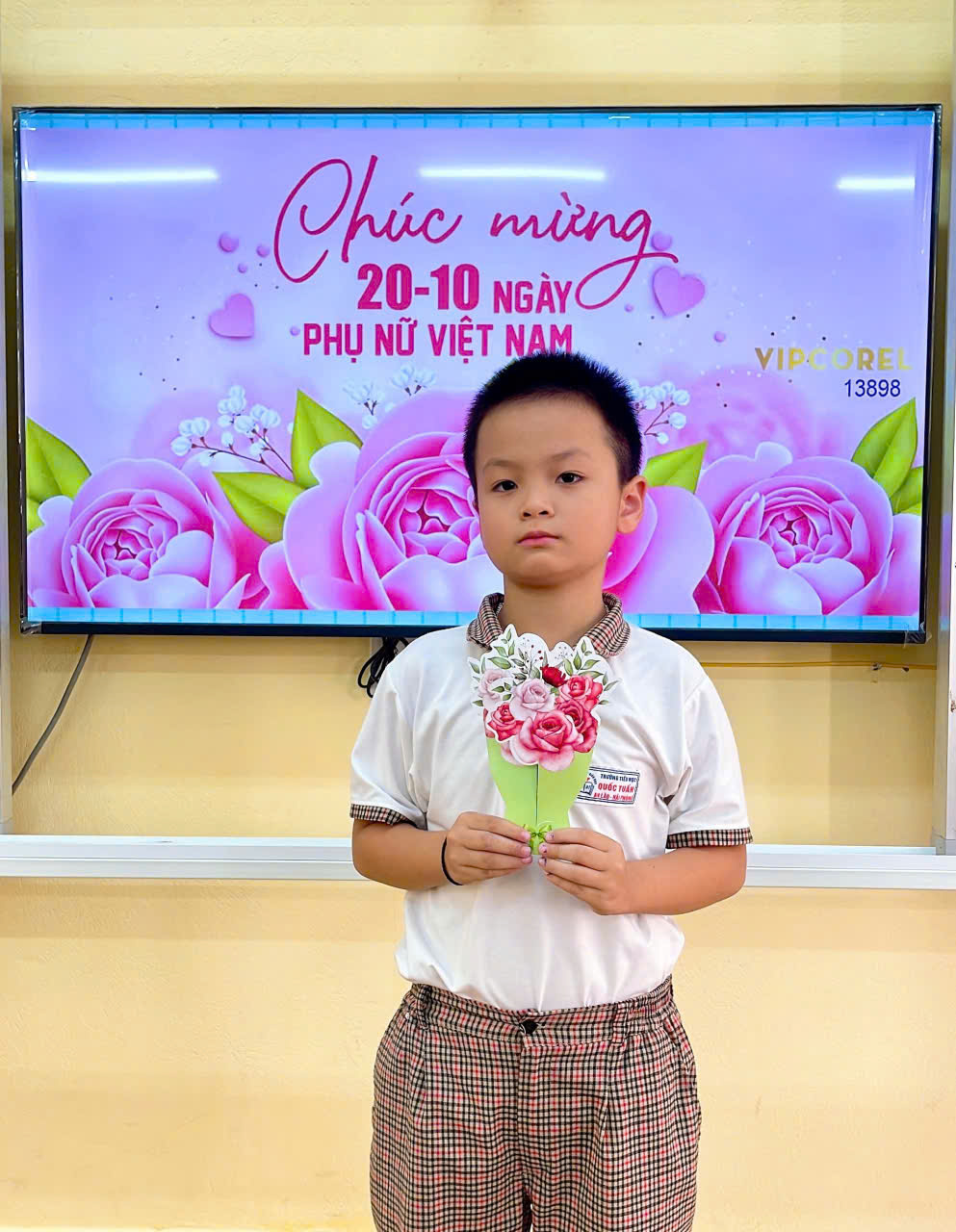 Ở mỗi lớp học, các bạn còn tự tay làm những tấm thiệp xinh xắn, sáng tạo để gửi tặng bà, mẹ, cô giáo - những người luôn quan tâm, dạy dỗ và yêu thương chúng ta mỗi ngày.