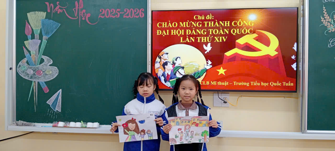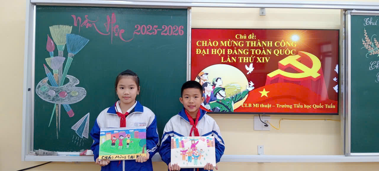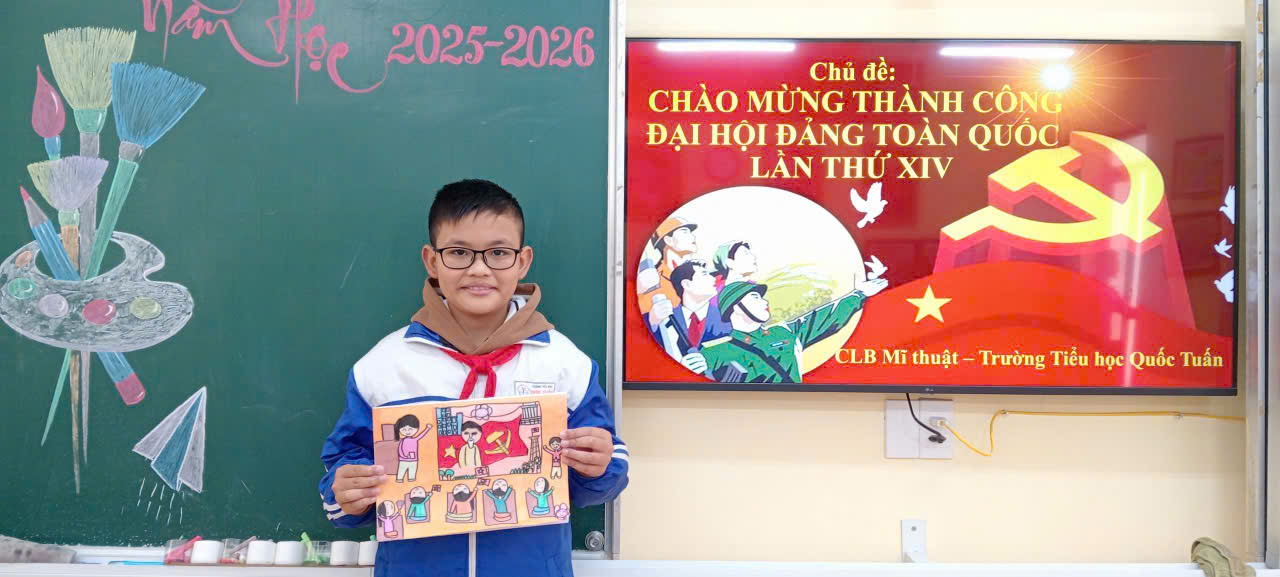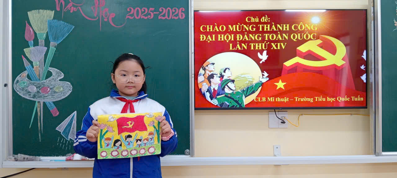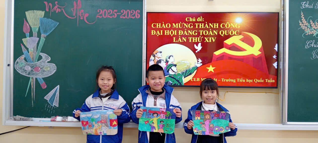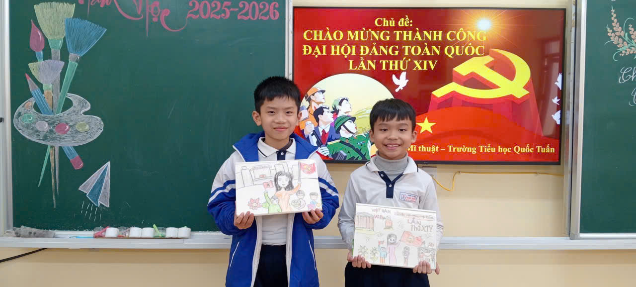 🌻 Nhằm tuyên truyền, giáo dục cho thiếu nhi truyền thống yêu nước, lòng tự hào dân tộc và niềm tin vào sự lãnh đạo của Đảng Cộng sản Việt Nam, Liên đội Trường Tiểu học Quốc Tuấn đã tổ chức hoạt động vẽ tranh chào mừng thành công Đại hội Đảng với không khí sôi nổi, ý nghĩa và đầy sáng tạo.
