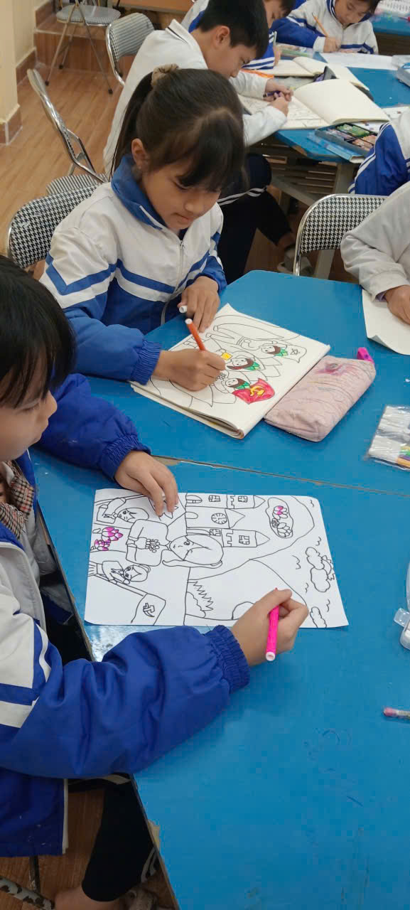 🌻 Thông qua hoạt động vẽ tranh, các em học sinh được thể hiện suy nghĩ, tình cảm của mình bằng những nét vẽ hồn nhiên, trong sáng. Nội dung tranh tập trung vào các chủ đề như: