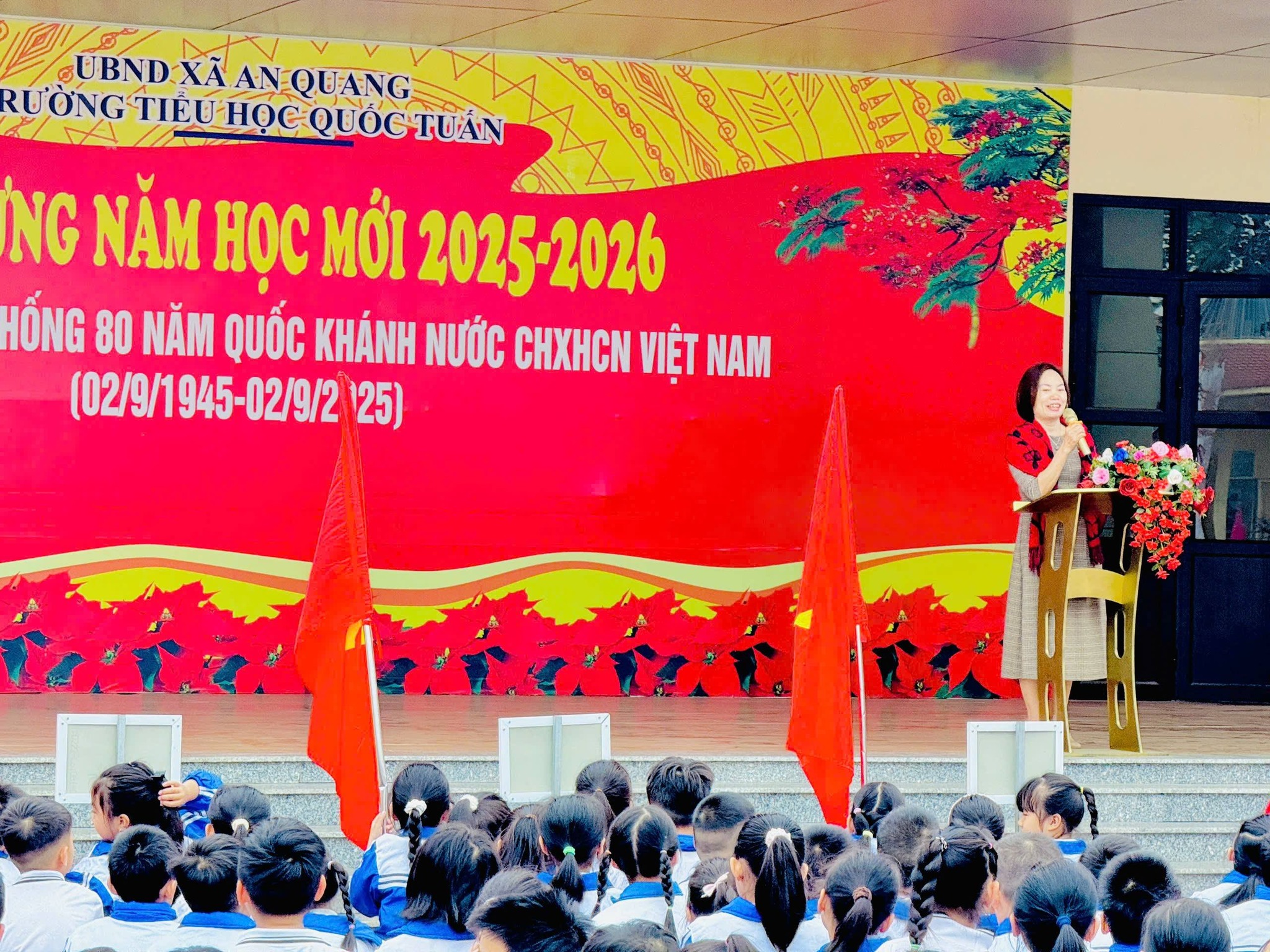 🌷Kết thúc buổi lễ, nhà giáo ưu tú Phạm Thị Thanh An - Bí thư Chi bộ - Hiệu trưởng nhà trường đã có bài phát biểu ngắn gọn, ý nghĩa, biểu dương những nỗ lực của thầy và trò trong thời gian qua, đồng thời gửi gắm nhiều lời động viên, nhắn nhủ các em học sinh tiếp tục chăm ngoan, học giỏi, rèn luyện đạo đức, chấp hành tốt nội quy, quyết tâm hoàn thành xuất sắc nhiệm vụ học tập trong những tháng đầu năm mới.