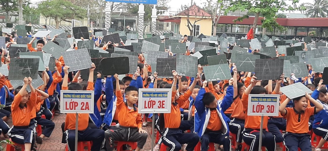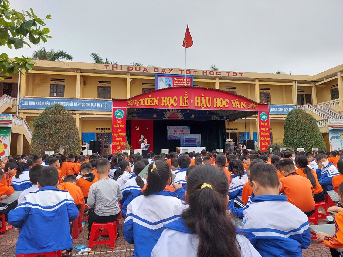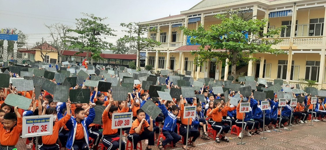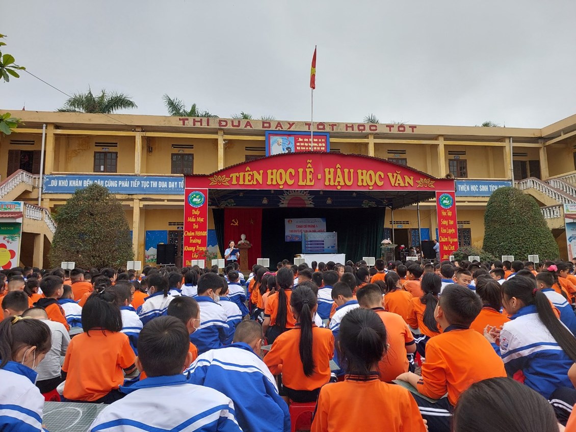 Cô Đặng Thu Hà - Tổng phụ trách đã đánh giá kết quả thực hiện kế hoạch công tác Đội của từng Chi đội và các lớp trong tháng 3 : Các chi đội lớp 4, 5 tham gia viết thư UPU Quốc tế, em Vũ Thảo Nguyên đạt giải nhì trong hội thi Sơn ca cấp huyện, các lớp thực hiện tốt nề nếp, giữ vệ sinh trường lớp. Sau phần tổng kết thứ tự của các lớp, cô Đặng Thu Hà tổ chức chương trình "Tuyên truyền về tác hại của thuốc lá điện tử" được thực hiện dưới hình thức "Rung chuông vàng". Bộ 10 câu hỏi ngắn gọn, dễ hiểu do cô Tổng phụ trách và các thầy cô trong Đoàn thanh niên nhà trường biên soạn. Từ khối 1 đến khối 5, tất cả các học sinh đều tham gia bằng cách viết câu trả lời vào bảng con. Kết thúc 10 câu hỏi, bạn nhỏ nào cũng hiểu thuốc lá điện tử vô cùng nguy hại với học sinh và có những biện pháp bảo vệ bản thân để không bị sa đà vào tệ nạn ấy. Phát biểu sau phần thi "Rung chuông vàng", cô Nguyễn Thị Thanh Trà - Bí thư chi bộ- Hiệu trưởng nhà trường- một lần nữa nhấn mạnh lại sự nguy hiểm của thuốc lá điện tử . Cô cũng hi vọng mỗi học sinh nhà trường sẽ là một tuyên truyền viên nhỏ tuổi để lan tỏa ý nghĩa của phần thi "Rung chuông vàng" ngày hôm nay tới tất cả mọi người.