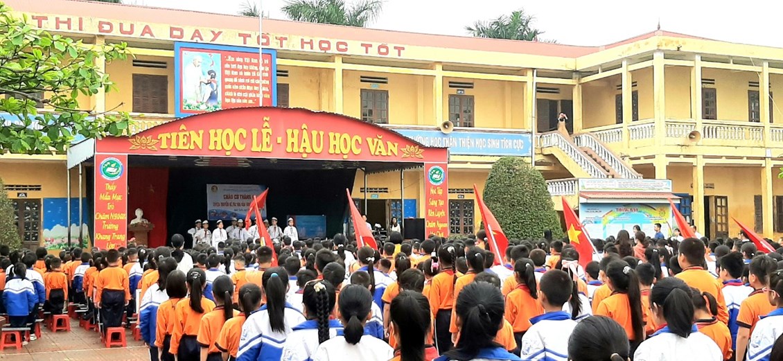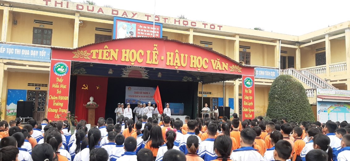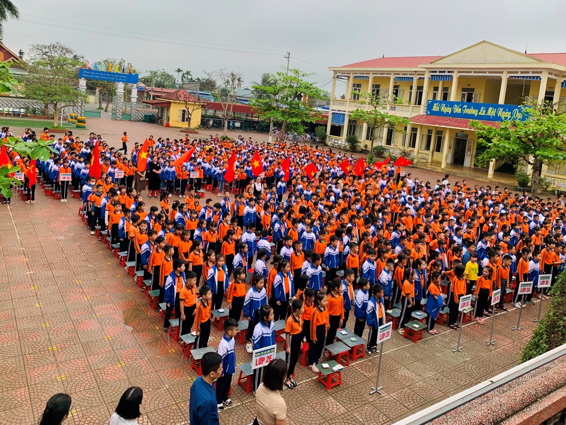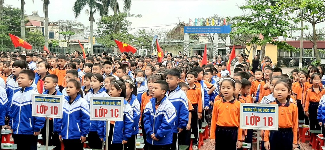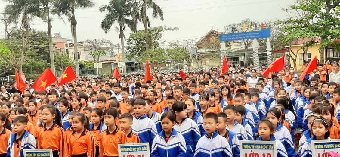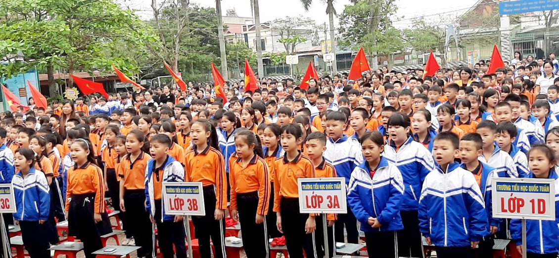 Lễ chào cờ tháng 4 của trường Tiểu học Quốc Tuấn được tổ chức long trọng vào sáng ngày 3/4/2023 với sự tham dự đông đủ của các thầy cô giáo và các bạn học sinh toàn trường.