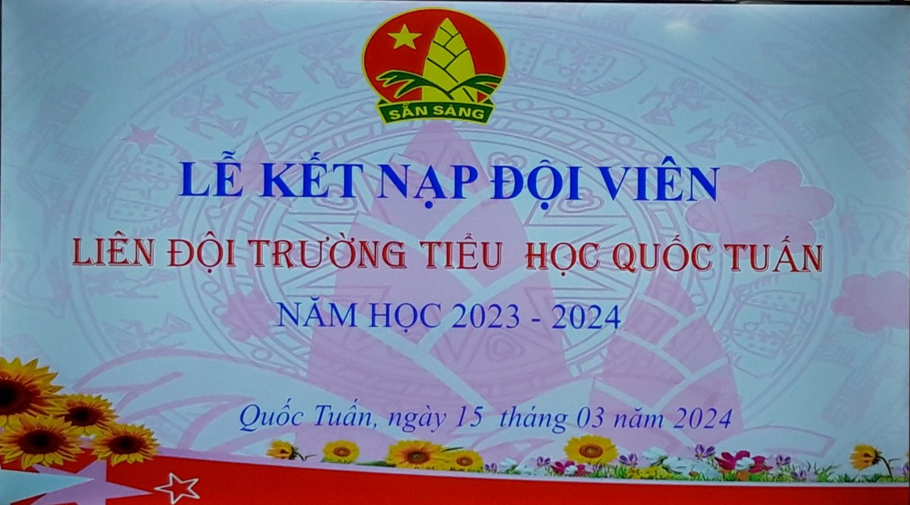 Thực hiện kế hoạch công tác đội và phong trào thiếu nhi năm học 2023 2024. Thiết thực thi đua lập thành tích chào mừng 93 năm ngày thành lập Đoàn Thanh Niên cộng sản Hồ Chí Minh, 83 năm thành lập đội thiếu niên tiền phong Hồ Chí Minh, chào mừng kỷ niệm 70 năm chiến thắng Lịch Sử Điện Biên Phủ (7/571954 - 7/5/2024), kỷ niệm 75 chiến thắng Cát Bi (7/3/1954 - 7/3/2024). Được sự nhất trí của ban giám hiệu nhà trường, ngày 15 tháng 3 năm 2024 Liên đội trường Tiểu học Quốc Tuấn tổ chức LỄ KẾT NẠP ĐỘI VIÊN. Năm học 2023 - 2024.