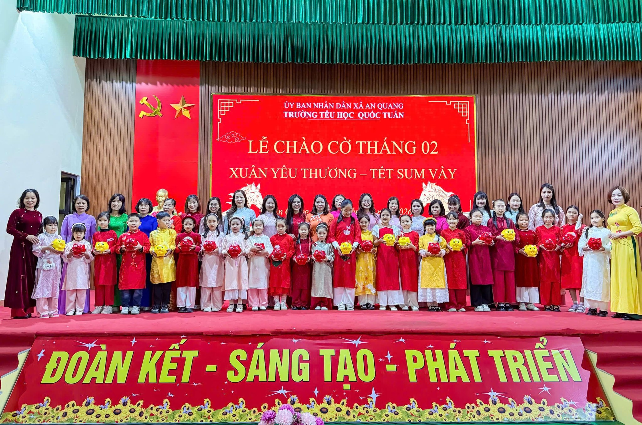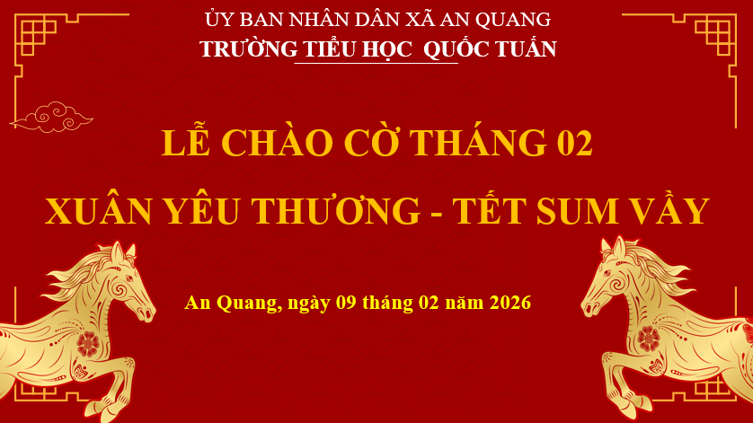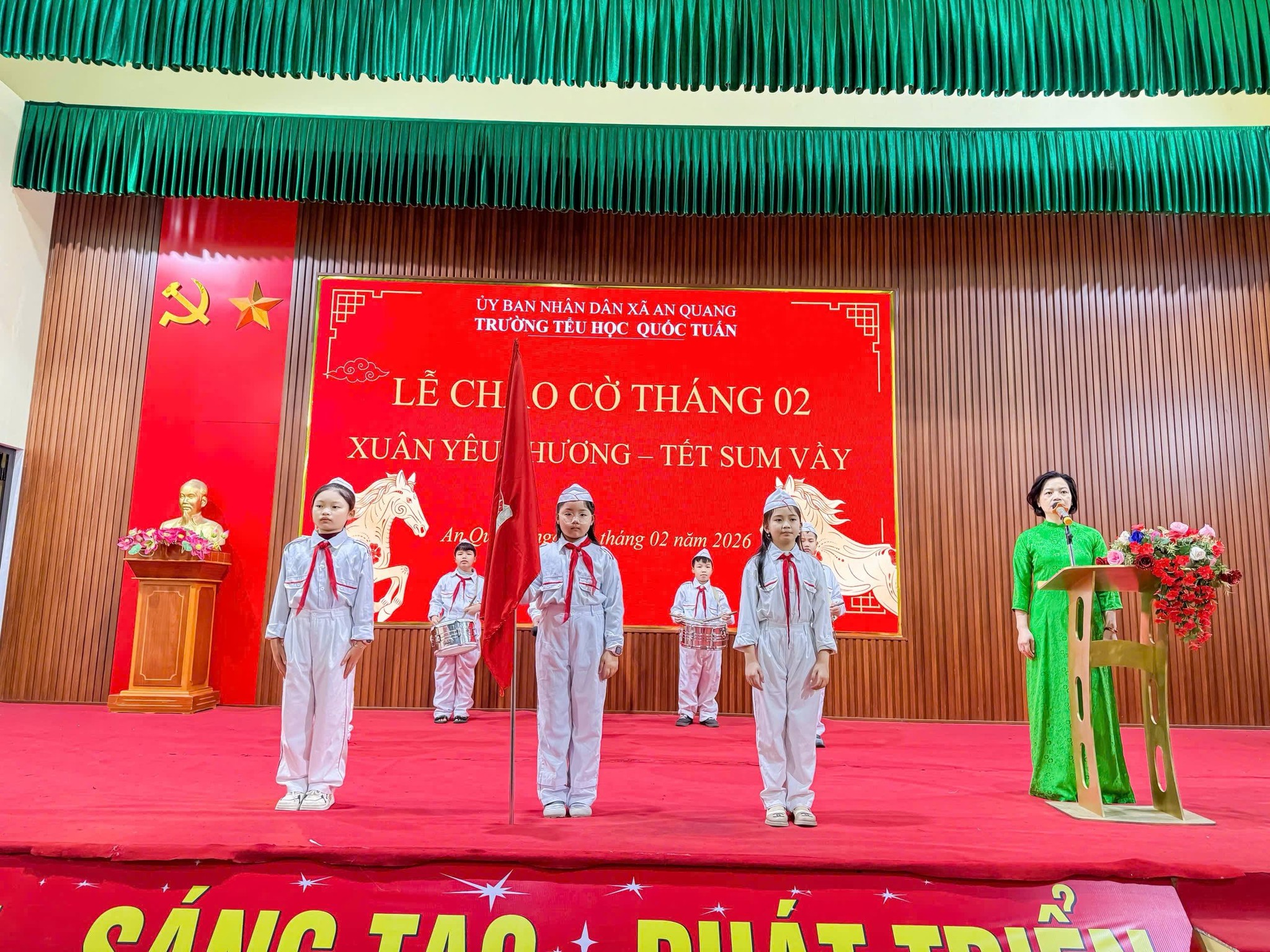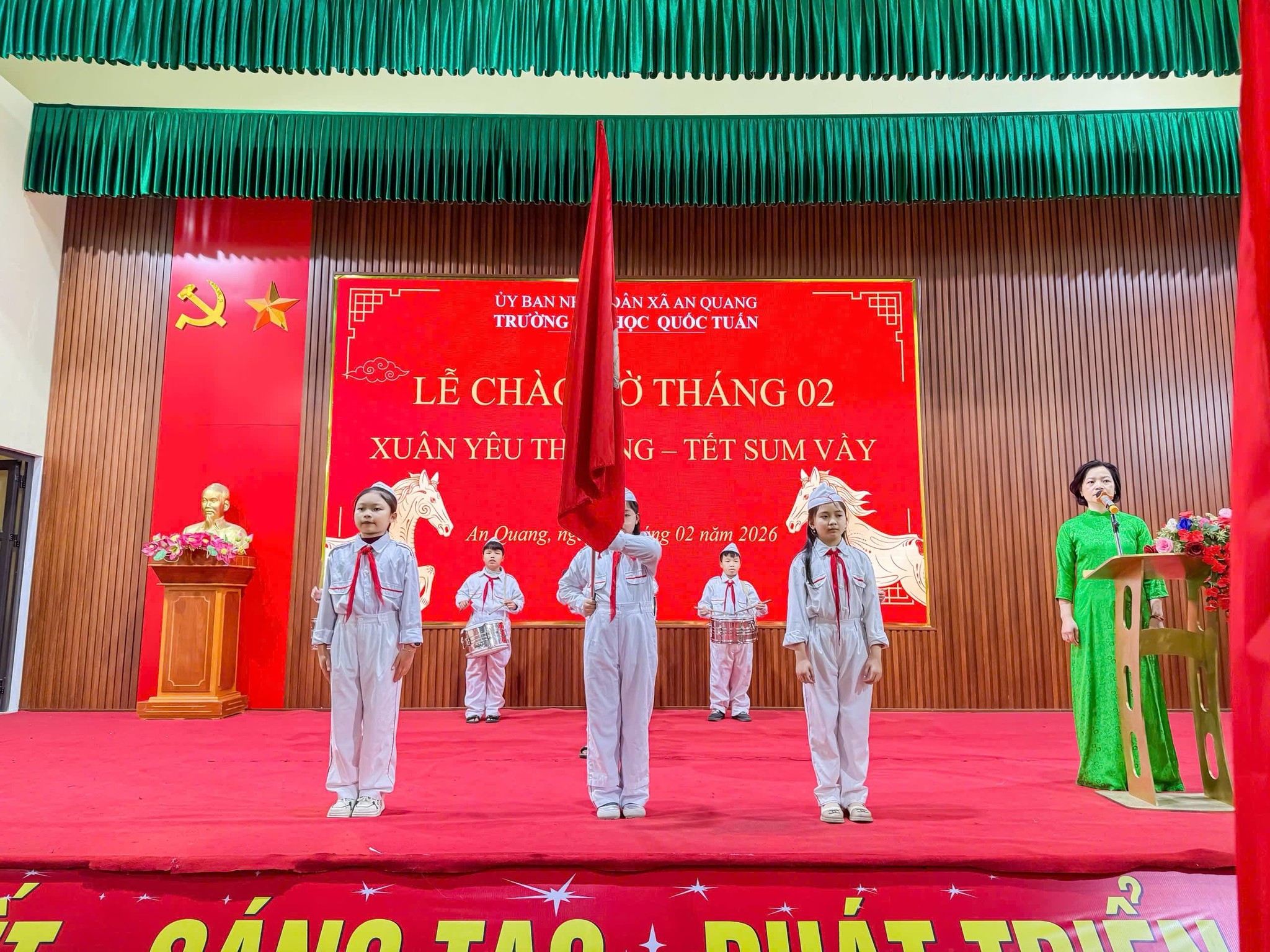 🌷Sáng 09/02/2026, Liên đội Trường Tiểu học Quốc Tuấn long trọng tổ chức sinh hoạt dưới cờ tháng 02 với chủ đề “Xuân yêu thương - Tết sum vầy” trong không khí rộn ràng, ấm áp của những ngày giáp Tết Nguyên đán.