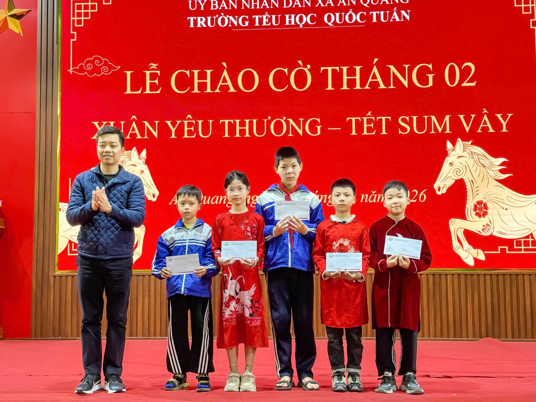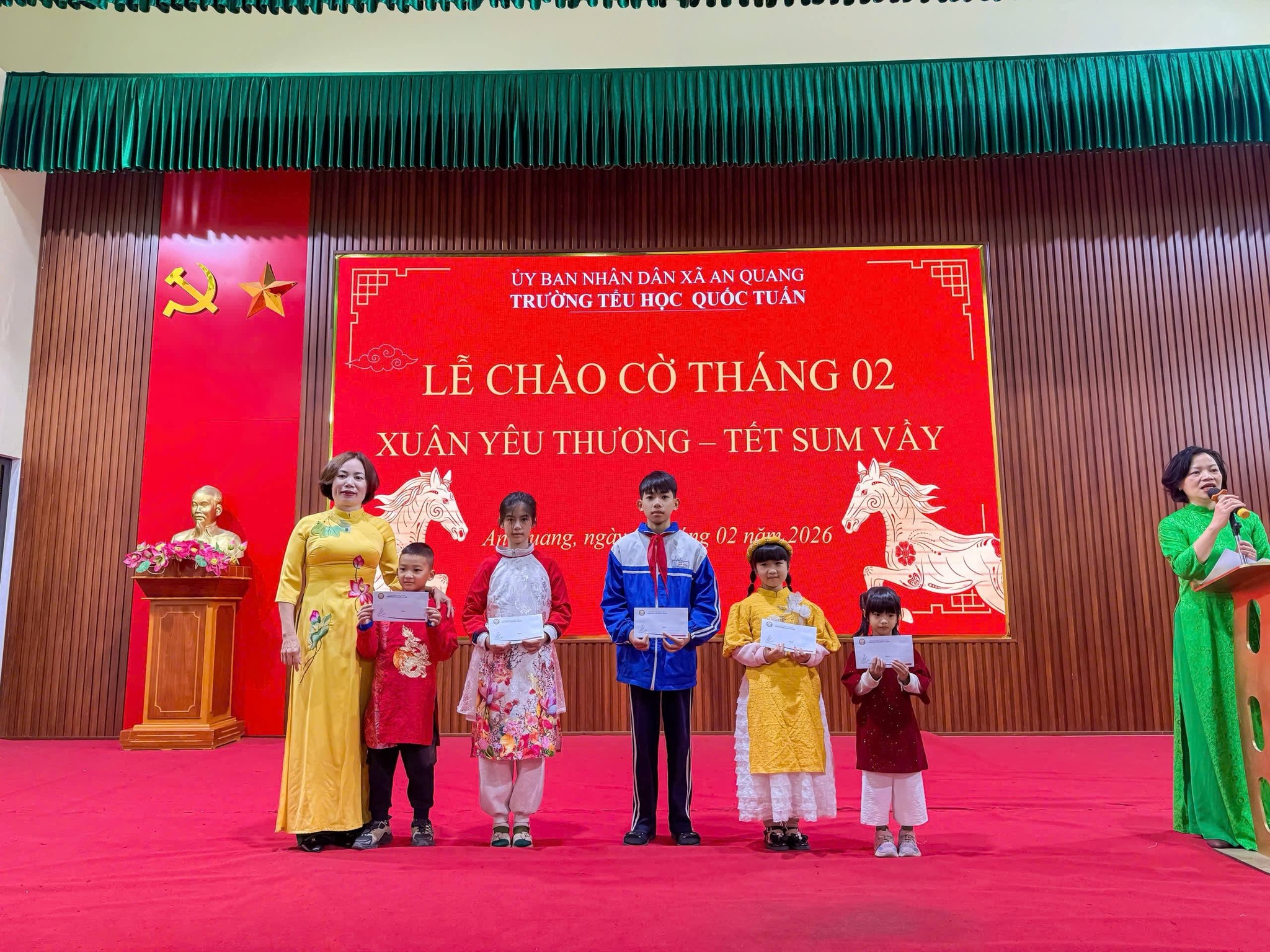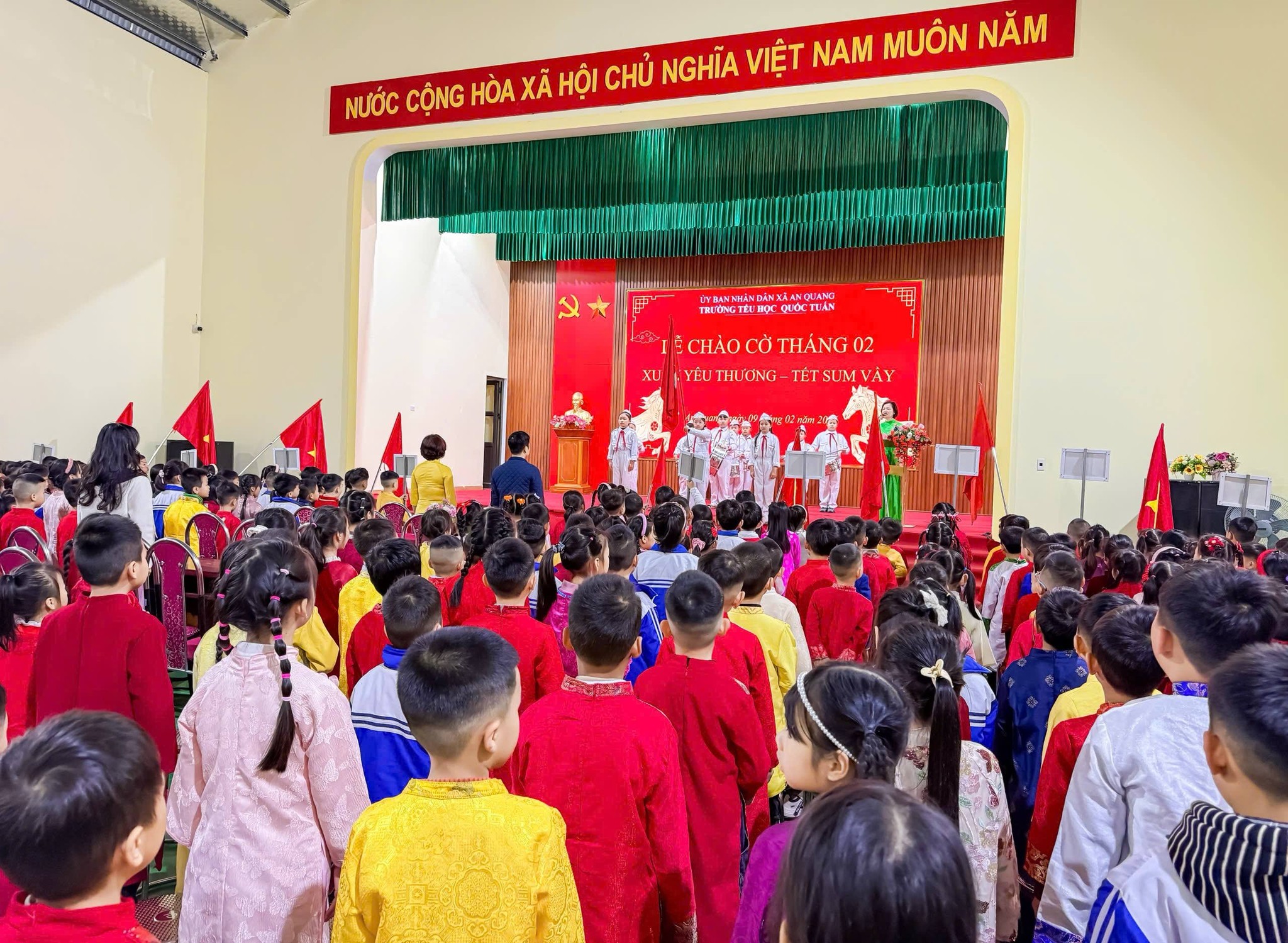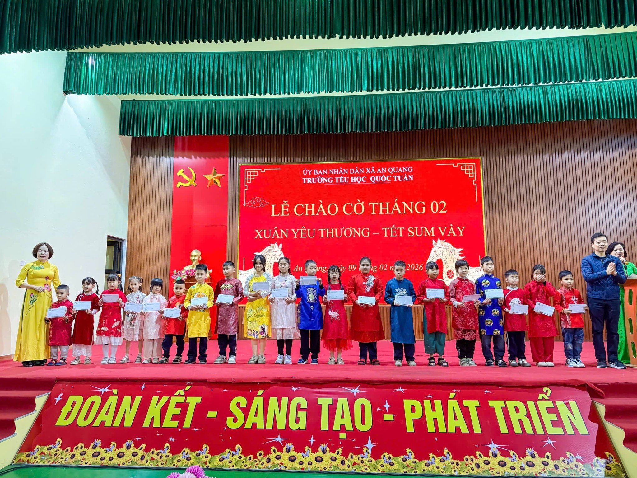 🌷Sáng 09/02/2026, Liên đội Trường Tiểu học Quốc Tuấn long trọng tổ chức sinh hoạt dưới cờ tháng 02 với chủ đề “Xuân yêu thương - Tết sum vầy” trong không khí rộn ràng, ấm áp của những ngày giáp Tết Nguyên đán.