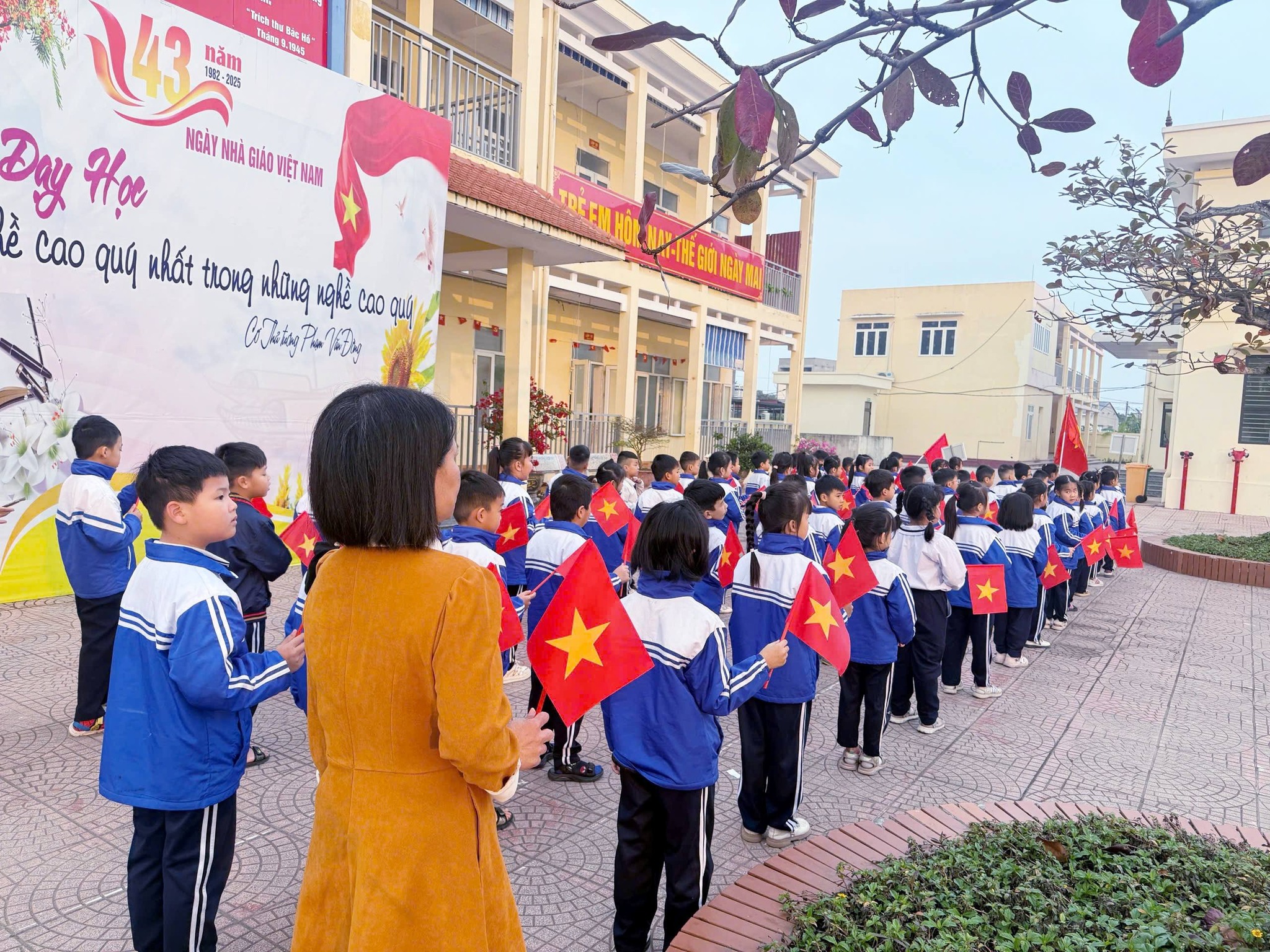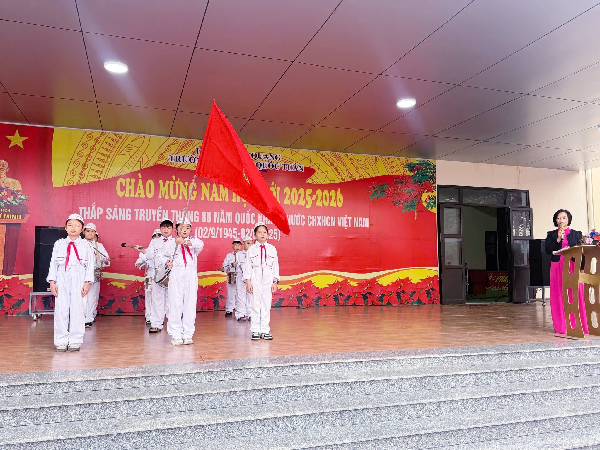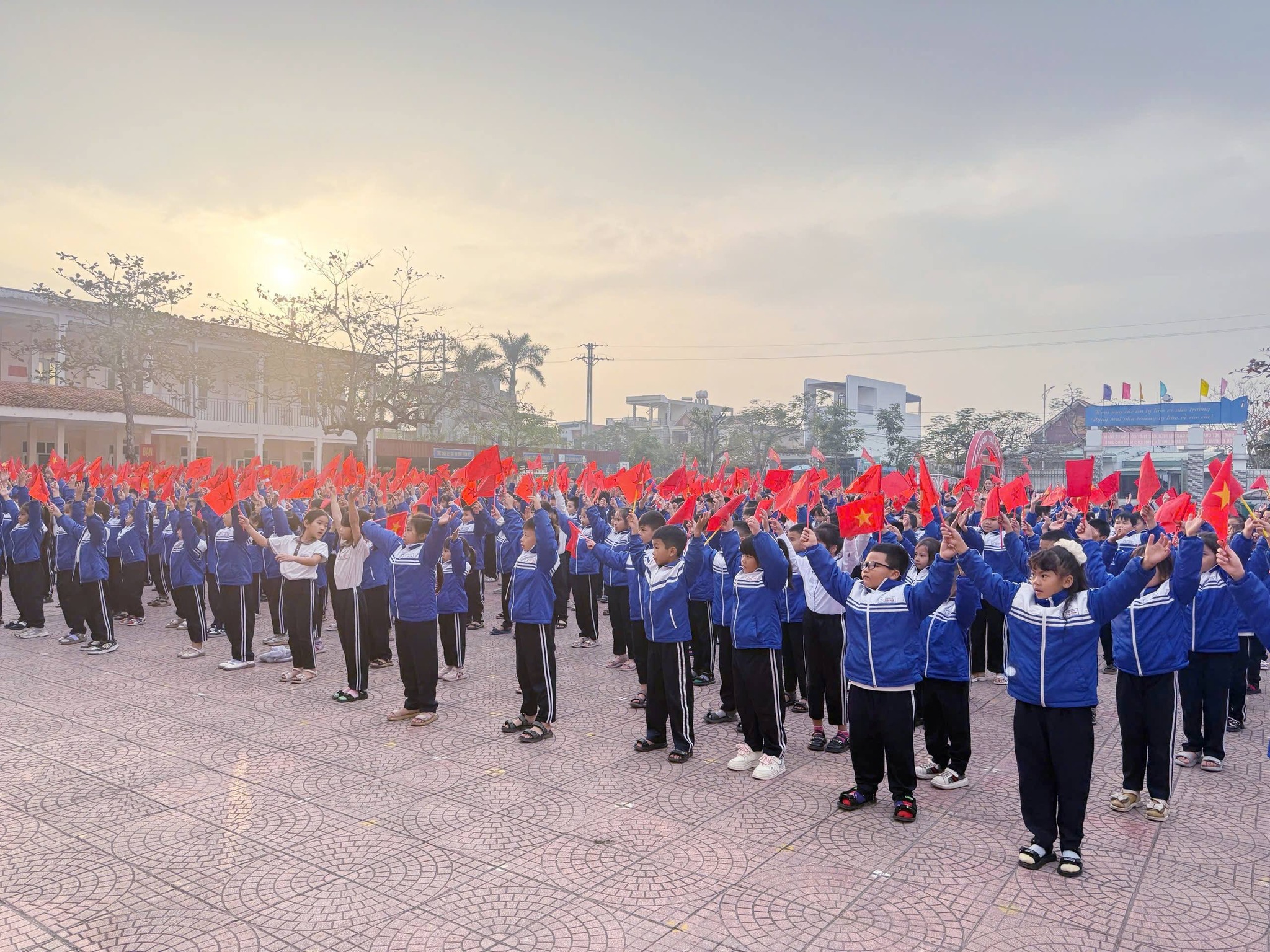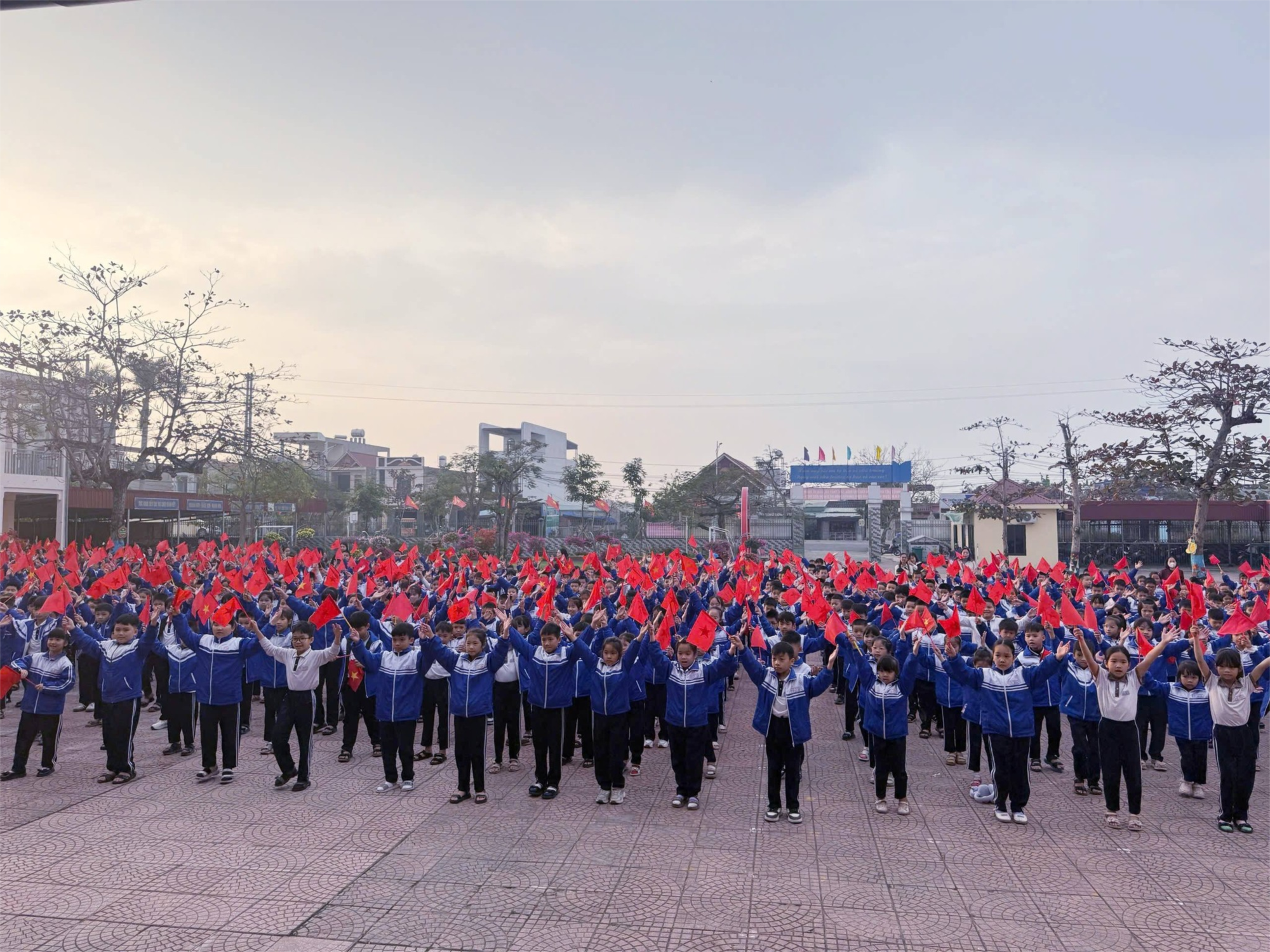 /-flag Sáng 19/1/2026 trong không khí trang nghiêm của buổi lễ chào cờ đầu tuần, Liên đội Trường Tiểu học Quốc Tuấn long trọng tổ chức các hoạt động tuyên truyền, thi đua sôi nổi chào mừng Đại hội Đảng toàn quốc - sự kiện chính trị trọng đại của đất nước, đánh dấu những bước phát triển mới của dân tộc Việt Nam.