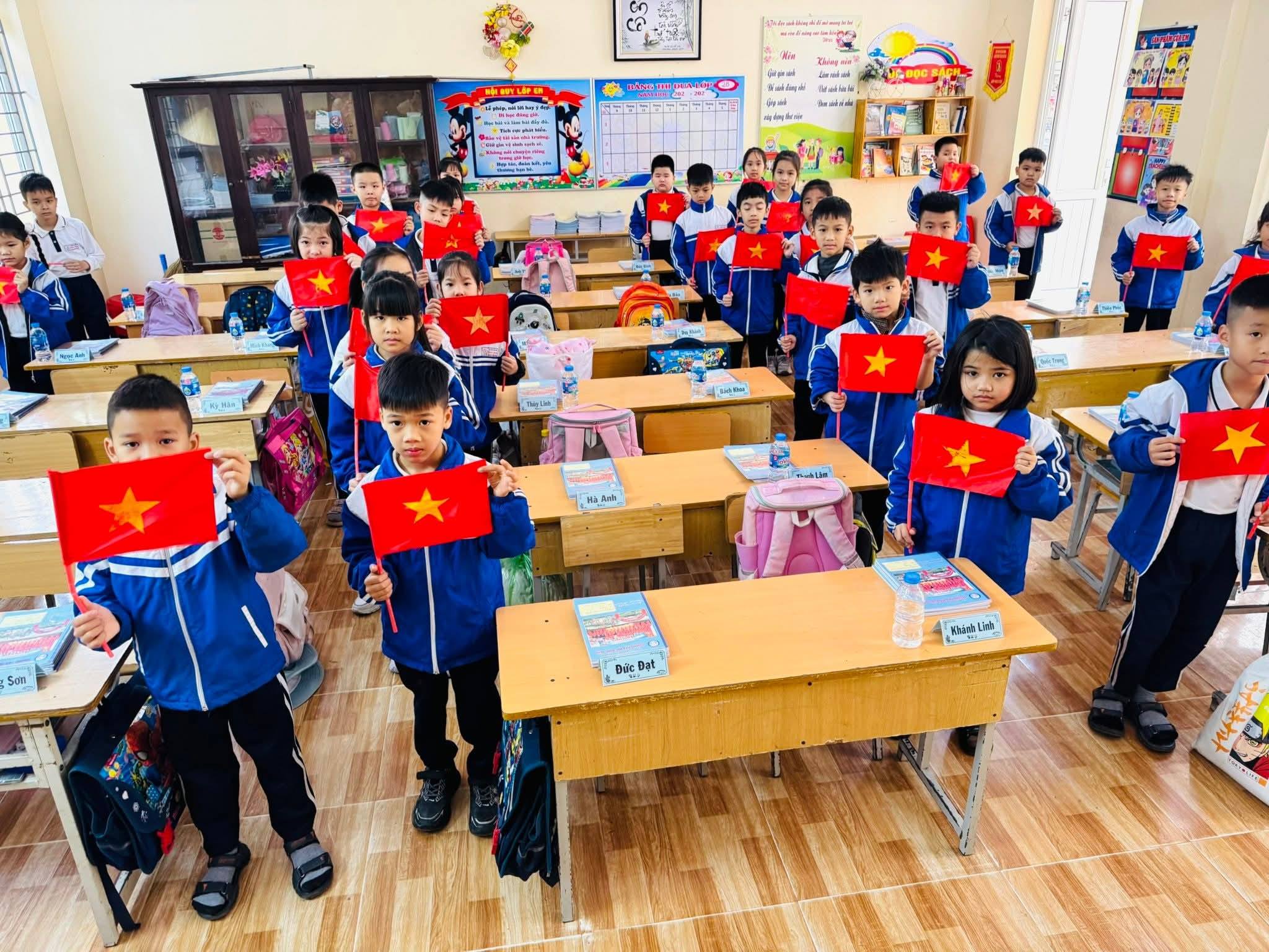 /-flag /-flag /-flag Hòa chung niềm vui ấy, Liên đội tổ chức cho thiếu nhi múa hát sân trường với giai điệu trong sáng, vui tươi của bài hát “Vươn vai Việt Nam”, thể hiện tình yêu quê hương, đất nước, niềm tin yêu với Đảng, với Bác Hồ kính yêu. Những điệu múa, lời ca không chỉ mang đến không khí rộn ràng, phấn khởi mà còn là lời chúc mừng tốt đẹp nhất của thiếu nhi Liên đội Trường Tiểu học Quốc Tuấn gửi tới Đại hội Đảng toàn quốc thành công tốt đẹp.