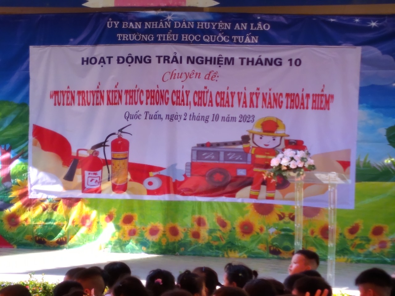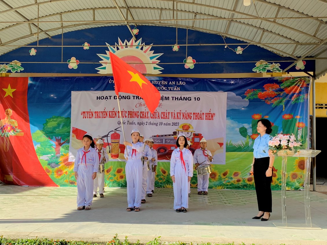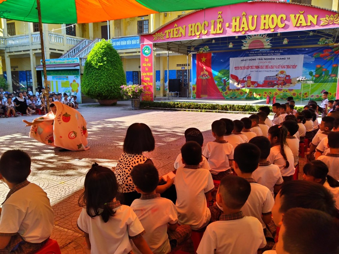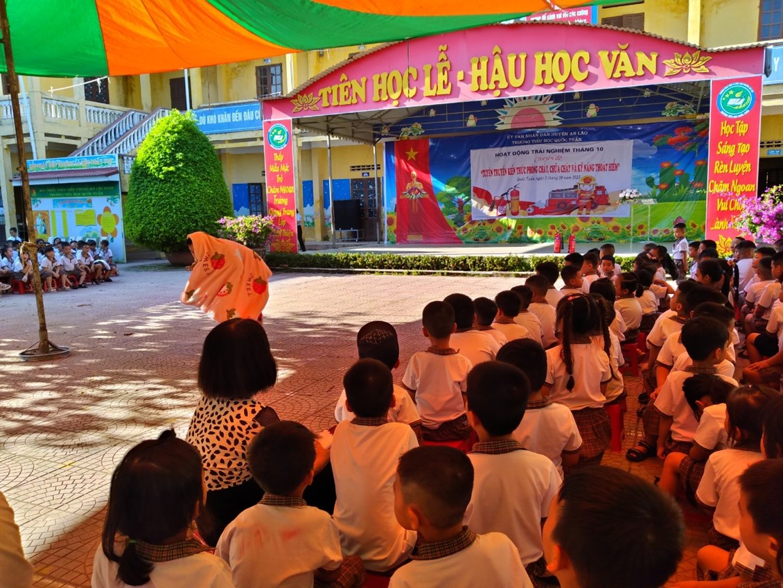 Thực hiện Chỉ đạo của UBND huyện An Lão ; phòng GD ĐT An Lão về tăng cường công tác Phòng cháy chữa cháy, chiều ngày 2/10/2023, trường TH Quốc đã tổ chức Hoạt động trải nghiệm: Tuyên truyền kiến thức phòng cháy chữa cháy và kỹ năng thoát hiểm cho học sinh.