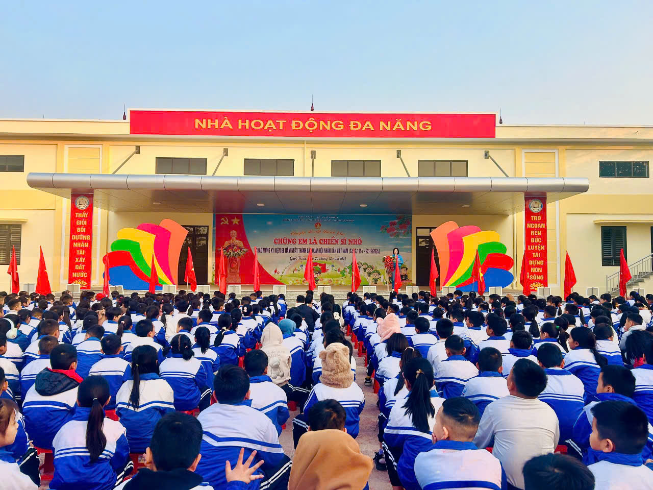 🌟 🌟 🌟 Sáng ngày 06/1/2025, Liên đội trường Tiểu học Quốc Tuấn long trọng tổ chức sinh hoạt dưới cờ tháng 1. Tại buổi lễ, Liên đội biểu dương các thành tích đã đạt được của thiếu niên, nhi đồng trong các hoạt động phong trào, đồng thời triển khai một số nhiệm vụ trọng tâm của tháng. Tham dự buổi sinh hoạt dưới cờ có NGƯT Phạm Thị Thanh An - Bí thư chi bộ - Hiệu trưởng nhà trường; thầy Đỗ Văn Trọng - Phó bí thư chi bộ - Phó Hiệu trưởng nhà trường và toàn thể giáo viên, học sinh nhà trường .