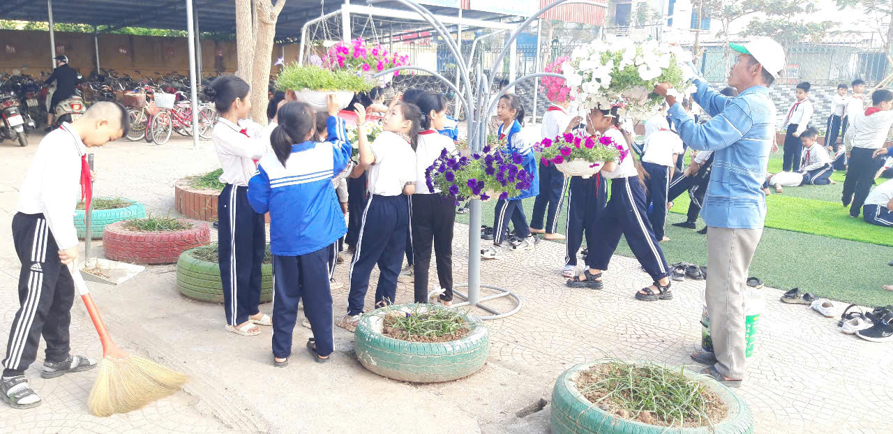 Hướng đến việc tạo dựng không gian xanh tươi, góp phần làm đẹp cảnh quan trường học, Liên đội đã triển khai công trình măng non “Vườn hoa em chăm” đến từng Chi đội và lớp nhi đồng. Mỗi ngày, các em học sinh cùng nhau chăm sóc bồn hoa, cây cảnh quanh lớp học và sân trường bằng những việc làm nhỏ nhưng đầy ý nghĩa như tưới nước, nhặt lá khô, bắt sâu… phù hợp với khả năng của mình.