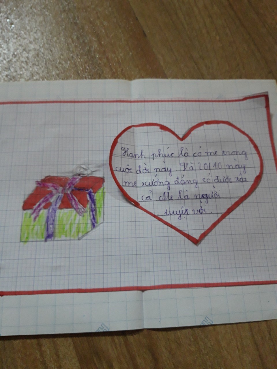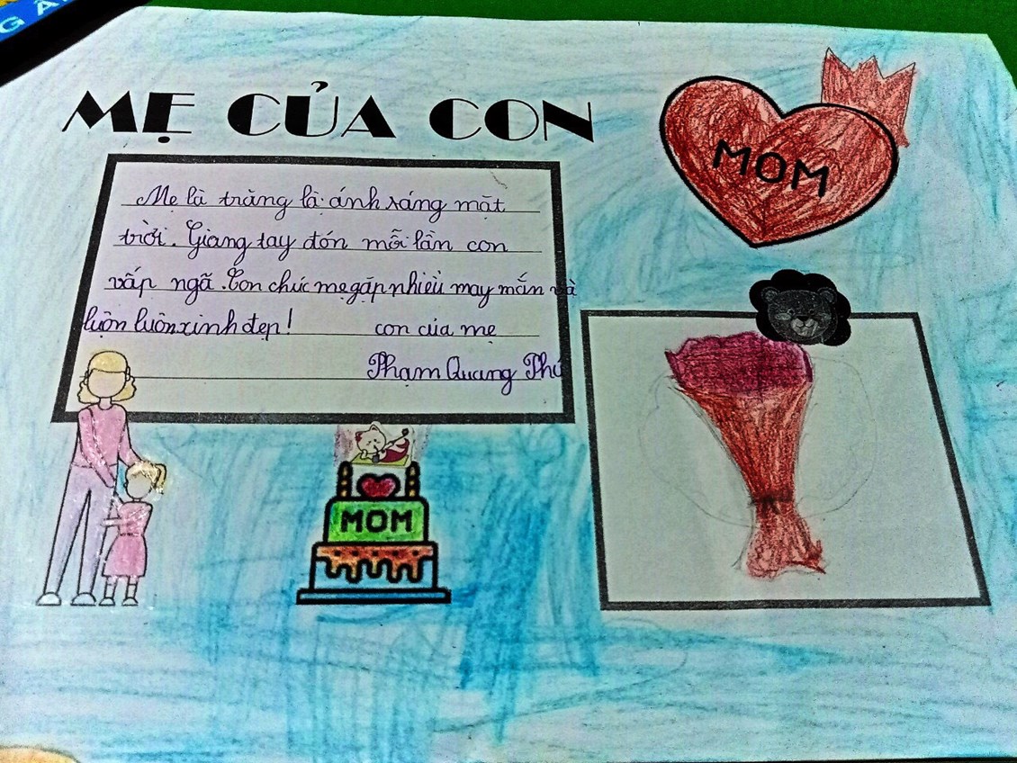 Trong mỗi tấm bưu thiếp tự tay các em làm chứa đựng những lời chúc hay những bài thơ bài hát thể hiện tình cảm tri ân dành tặng Bà, Mẹ.
