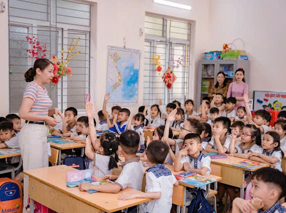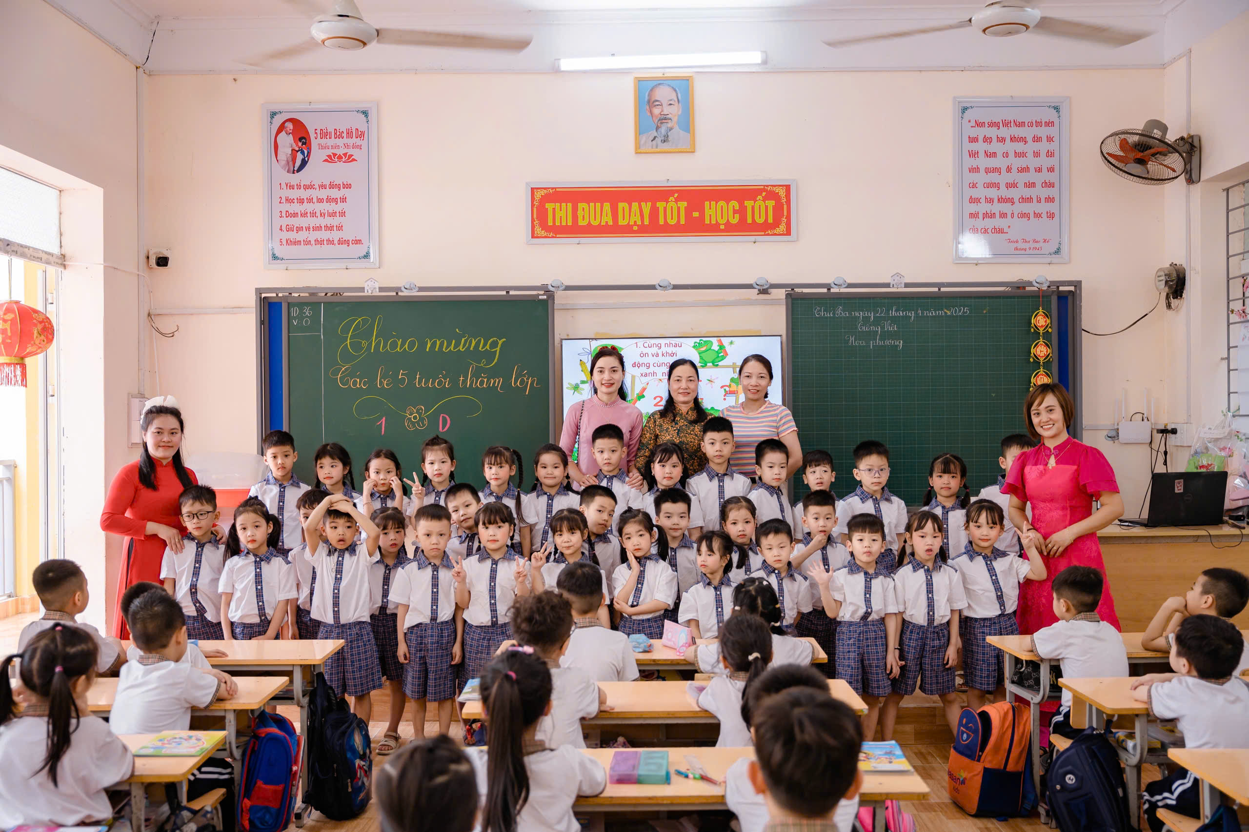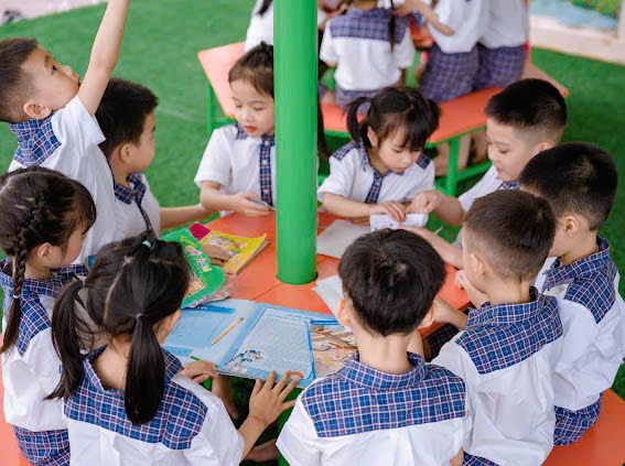 ☘ Đặc biệt, các bé được làm quen và trải nghiệm cùng các anh chị lớp 1 trong một buổi giao lưu thật thân thiện và dễ thương. Các em nhỏ được cô chủ nhiệm giới thiệu không gian lớp học, làm quen với những đồ dùng học tập như bảng đen, sách vở, bút chì... Cả cô và trò cùng nhau tạo nên những khoảnh khắc đáng nhớ, để lại nhiều ấn tượng tốt đẹp trong lòng các bé.
