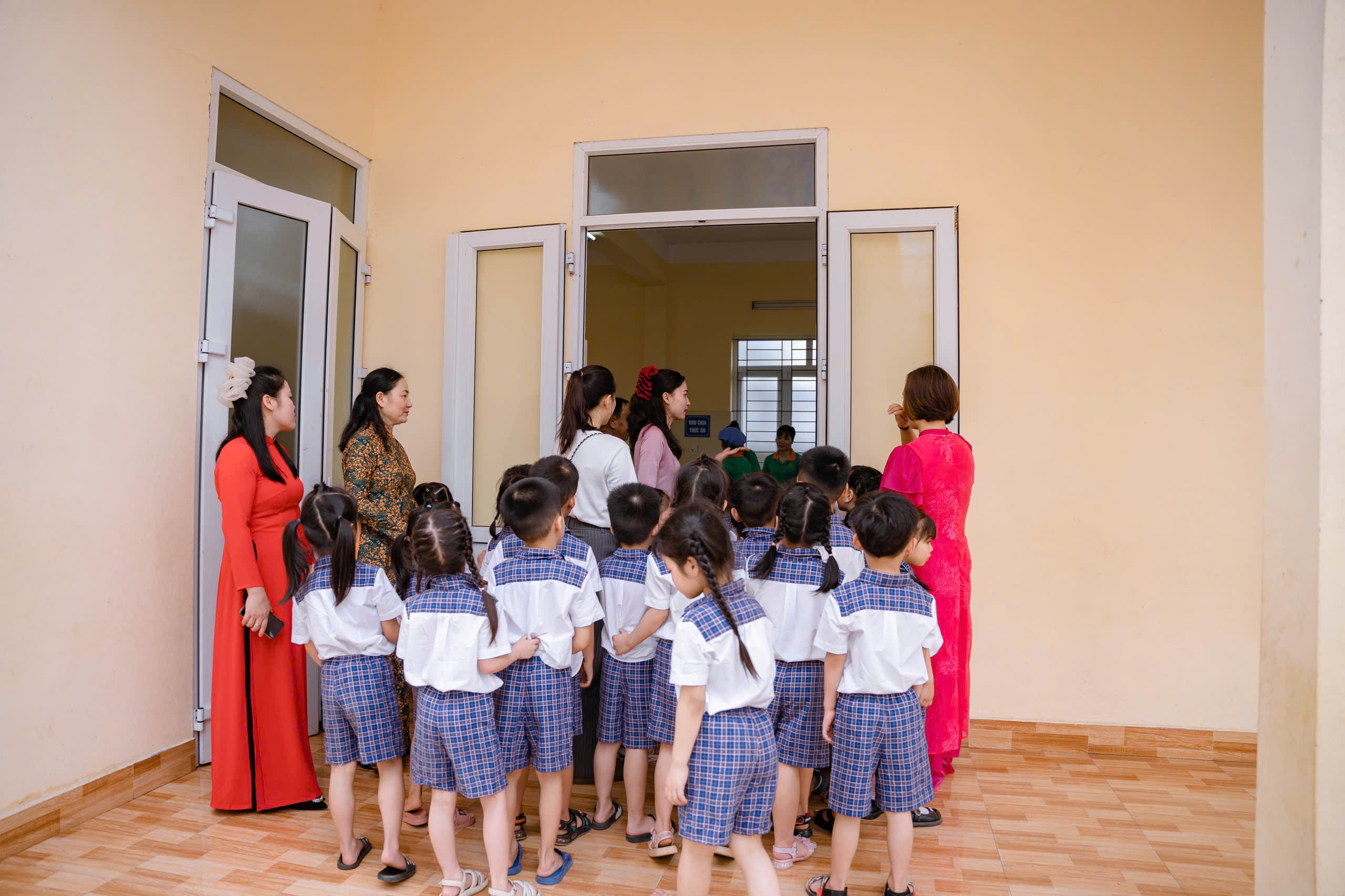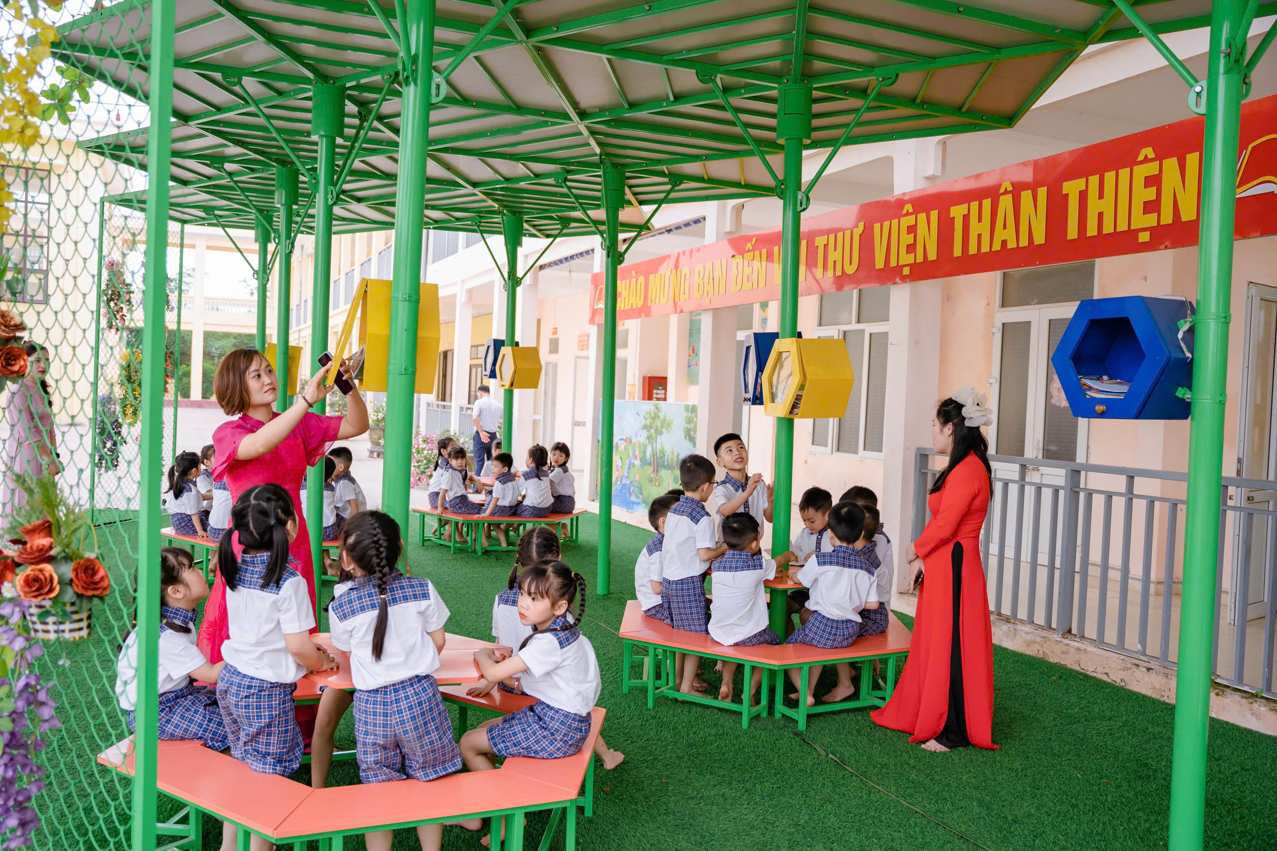 ☘ Ngay từ những bước chân đầu tiên vào khuôn viên trường, ánh mắt các bé ánh lên sự thích thú và tò mò. Dưới sự hướng dẫn tận tình của các thầy cô giáo, các bé được ghé thăm khuôn viên nhà trường: từ dãy phòng học khang trang, khu vui chơi ngoài trời sôi động đến khu thư viện xanh – không gian học tập mở đầy sáng tạo và gần gũi thiên nhiên. Tại nhà ăn bán trú, các bé được giới thiệu về quy trình ăn uống, nghỉ ngơi ngăn nắp, khoa học của các anh chị học sinh tiểu học.