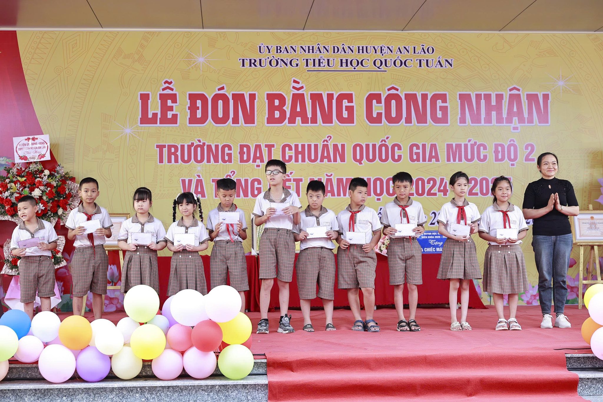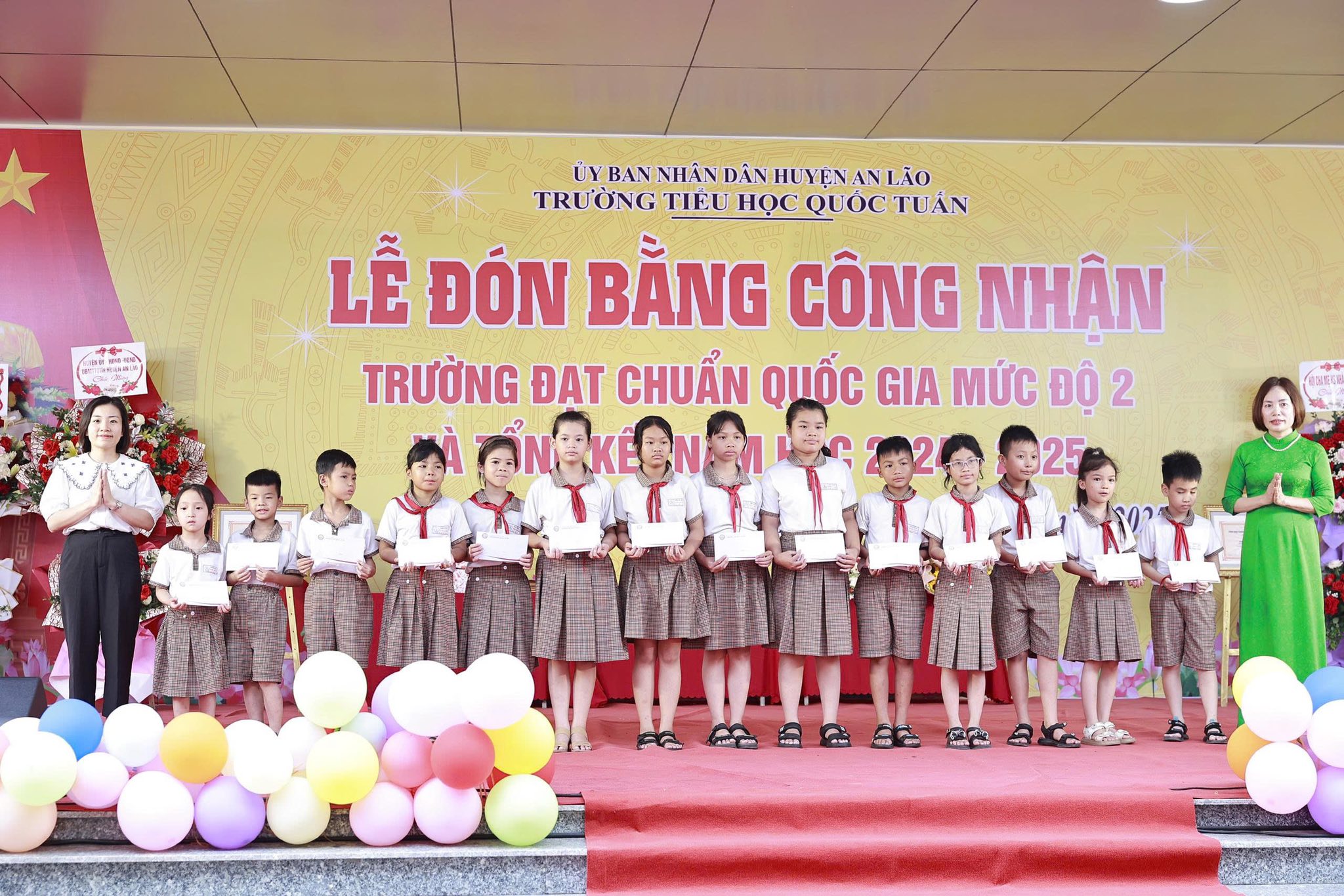 🌻 Cũng trong lễ đón nhận trường chuẩn Quốc gia mức độ 2, nhà trường đã tổng kết trao thưởng cho các em học sinh và các thầy cô giáo có nhiều thành tích xuất sắc trong năm học vừa qua để động viên khích lệ thầy và trò nhà trường tiếp tục phấn đấu nỗ lực hơn nữa để tiếp tục gặt hái nhiều thành công.