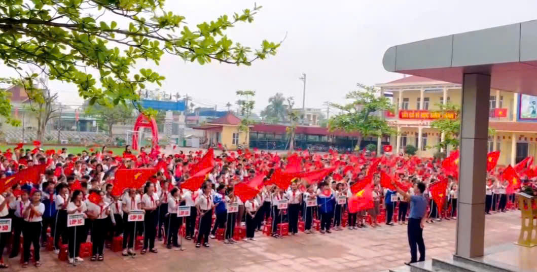 🇻🇳 Trong Lễ chào cờ đầu tuần, chương trình “Sắc đỏ tháng Tư” diễn ra trang trọng. Học sinh đồng loạt giương cao cờ Tổ quốc, hát vang Quốc ca, thể hiện tình yêu quê hương, tự hào dân tộc. Khí thế thiêng liêng ấy tiếp nối mạch nguồn lịch sử, chào mừng 70 năm Giải phóng Hải Phòng và mùa Hoa Phượng Đỏ bừng sáng.