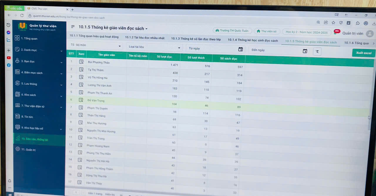 🌸 Trong bối cảnh chuyển đổi số giáo dục, thư viện số viện số giữ vai trò then chốt trong việc nâng cao chất lượng dạy và học. Không chỉ lưu trữ tài liệu, đây còn là không gian học tập giúp giáo viên và học sinh tiếp cận tri thức nhanh chóng, chính xác. Việc mượn và đọc tài liệu trực tuyến góp phần hình thành thói quen học tập chủ động, thúc đẩy văn hóa đọc và bồi dưỡng năng lực tự học trong toàn trường. 🌸 Để đảm bảo hoạt động của thư viện số diễn ra ổn định, hiệu quả và phù hợp với yêu cầu quản lý, hàng tháng quản trị viên thư viện số triển khai các nhiệm vụ trọng yếu sau: