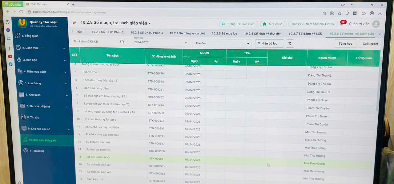 🍀 Thống kê đầy đủ số lượng tài liệu được mượn – trả trên hệ thống, phục vụ công tác báo cáo và điều chỉnh học liệu.