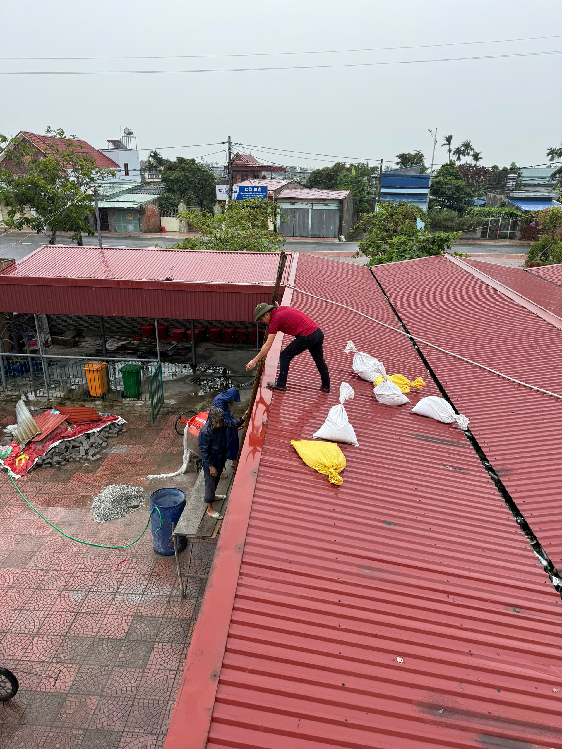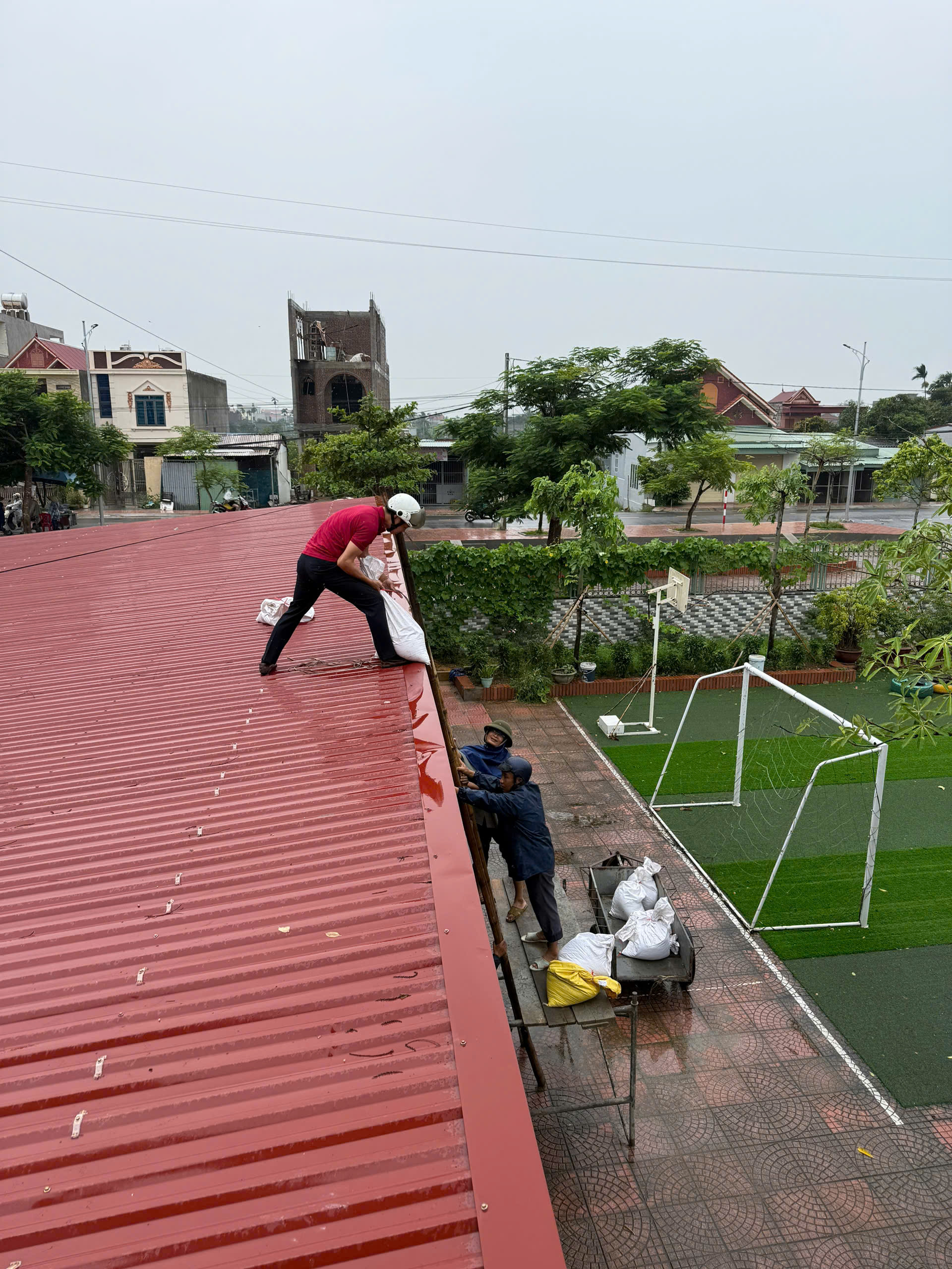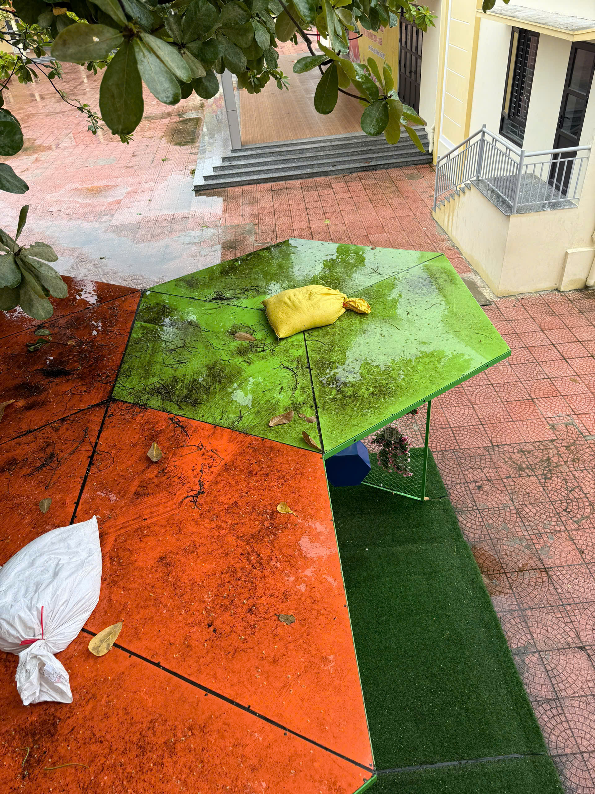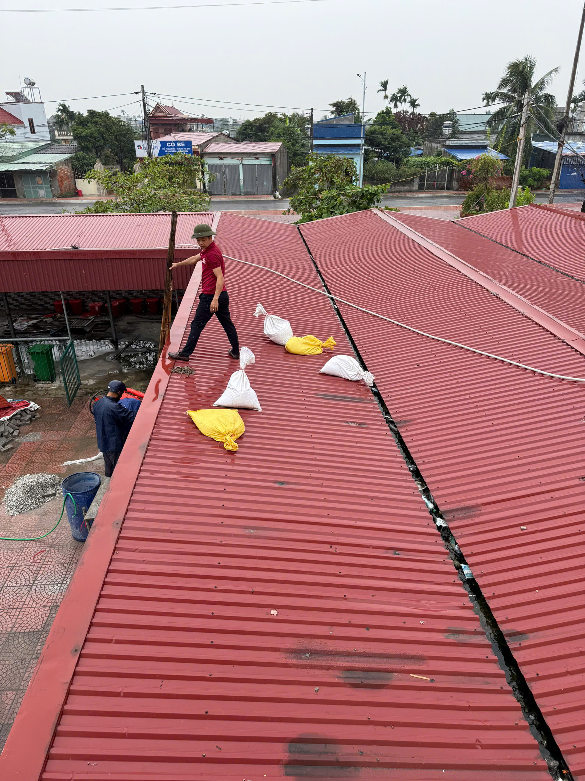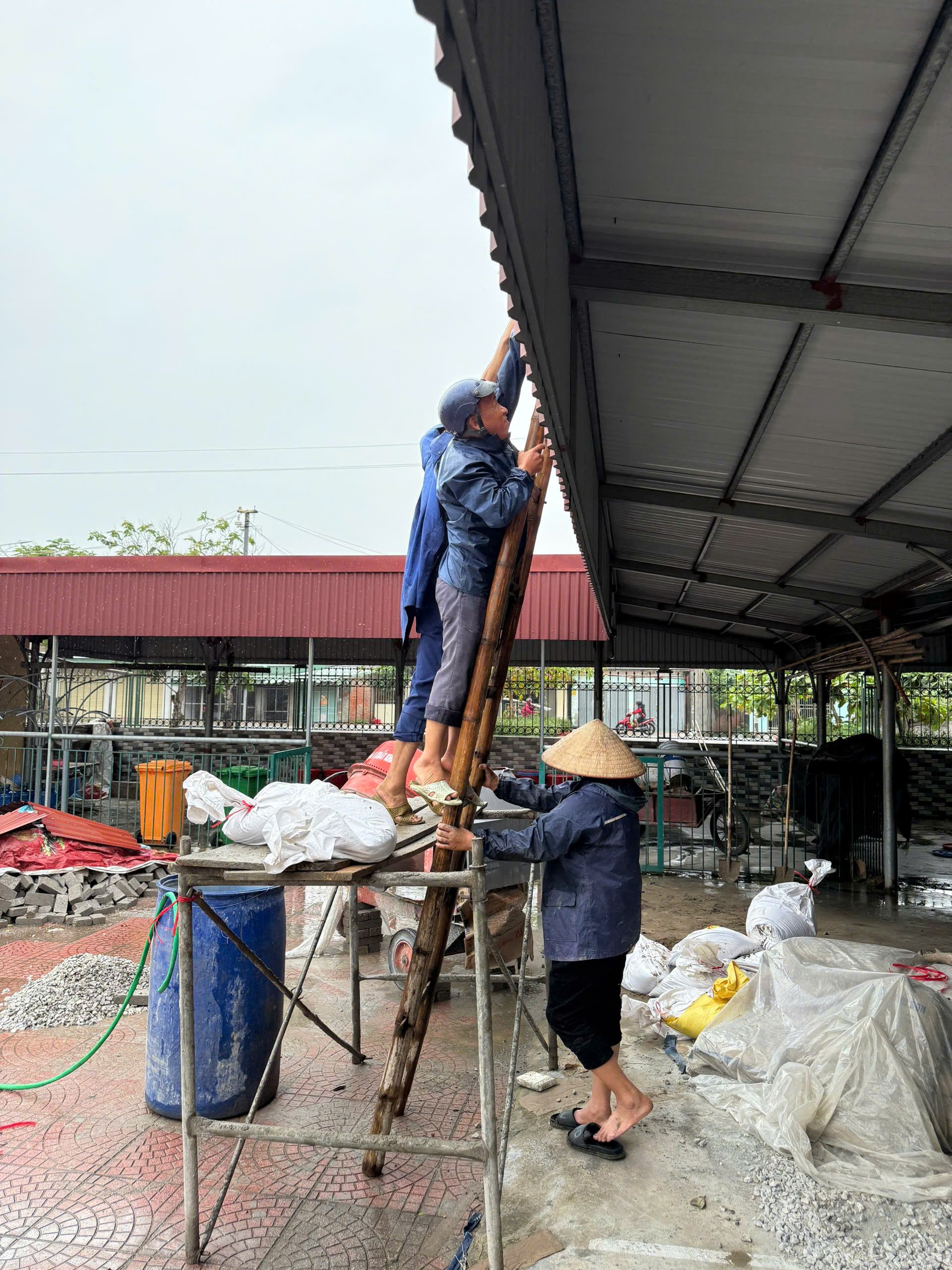☘ Ngay trong buổi sáng cùng ngày, Ban Giám hiệu nhà trường đã chỉ đạo tổ chức rà soát toàn bộ cơ sở vật chất, đặc biệt là các khu vực có nguy cơ mất an toàn như: mái che, bảng hiệu, cửa kính, cây xanh, cột cờ và hệ thống điện. Các giáo viên, nhân viên và lực lượng hỗ trợ đã tích cực gia cố, chằng chống mái tôn, mái che, che chắn cửa sổ, di chuyển vật dụng dễ bị gió cuốn, chặt tỉa cành cây cao, đảm bảo thông thoáng và an toàn khuôn viên trường. Tính đến thời điểm hiện tại, toàn bộ các hạng mục trong khuôn viên nhà trường đã được kiểm tra, gia cố chắc chắn, sẵn sàng ứng phó hiệu quả với mọi tình huống do bão gây ra.