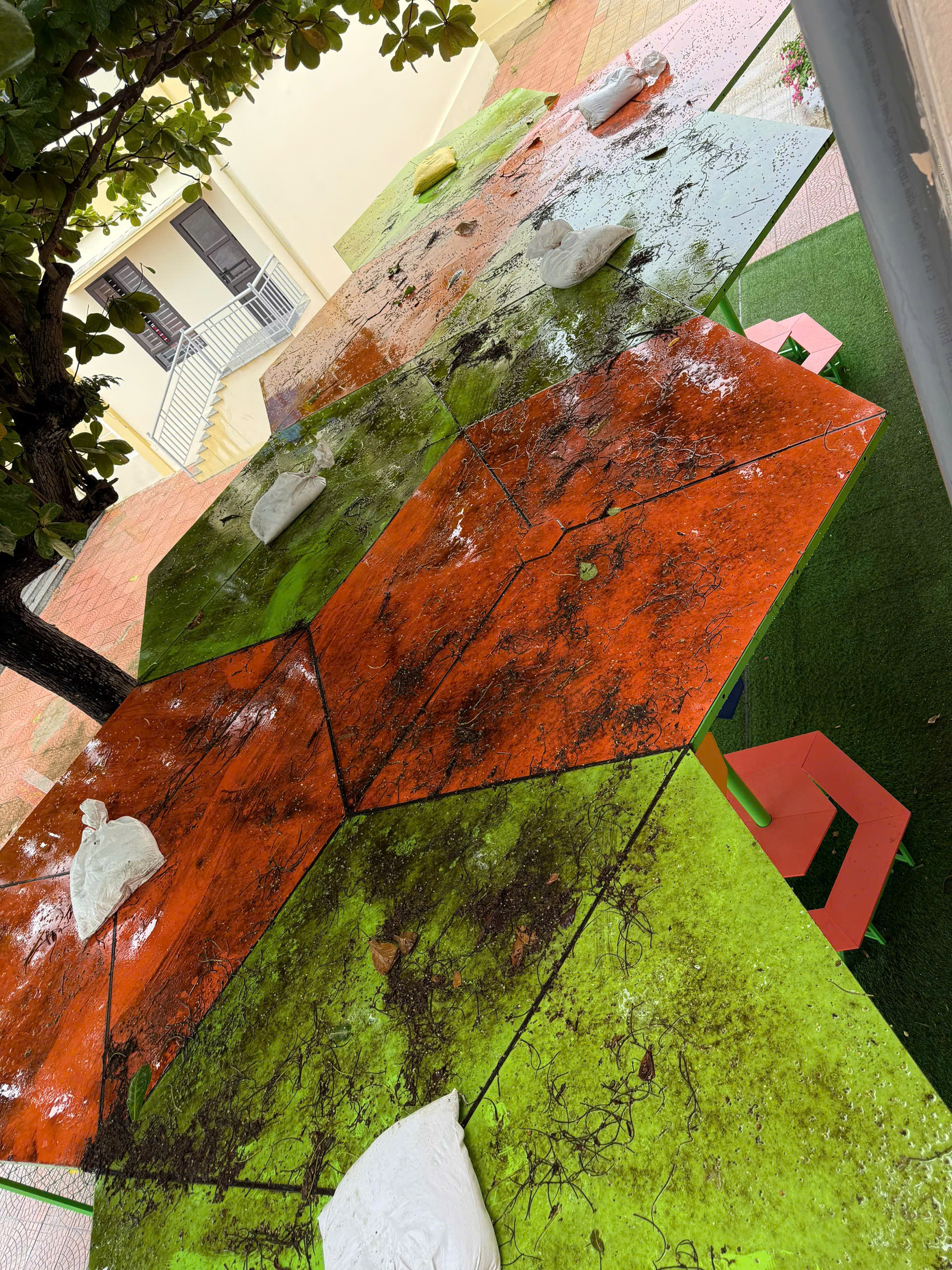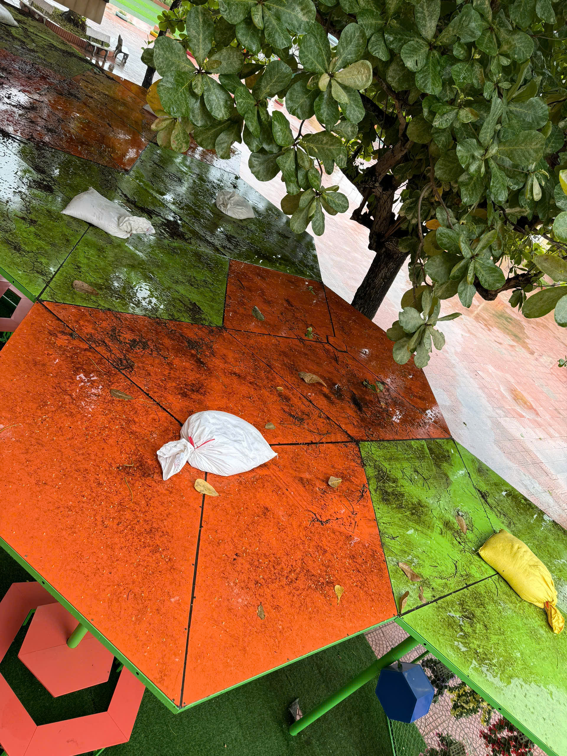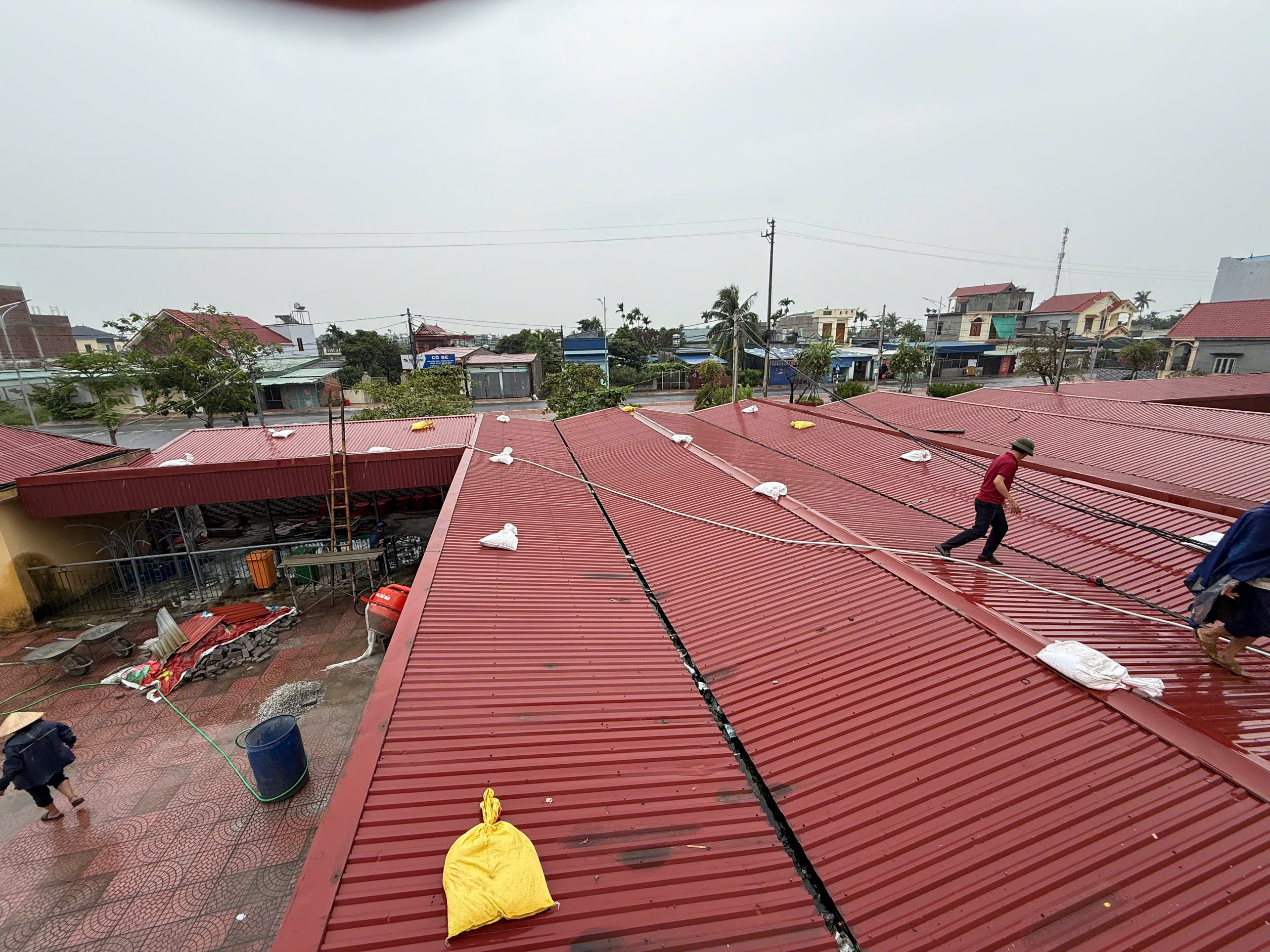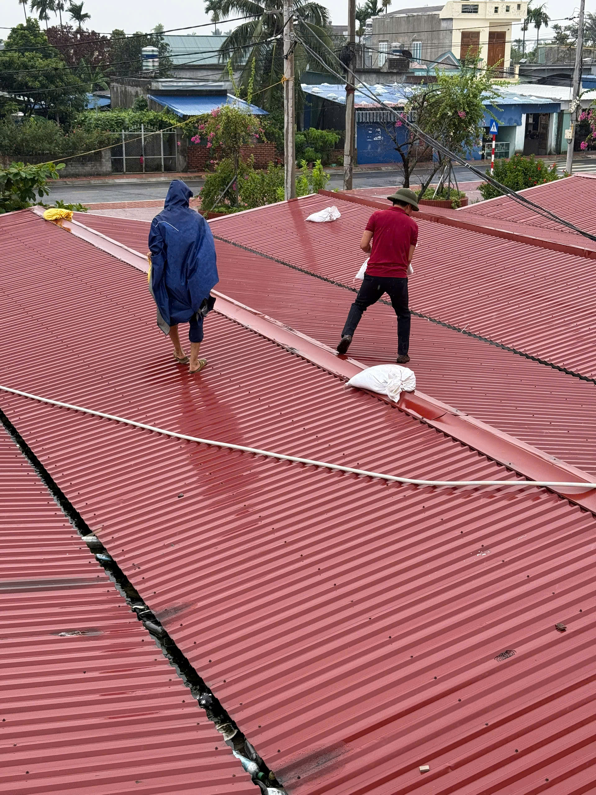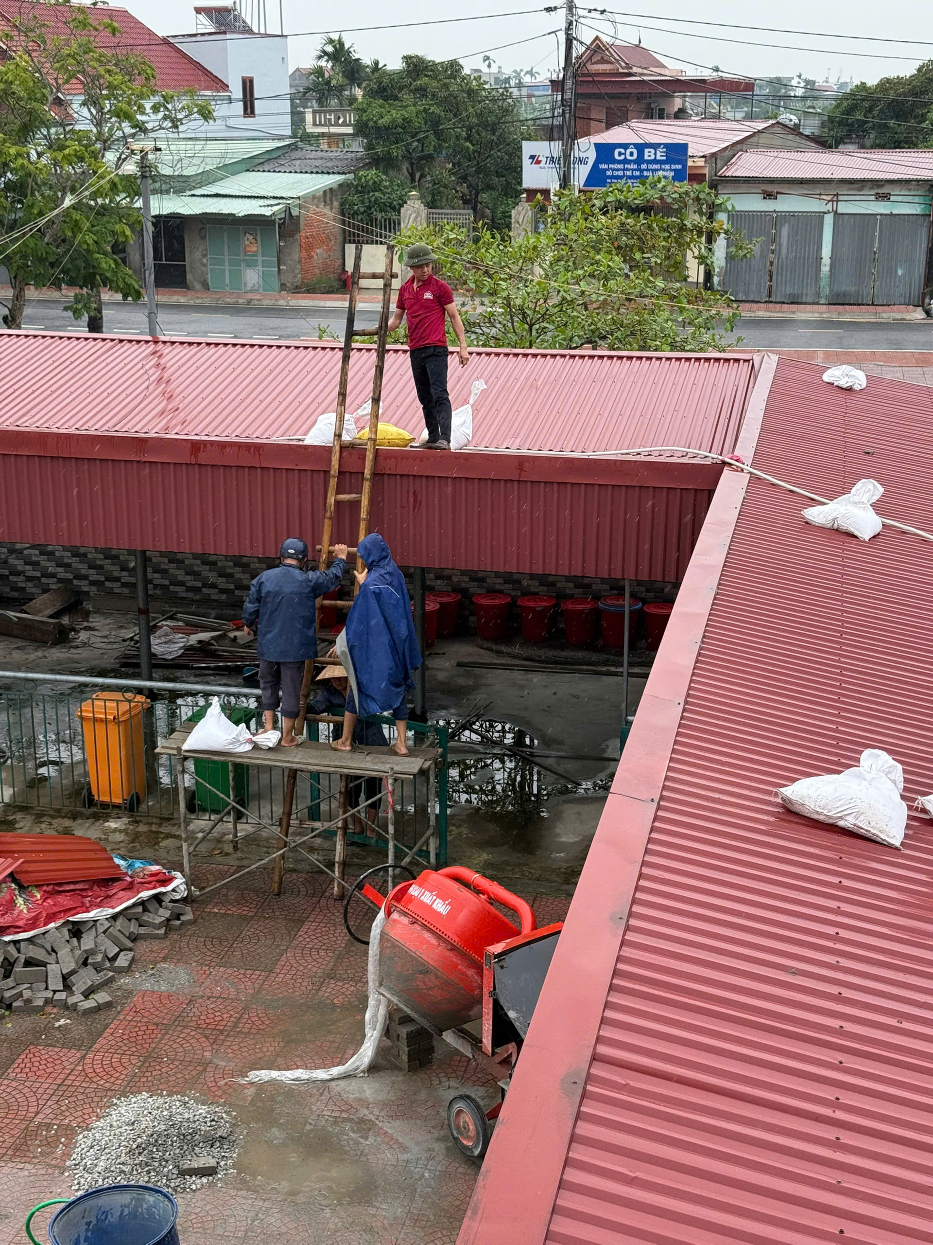 ☘ Ngay trong buổi sáng cùng ngày, Ban Giám hiệu nhà trường đã chỉ đạo tổ chức rà soát toàn bộ cơ sở vật chất, đặc biệt là các khu vực có nguy cơ mất an toàn như: mái che, bảng hiệu, cửa kính, cây xanh, cột cờ và hệ thống điện. Các giáo viên, nhân viên và lực lượng hỗ trợ đã tích cực gia cố, chằng chống mái tôn, mái che, che chắn cửa sổ, di chuyển vật dụng dễ bị gió cuốn, chặt tỉa cành cây cao, đảm bảo thông thoáng và an toàn khuôn viên trường. Tính đến thời điểm hiện tại, toàn bộ các hạng mục trong khuôn viên nhà trường đã được kiểm tra, gia cố chắc chắn, sẵn sàng ứng phó hiệu quả với mọi tình huống do bão gây ra.
