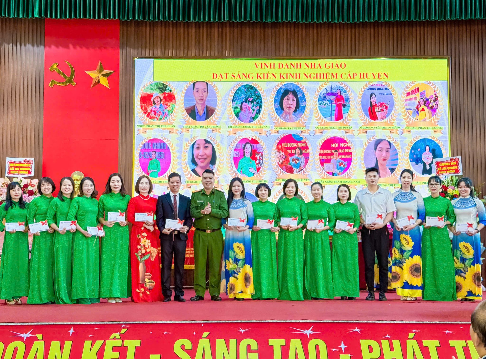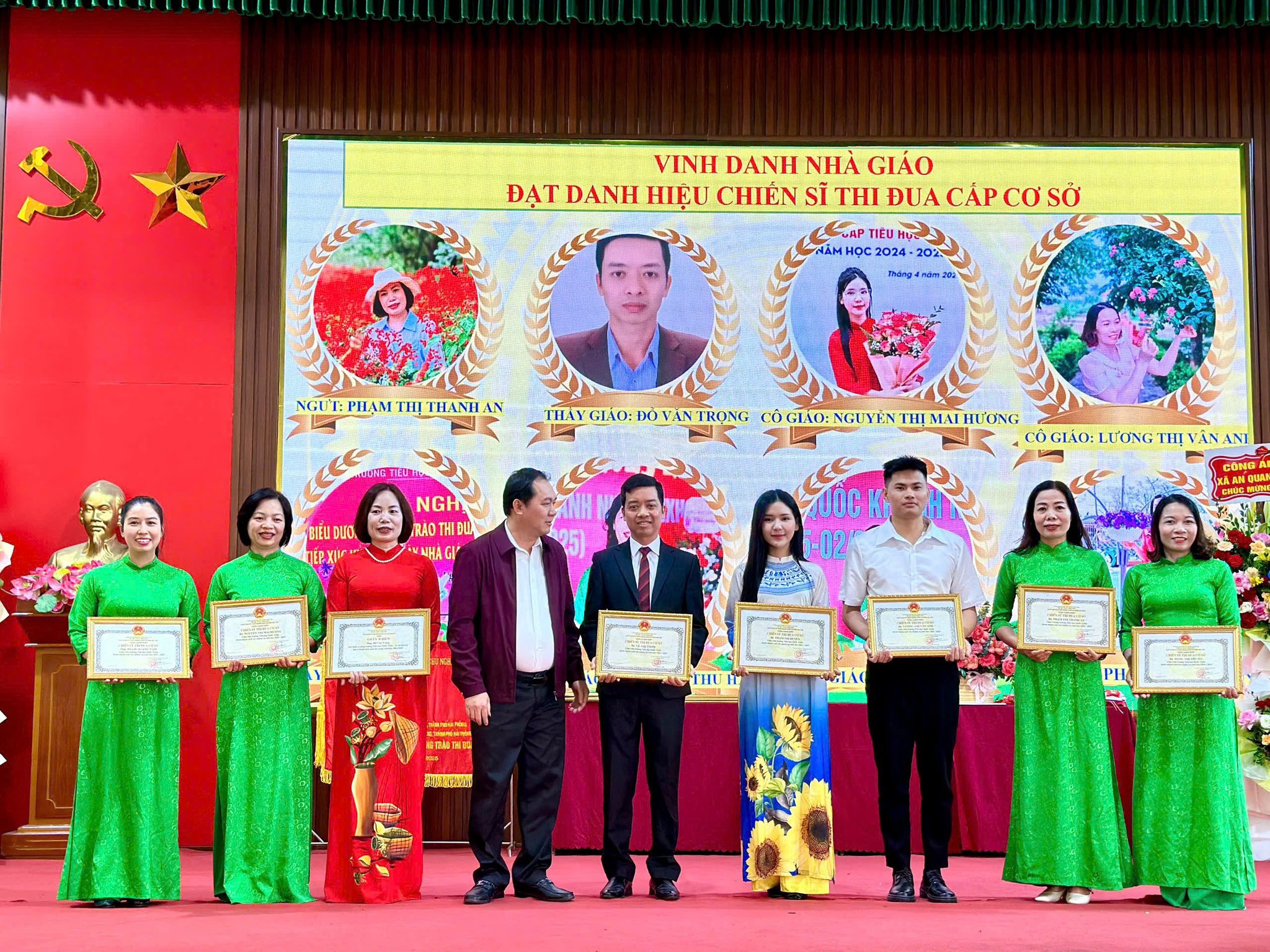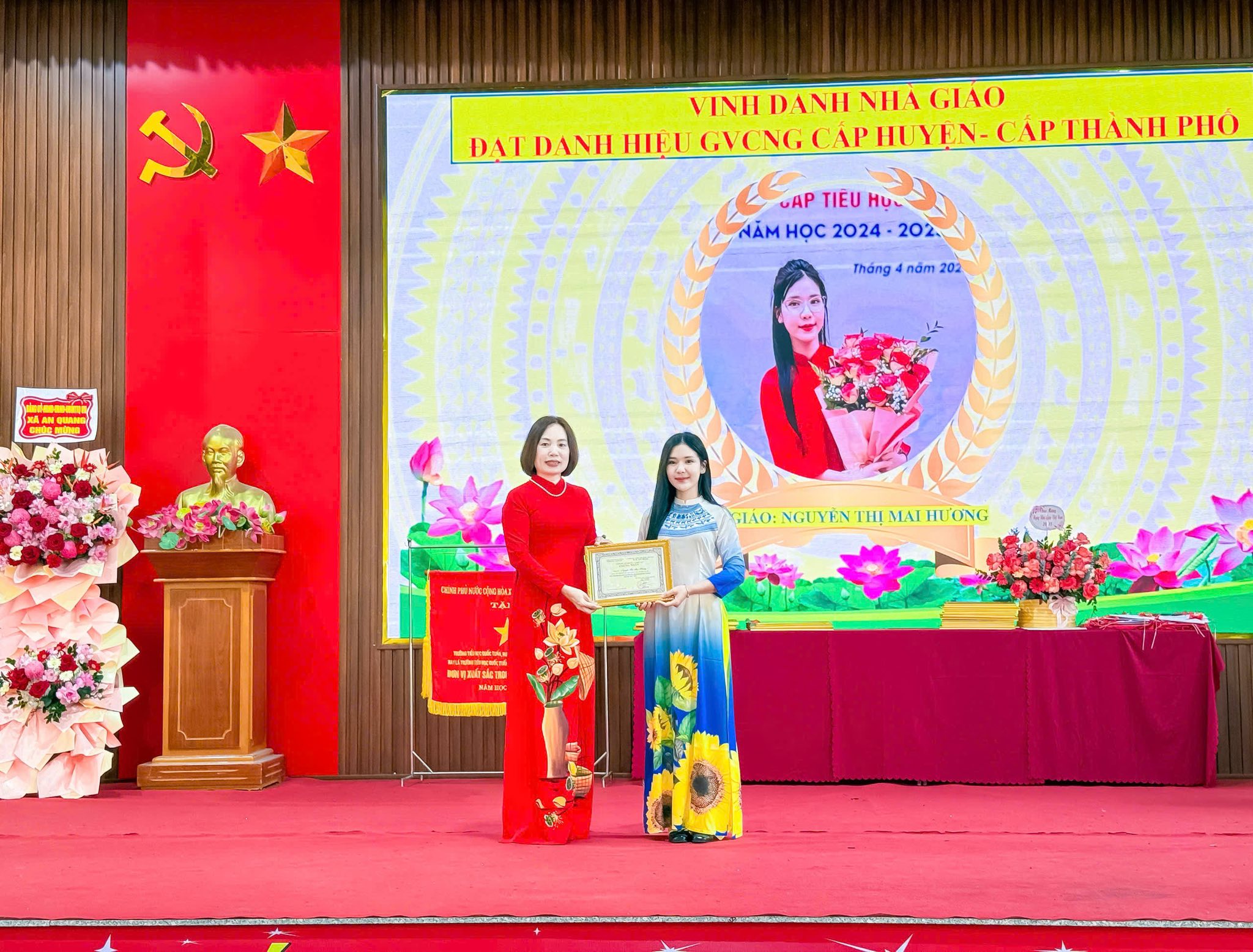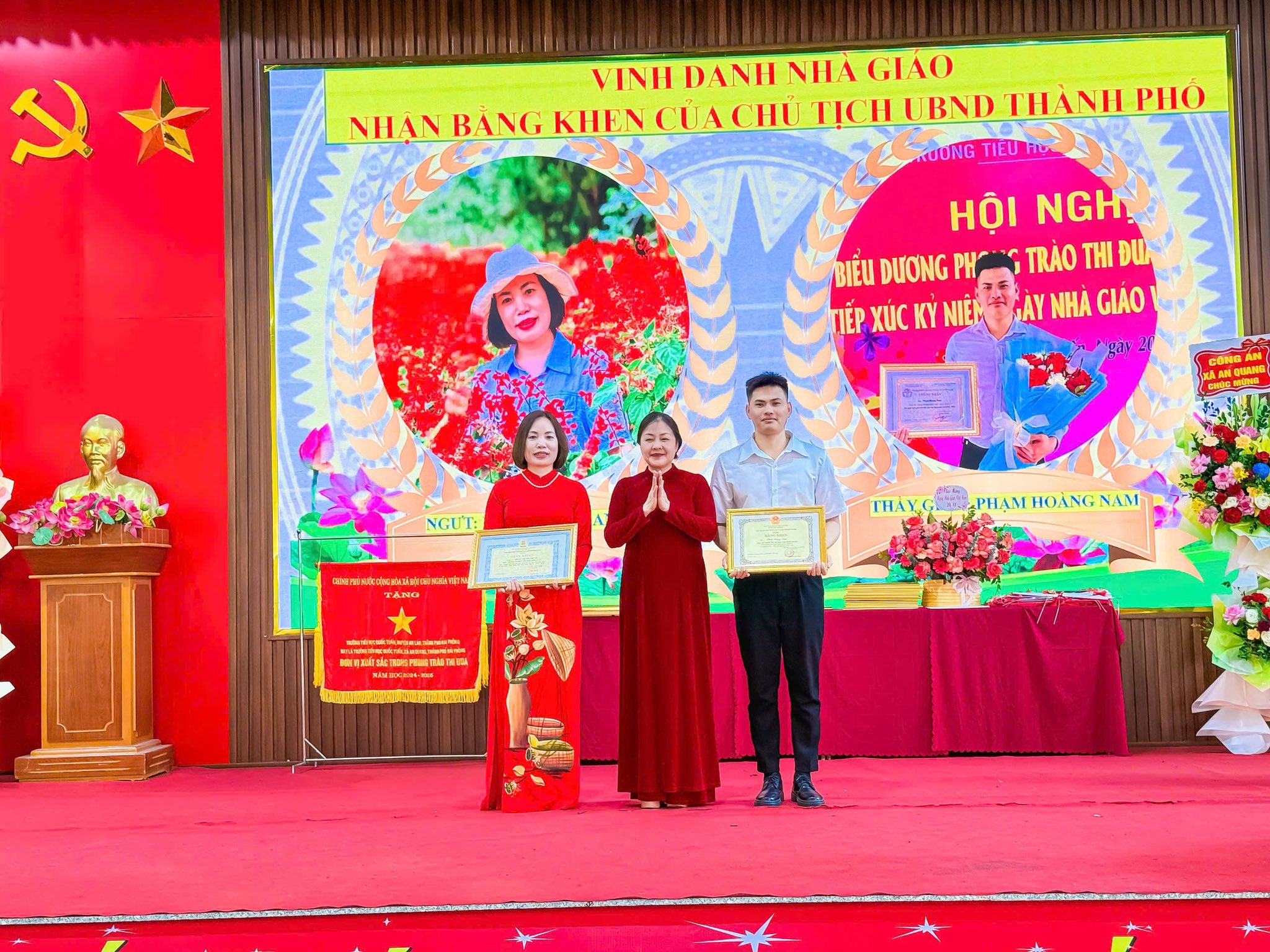 🌸 Cùng với thành tích chung của nhà trường trong Hội nghị đã có rất nhiều cá nhân tiêu biểu được vinh danh và khen thưởng: Nhà giáo Đỗ Văn Trọng – Phó Hiệu trưởng và nhà giáo Lương Thị Vân Anh – Tổ trưởng Tổ 1 – được nhận Bằng khen của Thủ tướng Chính phủ; NGƯT Phạm Thị Thanh An và nhà giáo Phạm Hoàng Nam được nhận Bằng khen của Chủ tịch UBND TP Hải Phòng. 8 thầy cô giáo đạt danh hiệu “Chiến sĩ thi đua cơ sở”. 3 thầy cô đạt “Giáo viên chủ nhiệm giỏi cấp huyện” trong đó nhà giáo Nguyễn Thị Mai Hương đạt DH “Giáo viên chủ nhiệm giỏi cấp TP”. 16 thầy cô có sáng kiến kinh nghiệm được công nhận cấp huyện.