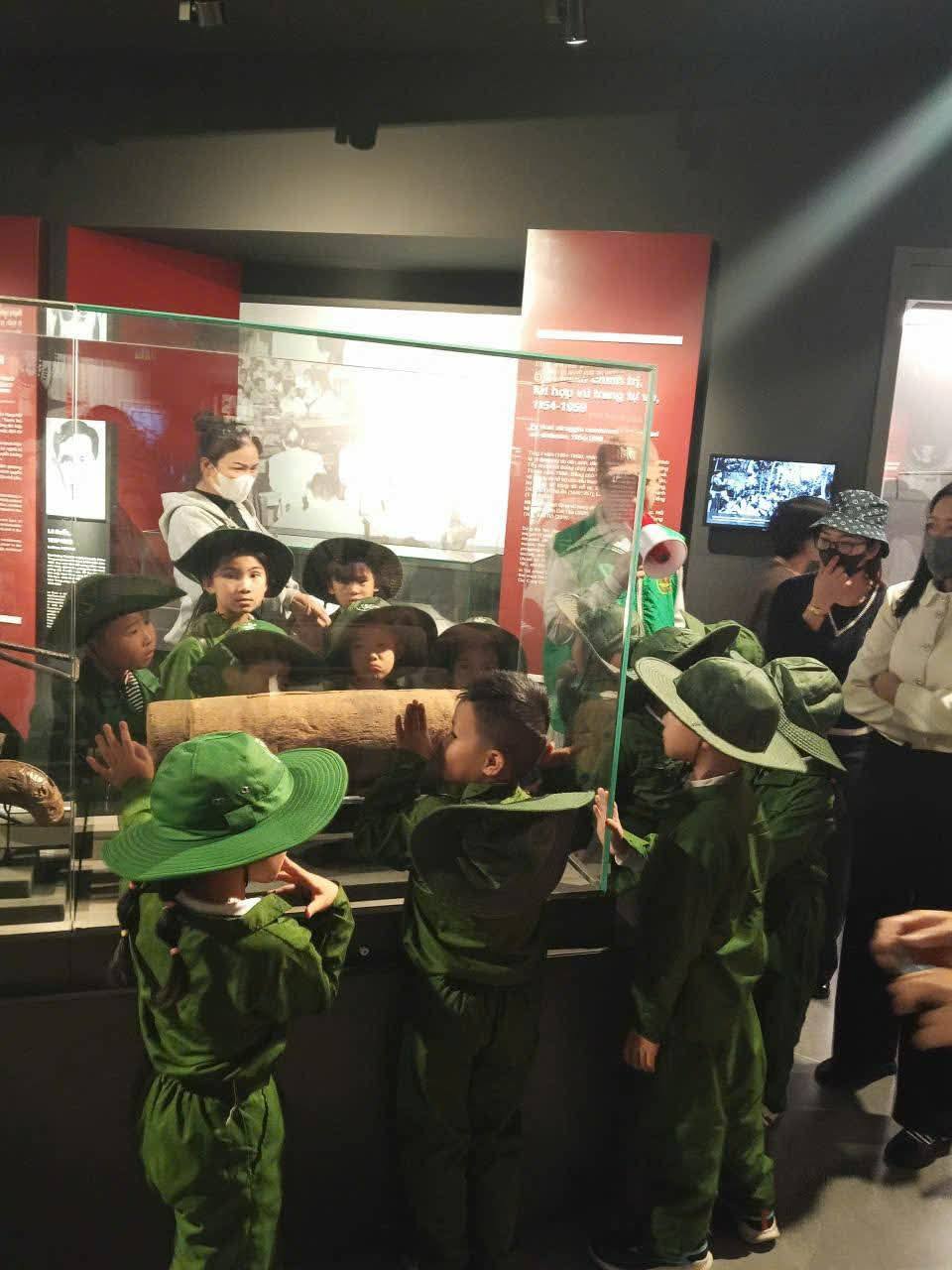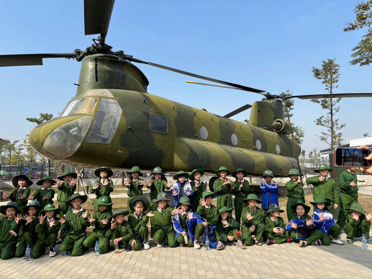 🌻 Tại Bảo tàng Lịch sử Quân sự Việt Nam – nơi lưu giữ những trang sử hào hùng của dân tộc – các em được hóa thân thành chiến sĩ trong sắc xanh áo lính và tự hào chụp ảnh bên Đại Kỳ Việt Nam. Qua lời thuyết minh, các hiện vật quân sự và những thước phim tư liệu quý, học sinh cảm nhận sâu sắc hơn sự hy sinh to lớn của các thế hệ cha anh.