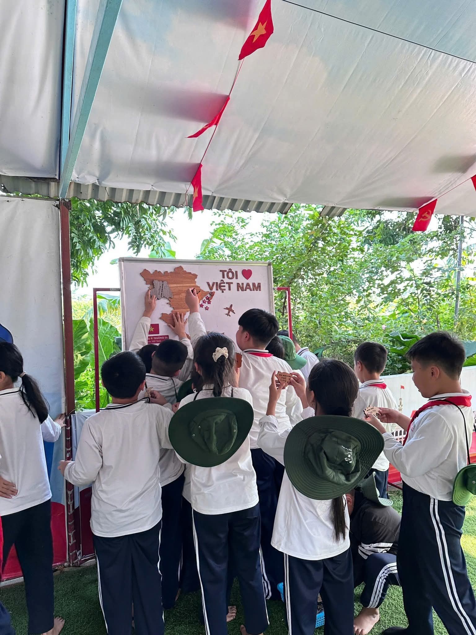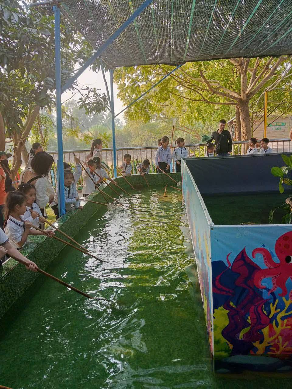 🌻 Hành trình tiếp tục tại khu trải nghiệm Vạn An & Hải Đăng, nơi các em bước vào không gian Sắc màu Tổ quốc, hào hứng ghép các tỉnh thành trên bản đồ Việt Nam và tìm hiểu văn hóa ba miền trên Chuyến tàu Thống Nhất. Không gian trải nghiệm thêm phần sôi nổi qua hoạt động câu cá vui nhộn.Các em còn được tự tay làm tranh Đông Hồ, khám phá vẻ đẹp nghệ thuật dân gian; trở thành Nhà khoa học nhí với những thí nghiệm hóa học thú vị; và thử sức ở khu vận động liên hoàn, nơi mỗi thử thách giúp rèn luyện sức bền, sự linh hoạt và tinh thần đồng đội.