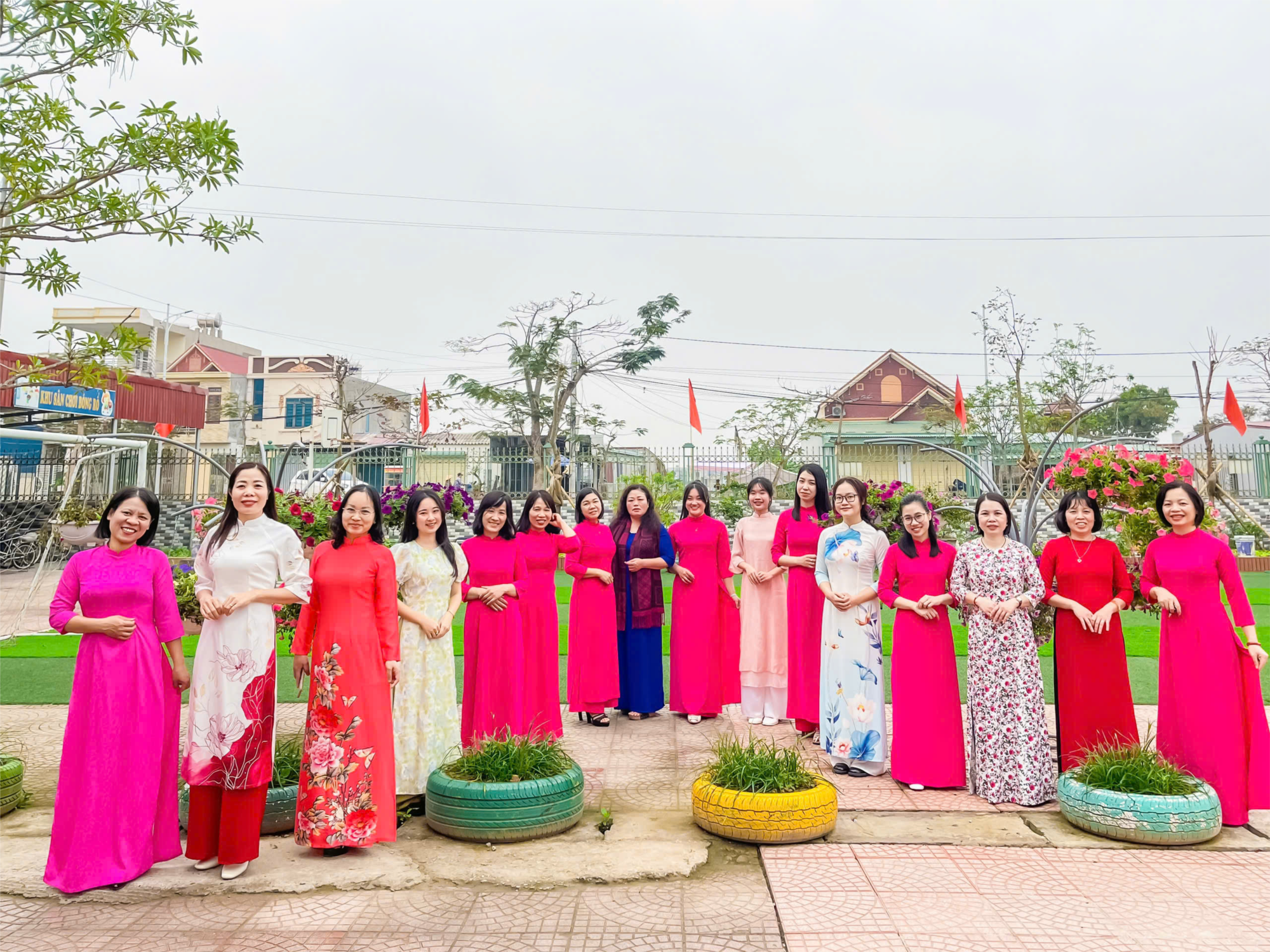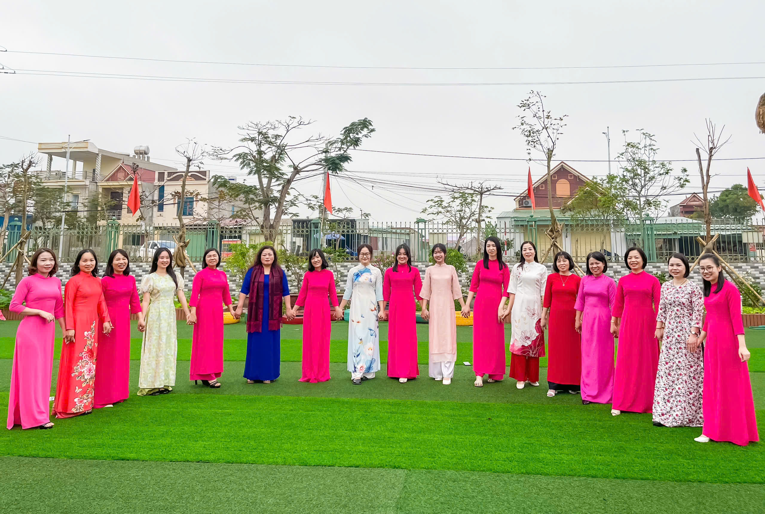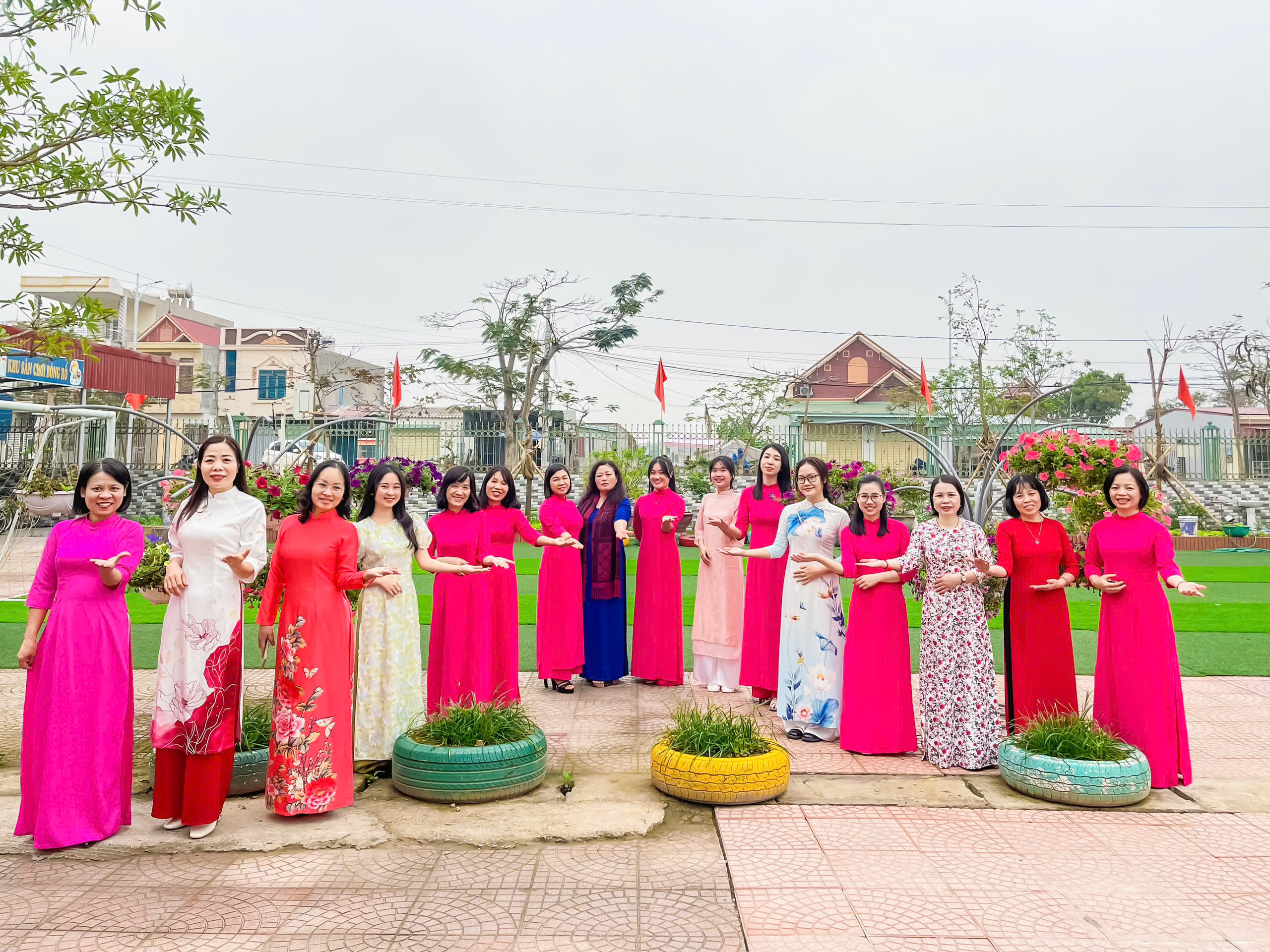 Hưởng ứng “Tuần lễ áo dài Việt Nam” chào mừng kỉ niệm ngày QTPN 8/3/2025 do LĐLĐ phát động, các cô giáo