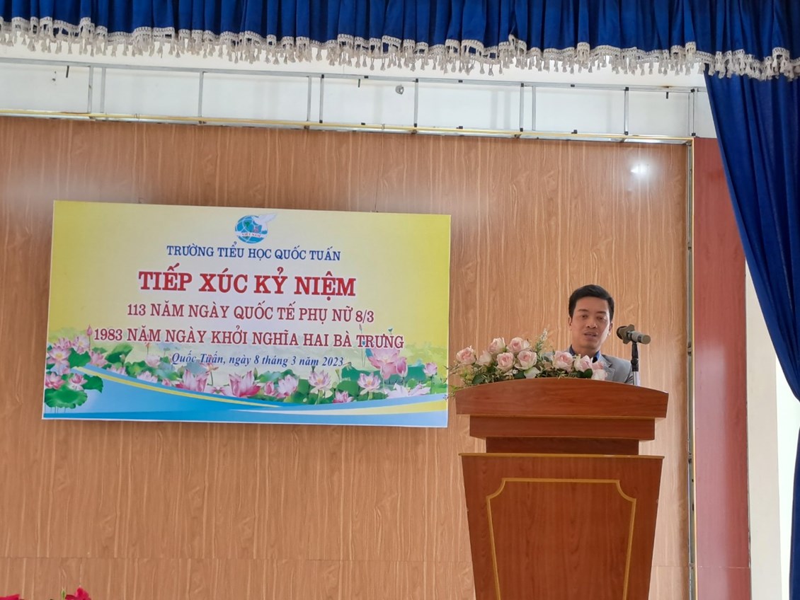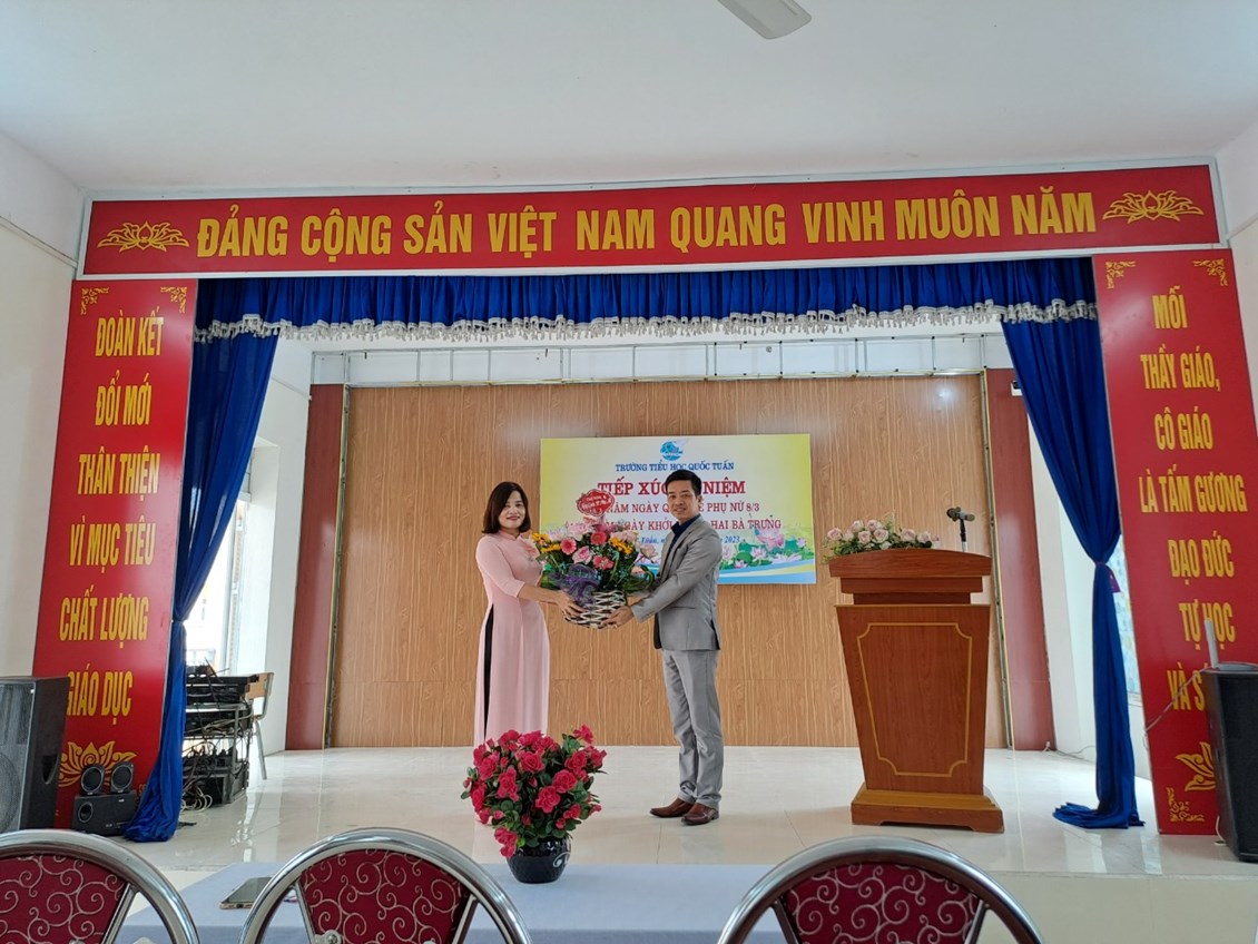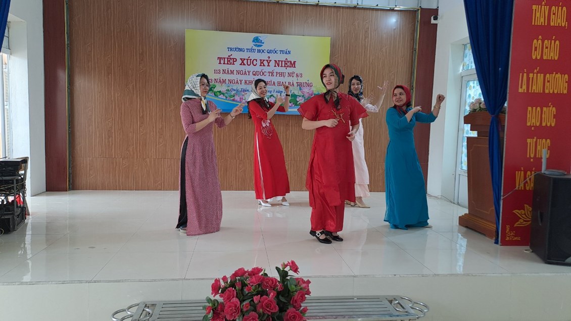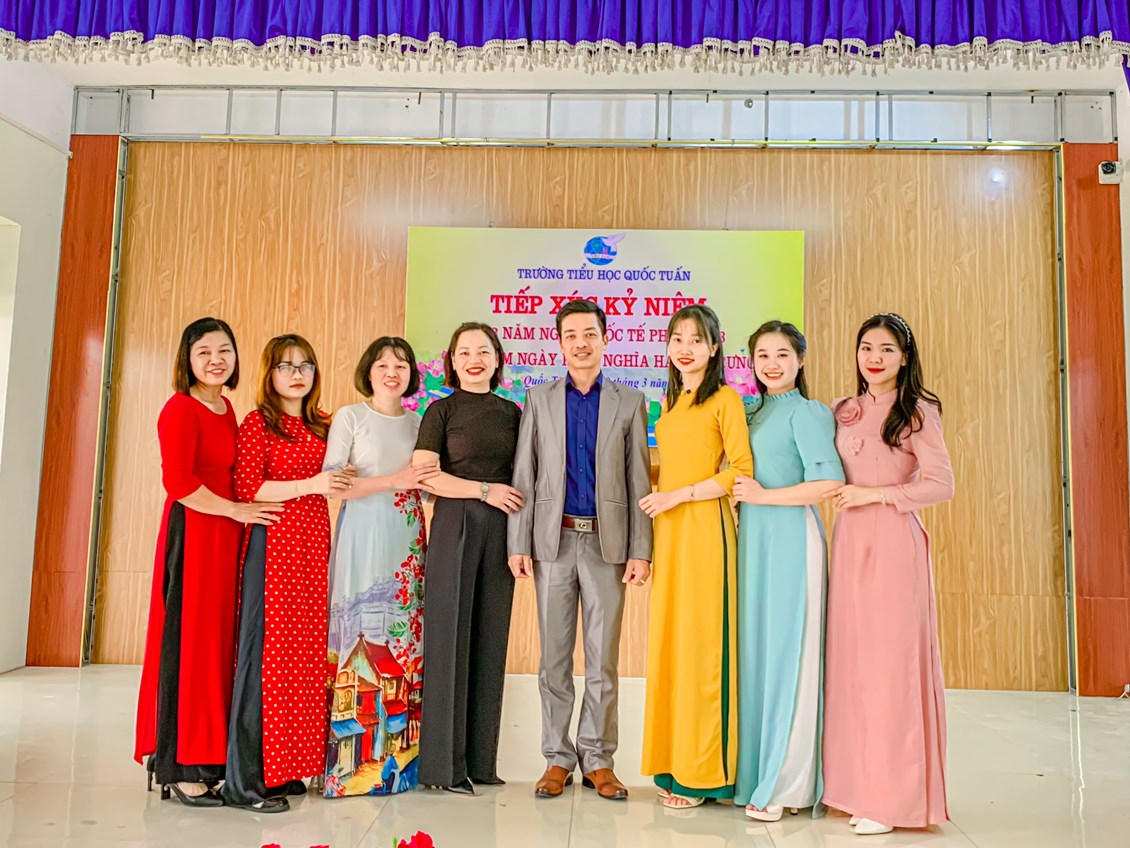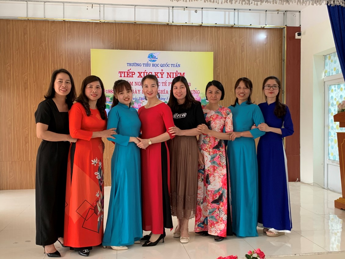 Lễ kỉ niệm ngày 8 tháng 3 năm nay của trường Tiểu học Quốc Tuấn năm nay tràn đầy niềm vui. Sau lời phát biểu ngắn gọn, súc tích của đồng chí chủ tịch công đoàn Phạm Thị Duyên về ý nghĩa ngày 8 tháng 3, nhà trường trao quà cho các đồng chí đạt thành tích xuất sắc trong năm học 2021- 2022. Rồi màn thi văn nghệ đặc sắc giữa 5 tổ trong trường diễn ra. Đó là các tiết mục múa hát của tổ 1, trình diễn thời trang của tổ 2, đi người mẫu của tổ 3, hát kết hợp nhảy của tổ 4 và nhảy hiện đại của tổ 5. Phần trao thưởng được mong đợi nhất được khép lại bằng giải nhất cùng giải trang phục ấn tượng dành cho tiết mục của tổ 1.Buổi lễ diễn ra gọn gàng trong thời gian chưa đến1 tiếng đồng hồ nhưng mang lại thật nhiều tiếng cười, đó quả thực là 1 ngày đầy ý nghĩa với các nữ cán bộ giáo viên, công nhân viên trường Tiểu học Quốc Tuấn.
